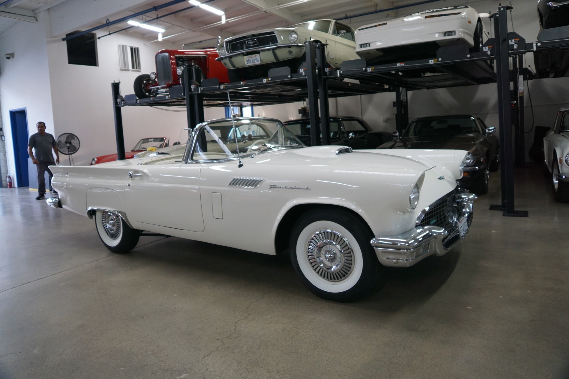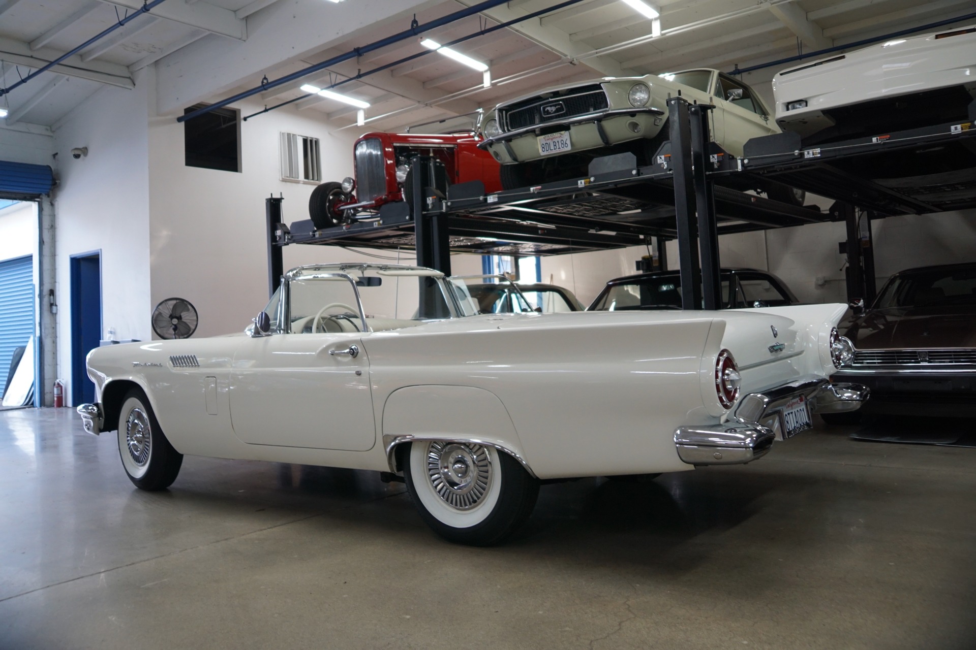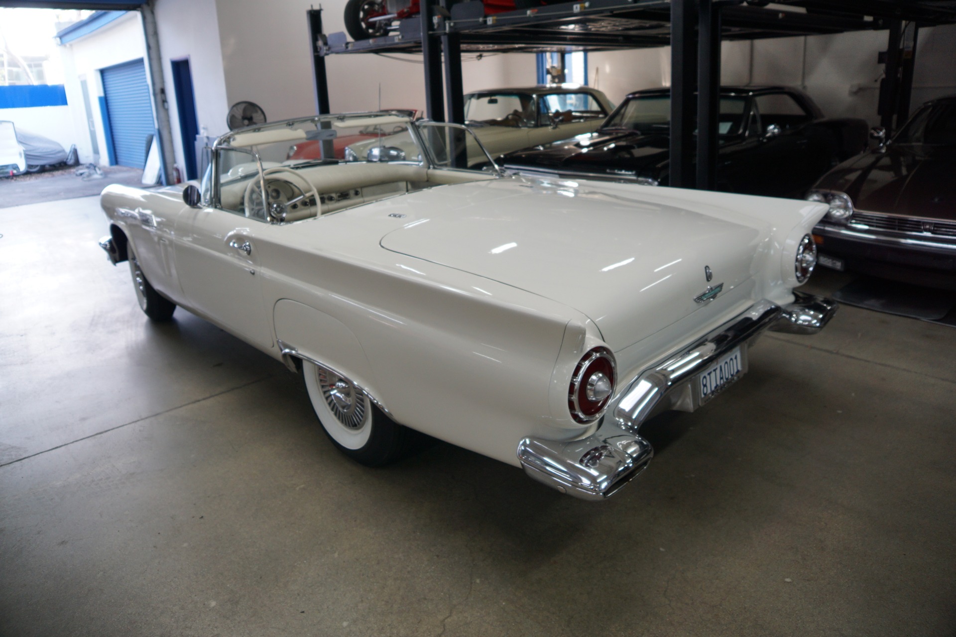 The car will be sold with a file of service records going back to the 1970's and the car's floor boards, trunk and all the typical rust-prone areas are completely solid and rust-free and the car has no signs of any accidents. The car has a very striking appearance in 'Colonial White' matched to a very stunning 'White' color vinyl interior with a bench seat, automatic interior courtesy lighting, rayon loop carpeting, half-circle steering wheel horn ring, winged 'Thunderbird' front end emblem, stainless steel window surround moldings, dual horns, dual exhaust and a removable fiberglass hardtop!