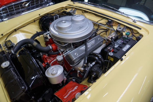 Though inspired and initially positioned directly against the Corvette, Ford billed the Thunderbird as a personal luxury vehicle, with a greater emphasis on comfort and convenience rather than only sportiness. Designations aside the Thunderbird sold exceptionally well in its first year (1955) actually outselling the Corvette 23-1! With its enormous success Ford made few changes for 1956 except for the notable movement of the spare wheel to the Continental style rear bumper position in order to make more room in the trunk. Also an optional porthole in the removable roof was offered. The spare was moved back to the trunk in 1957 due to the heavier weight at the rear causing some steering issues. The 1956 312 Y block V8 made 215 HP when mated to a 3 speed manual transmission or 225HP when mated to the Ford-O-Matic 2 speed automatic transmission.