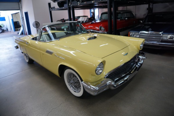 This is a rare opportunity to own an absolutely beautifully restored and superb and truly striking original Dearborn, MI built (as is true of all Thunderbirds!) car. It is also a great daily driving example of an original 1957 Thunderbird with it's original highly desirable 'E' code 312 c.i. dual 4 Barrel Holley carbs V8 engine and loaded with highly desirable options including Power steering, Power brakes, its original Port Hole hard top, original 'Town & Country' radio, heater and defroster and electric clock!