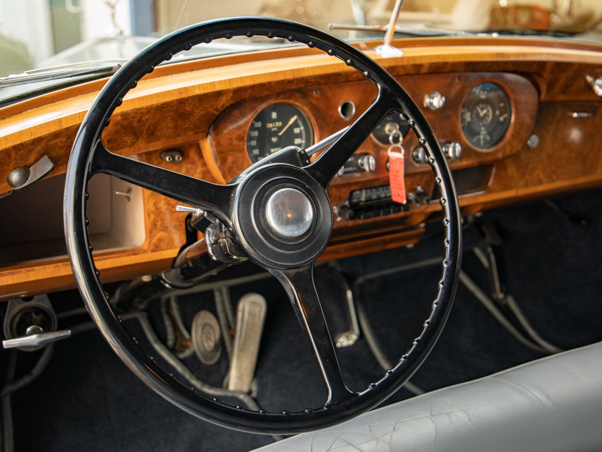 The car has reportedly been owned since new by one single family owner until we acquired it who obviously always garaged the car with the car still retaining its rare original leather Connolly leather seats which have a superb original patina with only very little signs of wear. The car remains mostly original throughout including its original 'Smiths' radio, African burled walnut wood, and the original weather stripping and seals and rubbers etc are all in very good shape throughout the car considering their age. An obviously always cherished and garaged example with no accidents and with the floor boards, trunk and all the typical rust-prone areas all rust free and its original rare still leather wrapped rear leaf springs!