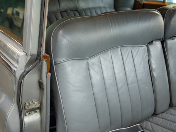 The car has a beautiful and highly desirable color combination of seemingly mostly original 'Sterling Silver' exterior paint with matching Rolls Royce hubcaps and its all original 'Connolly' Light Gray leather interior, which was exclusively used in Rolls Royce's and Bentley's came from unfenced cows which produced unblemished hides. All the chrome work including the front Rolls Royce grille and bumpers is absolutely and the door panels, dashboard and original mohair headliner remarkably show only very minimal signs of any wear. The car has it's original spare wheel with original jack and factory equipment still located in their rightful place of storage in the trunk compartment.