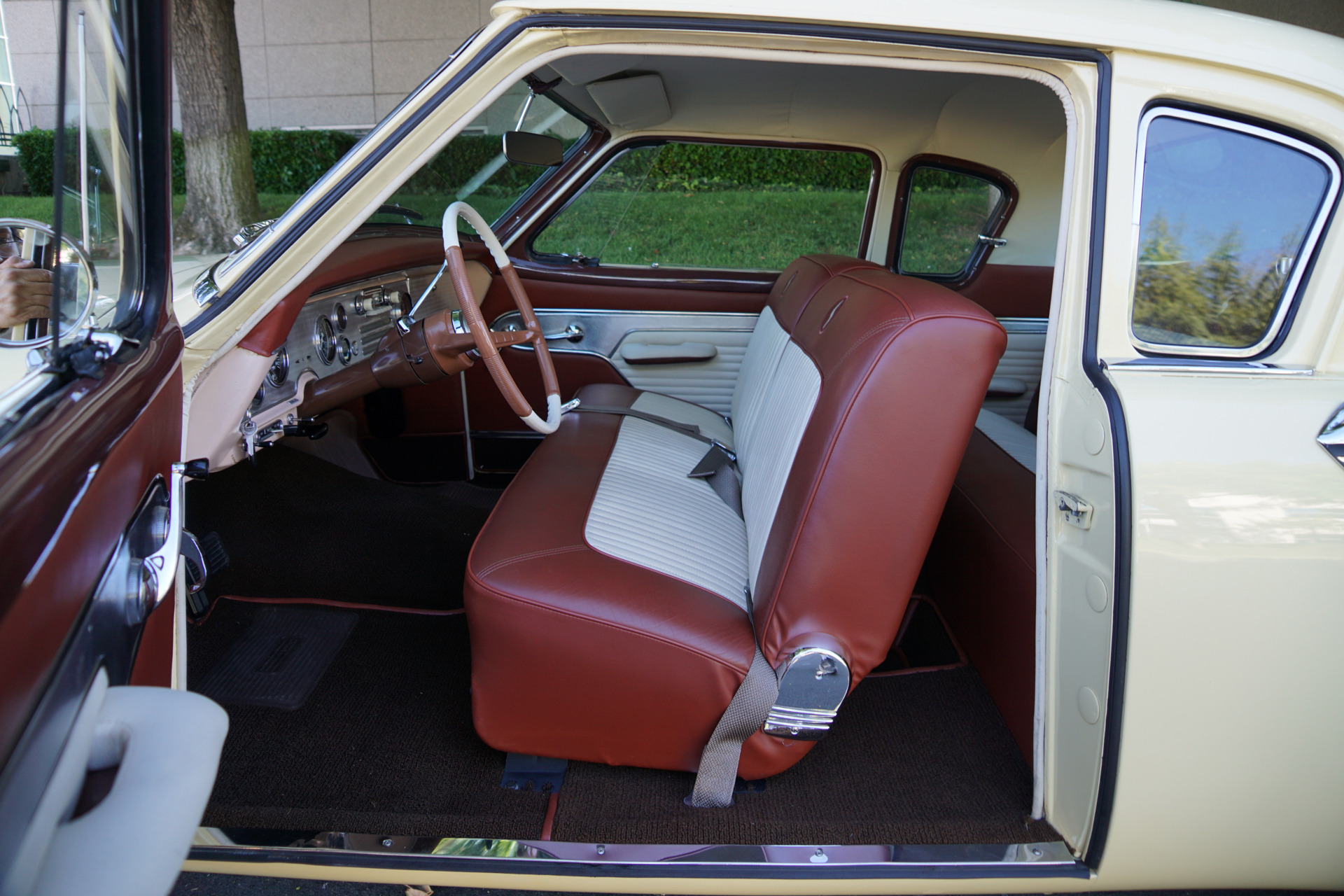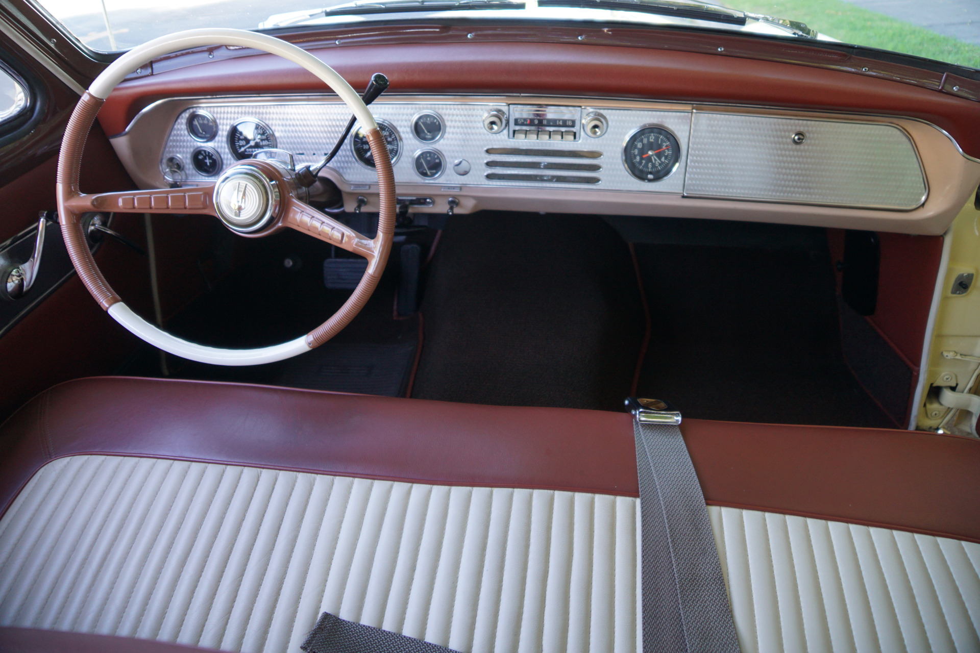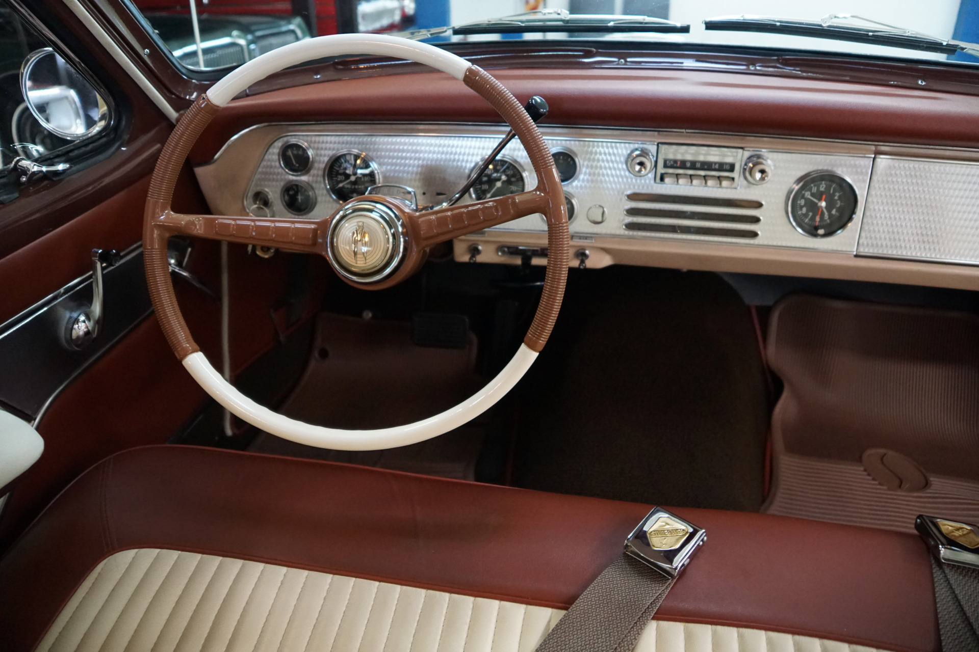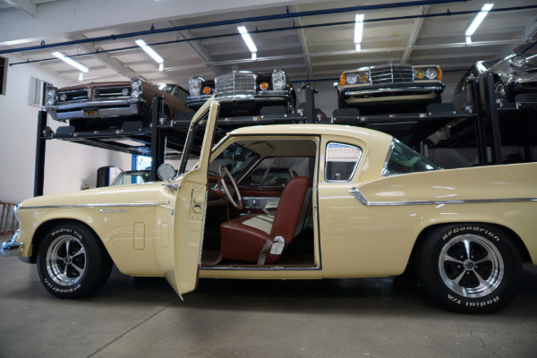 The car looks extremely impressive with a very striking 'Bamboo Yellow' factory color repaint with a striking custom leather interior also having been restored as required to similar factory specifications throughout with its original 'Studebaker' AM radio! The dashboard, the headliner with chrome bows and the carpets and the trunk have also been restored and are in as new condition throughout and the car has all new chrome!