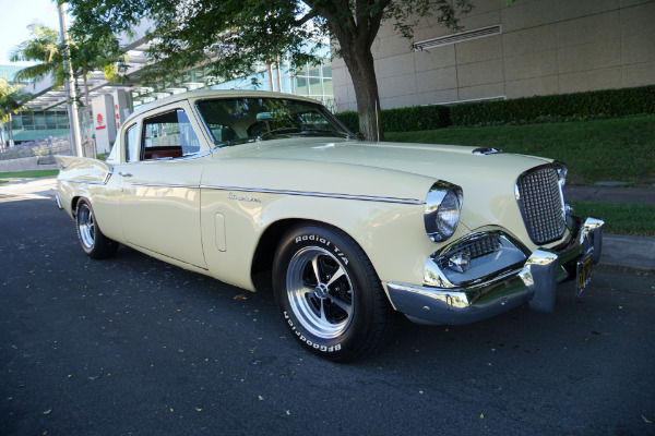 West Coast Classics are proud to present an extraordinarily well presented and no expense spared restored and mildly customized original southern California 1959 Studebaker Silver Hawk 350 V8 coupe with a custom build 350 Turbo automatic transmission with lock up torque convertor and power disc brakes matched to a built 350 V8 'Edelbrock' engine which recently underwent a complete ground up restoration and only 284 miles on the build and with a two-stage repaint in original factory 'Bamboo Yellow' color and with the interior restored in leather with a new headliner with chrome roof bows and with all the glass replaced and all the chrome re-plated. The floor boards, trunk and all the typical rust-prone areas are solid and rust-free.