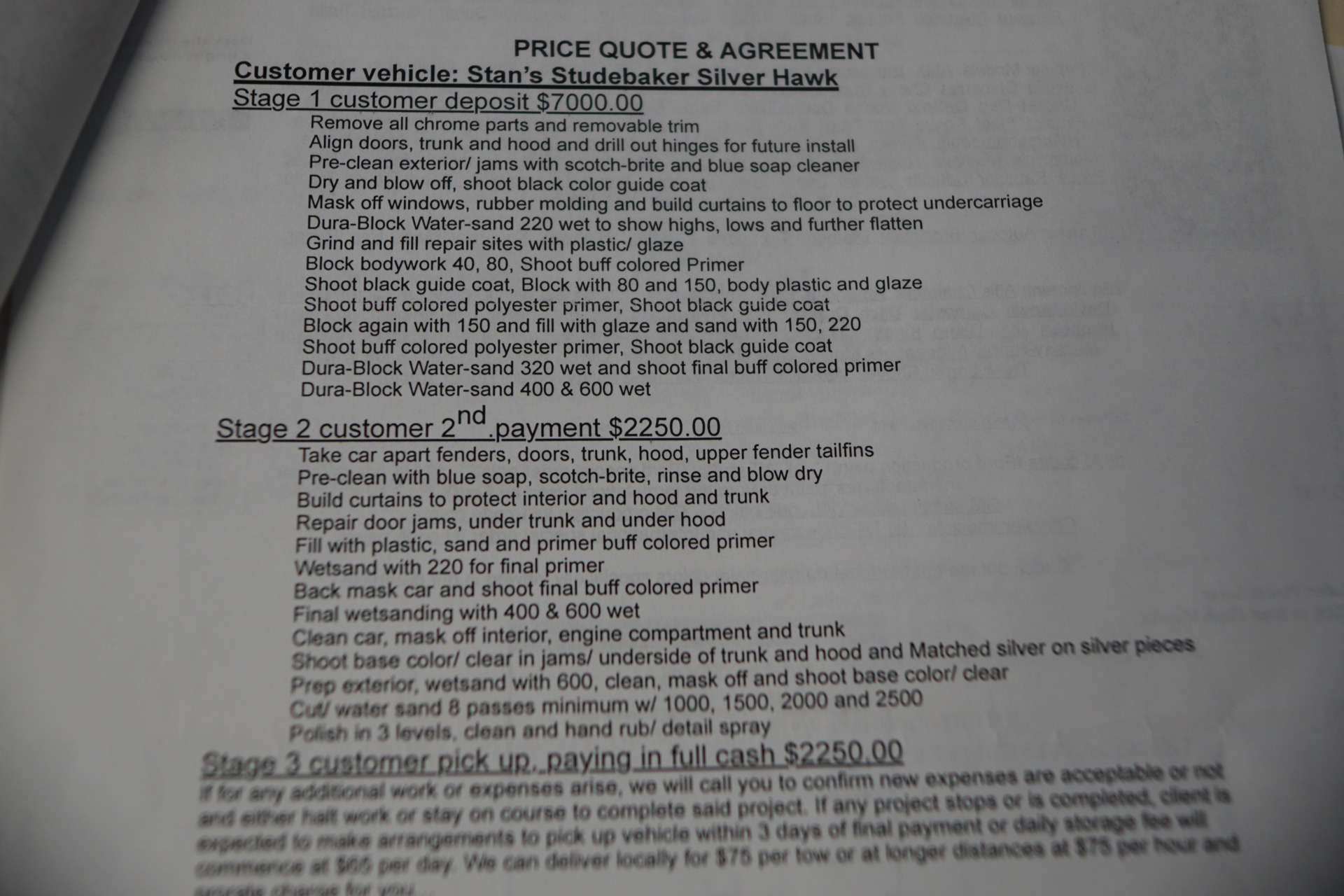 Reportedly the vehicle spent its whole life in the Torrance, southern California area and it underwent this no expense mild custom hot rod restoration in 2015. In addition to the cosmetic restoration, many upgraded mechanical and electrical components were replaced at the time of the restoration as documented by a thick file of receipts totaling over $85K. The car will also be sold with a copy of it's original build sheet from the 'Studebaker National Museum', original owners manuals, dealer brochures, handbooks & paint chip brochures etc.