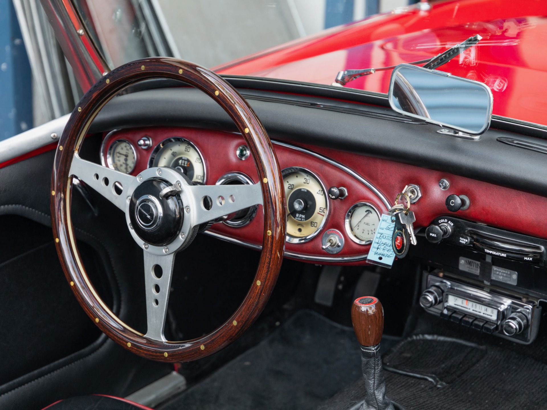 Purchased from a long time southern California owner with original California license plates and obviously always garaged! The engine is smooth and responsive with the renown Healey rumble identifying the Healey straight six as much as a Ferrari's sound does it's V12! The 4 speed transmission with the highly desirable Overdrive option shifts smoothly through all the gears, including the reverse gear and the overdrive function works as it should which means it works through all the gears and not just as a fifth speed which is great for highway driving!