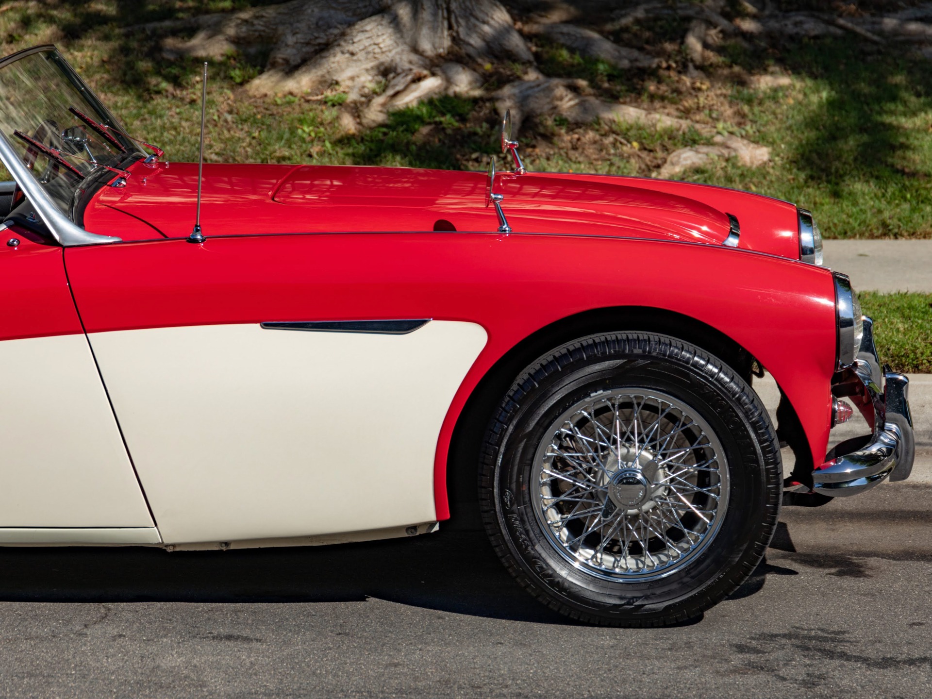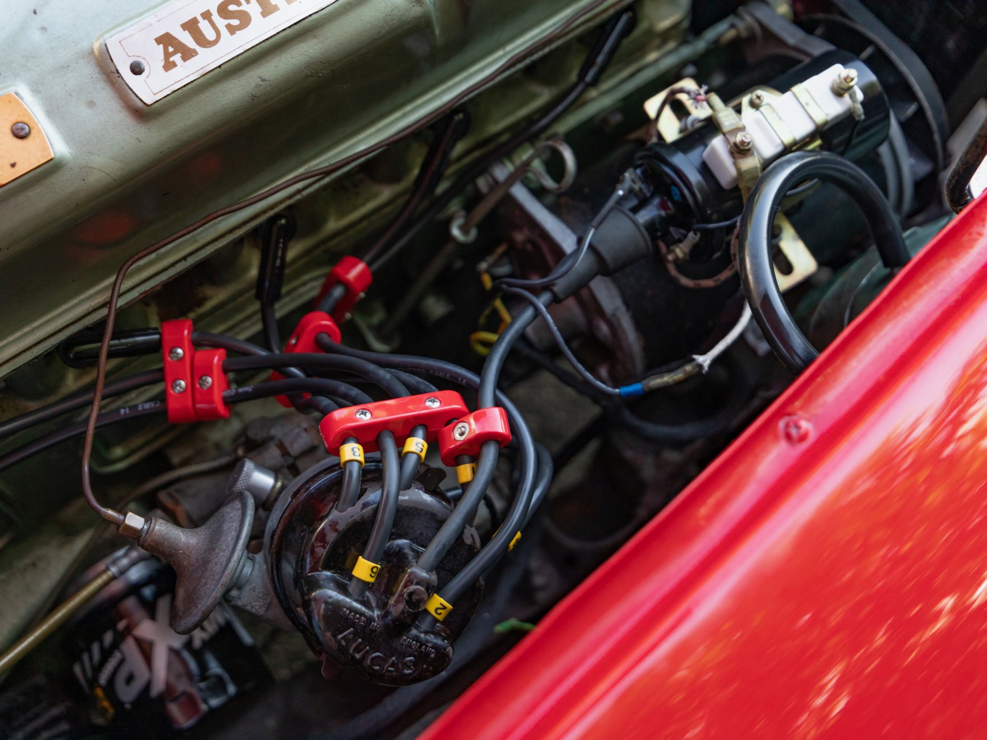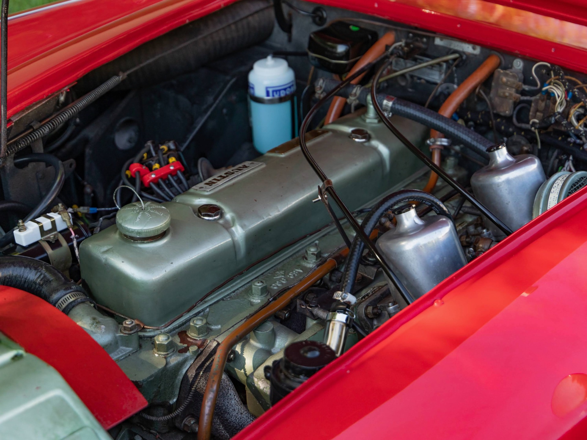 The car looks extremely impressive in striking 'Red over Olde English White' paint and the Black interior with Red piping is in exceptional condition also with original gold type gauges which are all in correct working order! The new black soft top is in great shape, both functionally and otherwise and the car boasts its side curtains and a full tonneau cover. The car had four new chrome wire knock off wheels with new tires and a spare aluminum wire wheel (not chrome) in its correctly mounted position in the trunk. As stated earlier, the engine is extremely strong and powerful and sounds absolutely magnificent - this is a rare opportunity to own a great daily driving BT-7 2+2 roadster - perfect for the Austin-Healey enthusiast or simply a perfect daily driver for any British sports car enthusiast or collector!