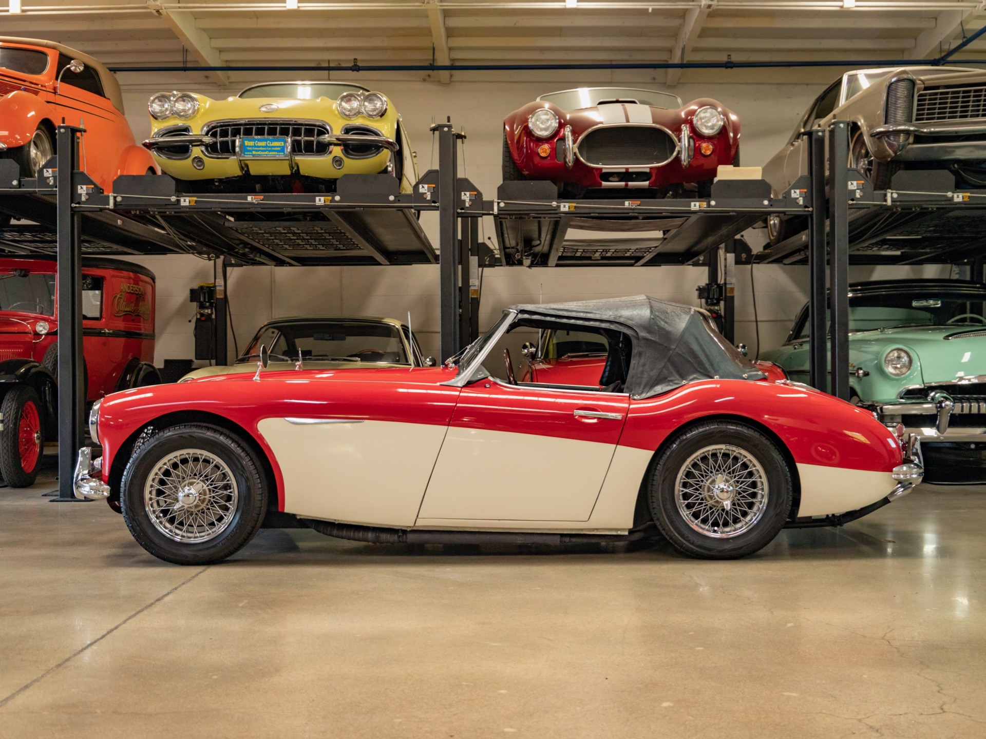 West Coast Classics are proud to present this wonderful daily driving and older ground up restoration example of this 1960 Austin-Healey 3000 BT-7 2+2 6 cylinder 2912 c.c. roadster presented in a striking 'Red over Olde English White' two-tone color paint with beautiful Black seats with Red piping with front disc brakes, rear drums, 4 speed manual transmission with Overdrive, rebuilt engine, side curtains, new soft top, full weather tonneau cover, new SS wire chrome wire wheels and tires, original spare wire wheel, original steering wheel, original AM 'Motorola' radio, heater, new carpets and seats and turn-key ready to drive and enjoy today!