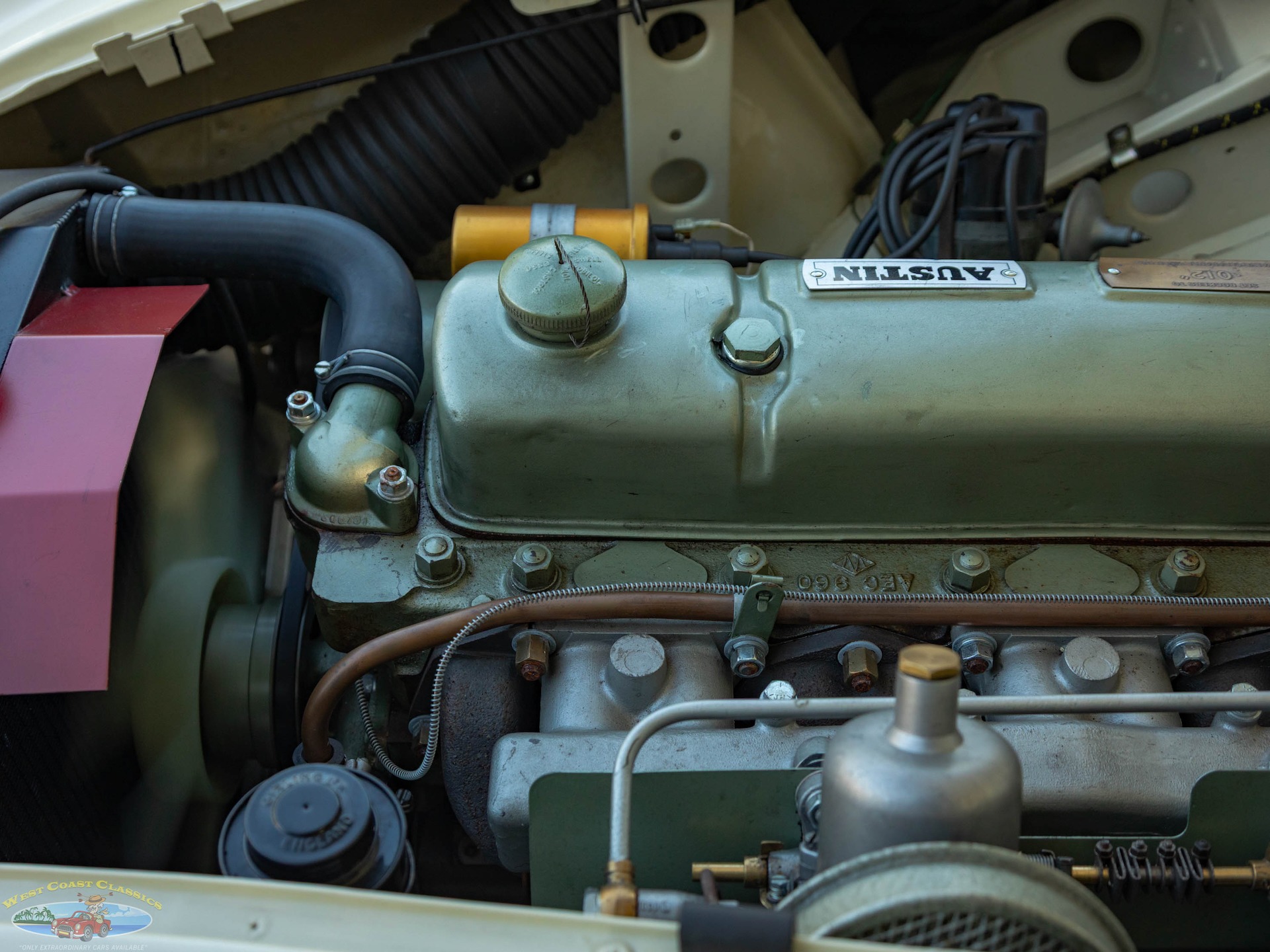 This is one phenomenal example with the engine smooth and responsive with the renown Healey rumble identifying the Healey straight six as much as a Ferrari's sound does it's V12! The 4 speed transmission with the highly desirable Overdrive option shifts smoothly through all the gears, including the reverse gear and the overdrive function works as it should which means it works through all the gears and not just as a fifth speed which is great for highway driving!