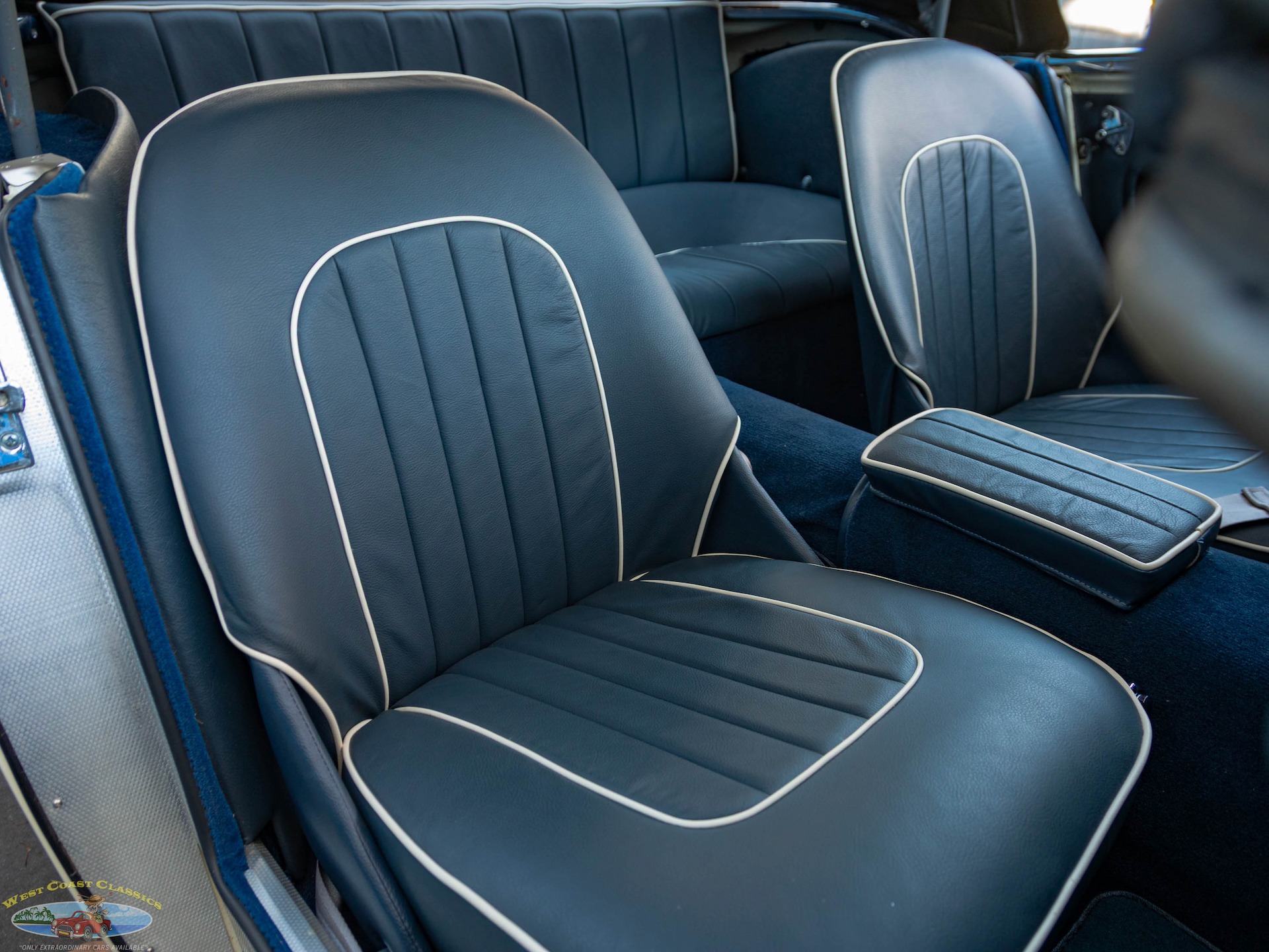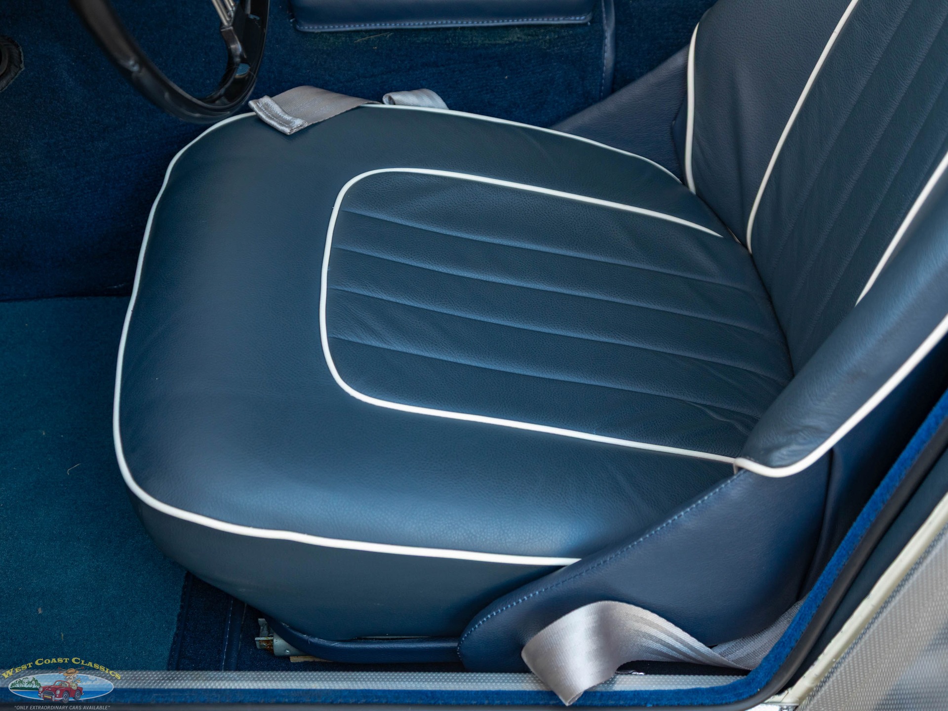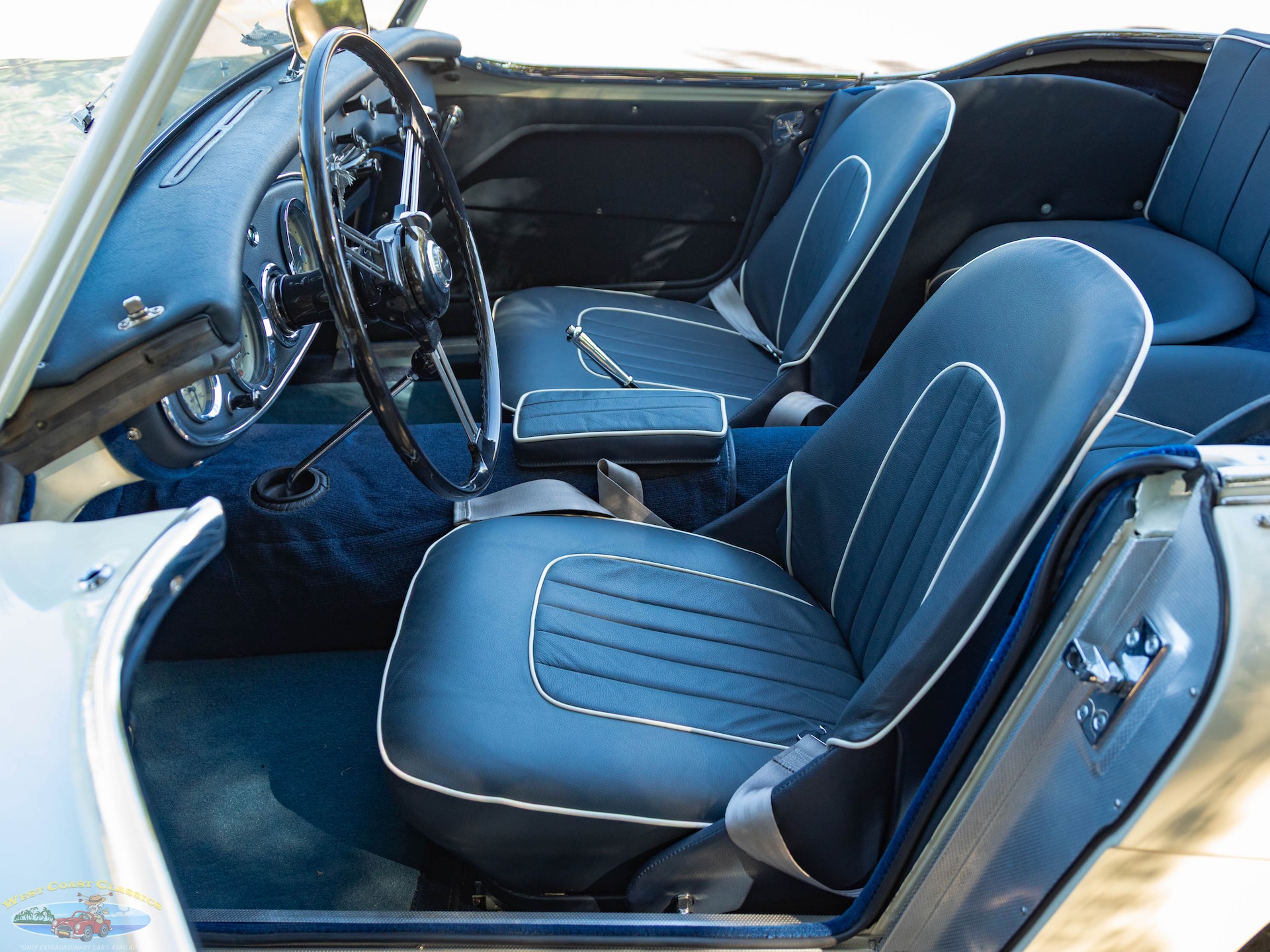 West Coast Classics are proud to present this wonderful daily driving and stunning ground up restoration example of this 1960 Austin-Healey 3000 BT-7 2+2 6 cylinder 2912 c.c. roadster presented in a striking 'Olde English White' color paint with beautiful Blue seats with White piping with front disc brakes, rear drums, 4 speed manual transmission with Overdrive, rebuilt engine, side curtains, new soft top, knock off chrome wire wheels, original spare wire wheel, original steering wheel, heater, new carpets and seats and turn-key ready to drive and enjoy today!
