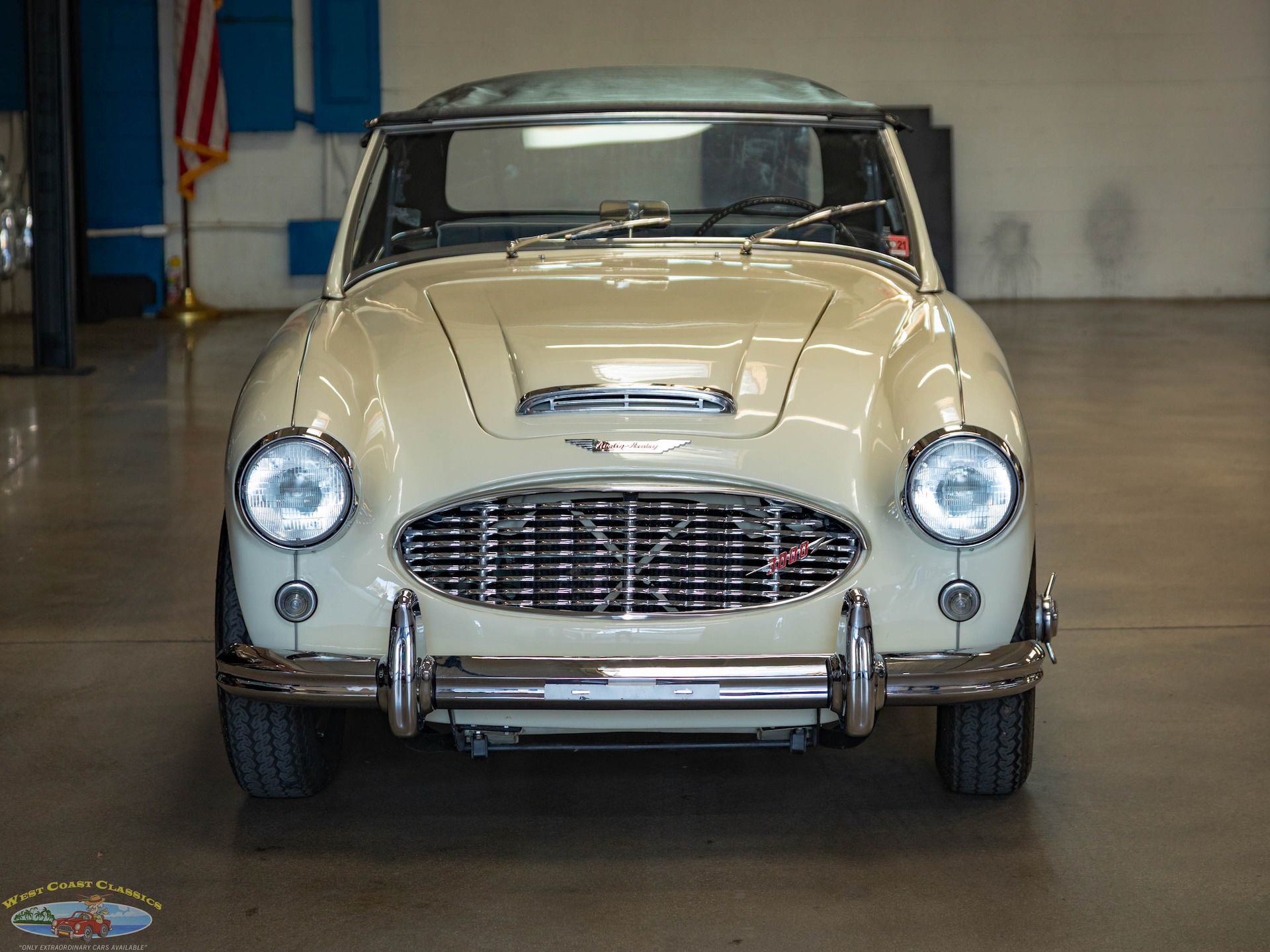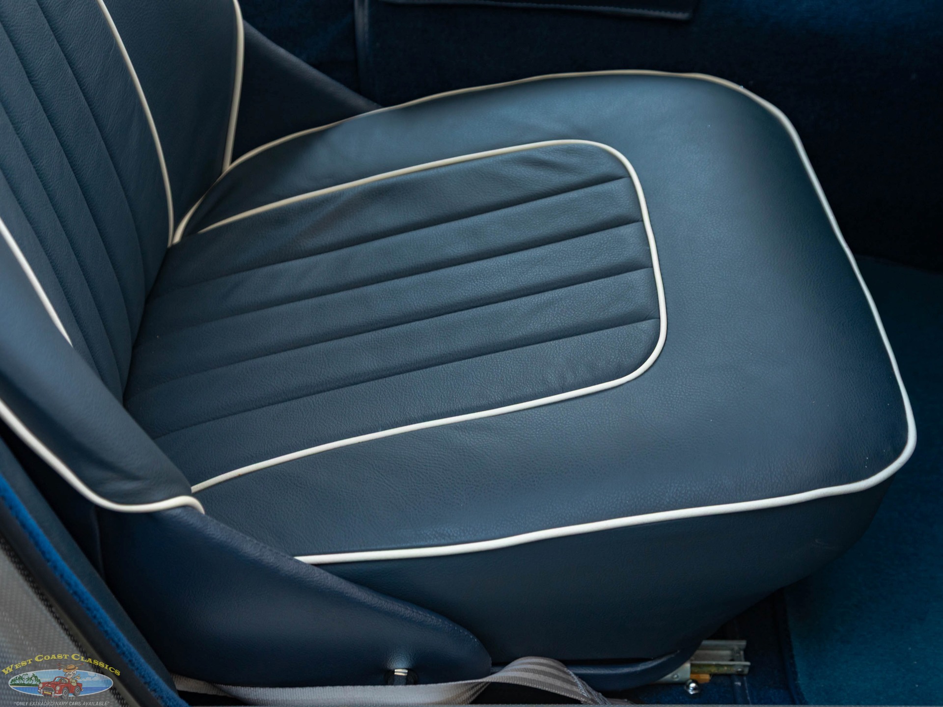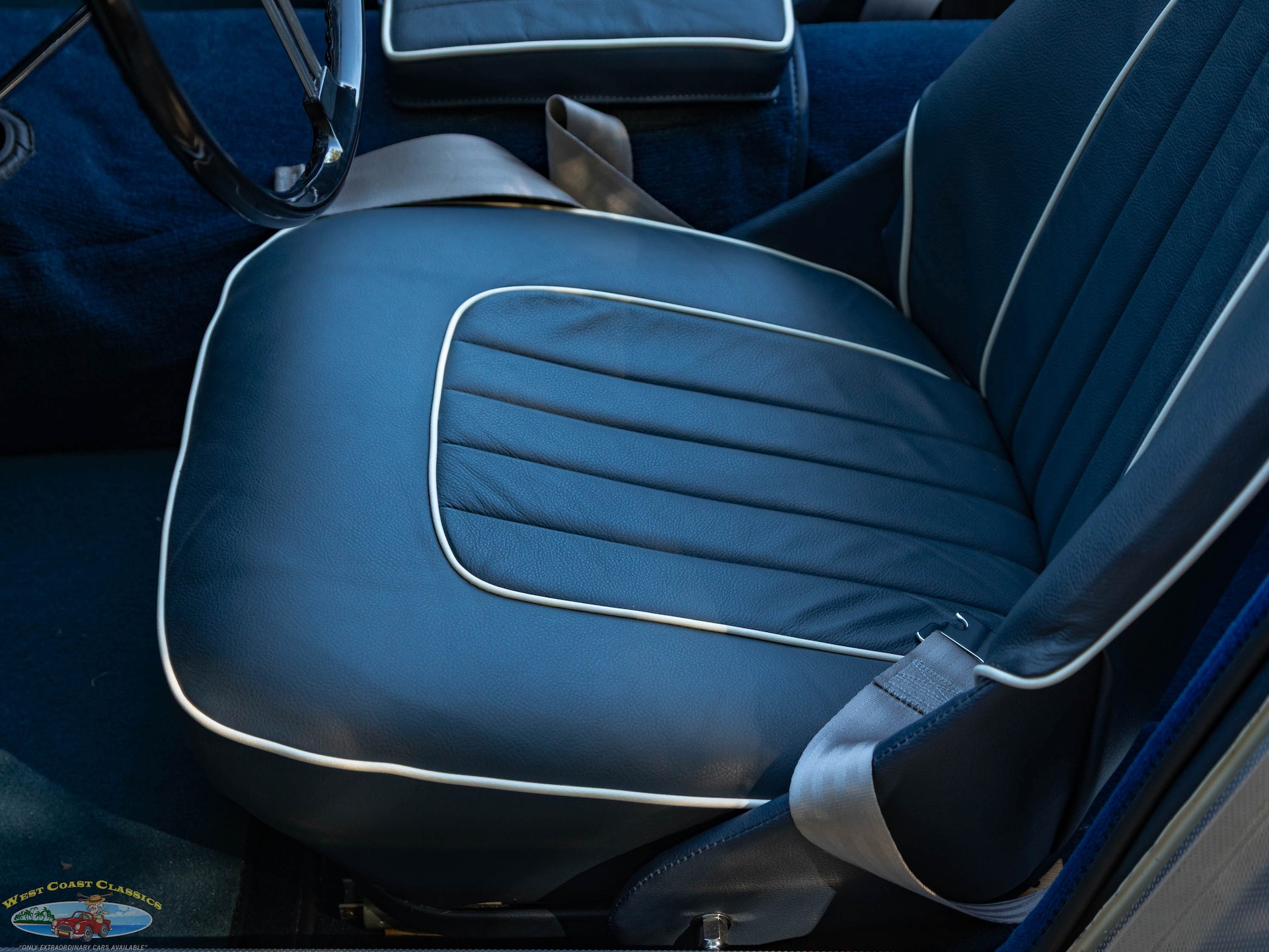 West Coast Classics are proud to present this wonderful daily driving and stunning ground up restoration example of this 1960 Austin-Healey 3000 BT-7 2+2 6 cylinder 2912 c.c. roadster presented in a striking 'Olde English White' color paint with beautiful Blue seats with White piping with front disc brakes, rear drums, 4 speed manual transmission with Overdrive, rebuilt engine, side curtains, new soft top, knock off chrome wire wheels, original spare wire wheel, original steering wheel, heater, new carpets and seats and turn-key ready to drive and enjoy today!