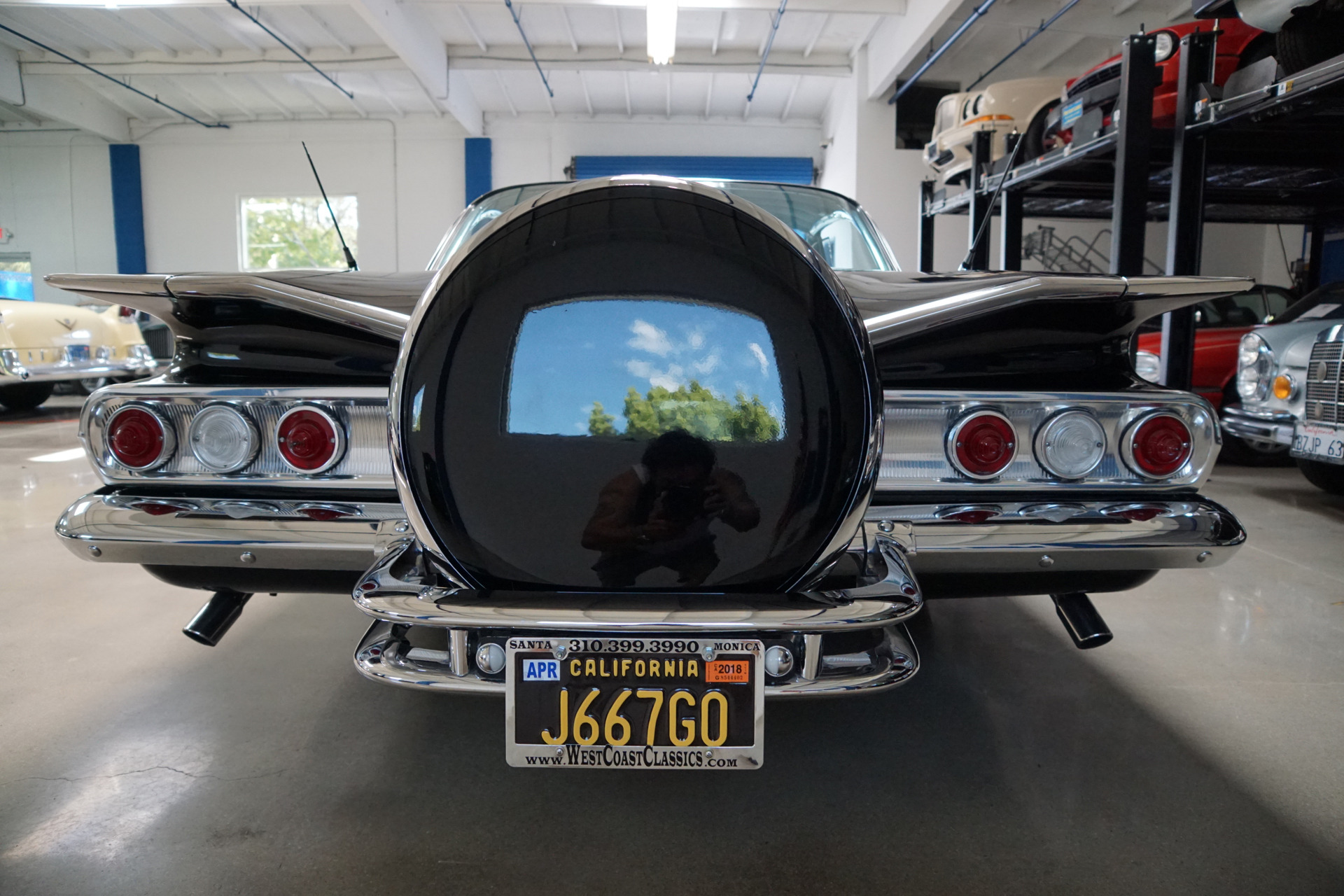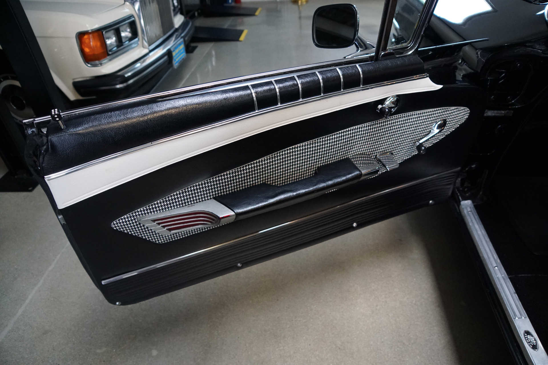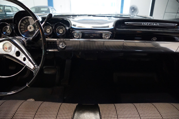 West Coast Classics presents are proud to present a rare and exceptional example of this all stock 1960 Chevrolet Impala 283 V8 2 door Hardtop Coupe with the Turboglide automatic transmission and finished in it's original and highly desirable 'Tuxedo Black' factory color (Code 900) paint with its original matching and striking 'Black & White' (Trim code 809) two-tone 'Houndstooth' cloth & vinyl interior and trim. The car's factory options include the 283 V8 engine matched to the 'Turboglide' automatic transmission, Heater, Pushbutton Radio, full carpeting, rubber floor mats, dual backup lamps and, as introduced by Lincoln some years earlier, the striking image of a visible rear spare wheel resting on the trunk lid and extended bumpers, otherwise known as the optional "Continental kit".