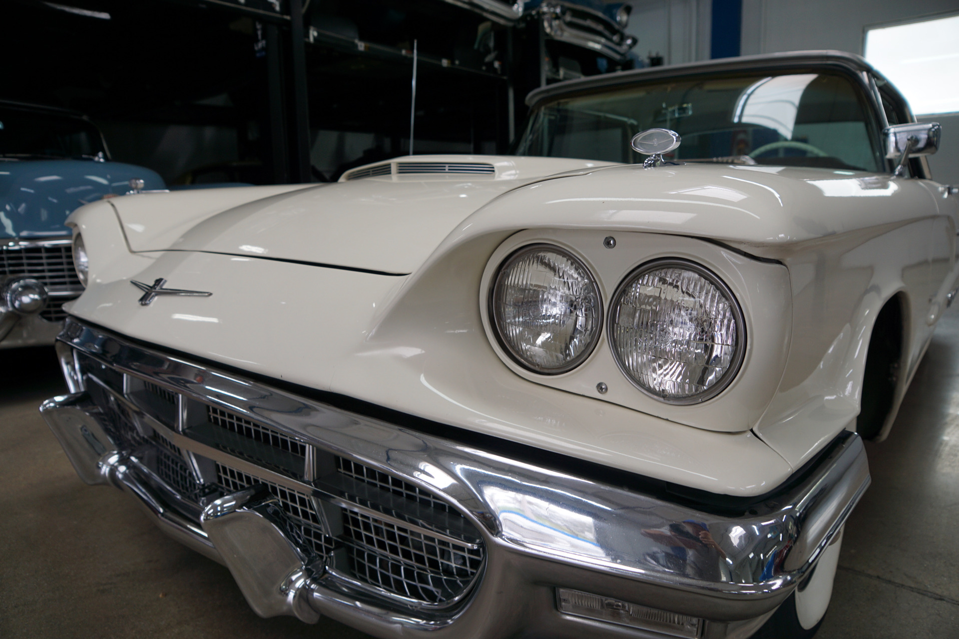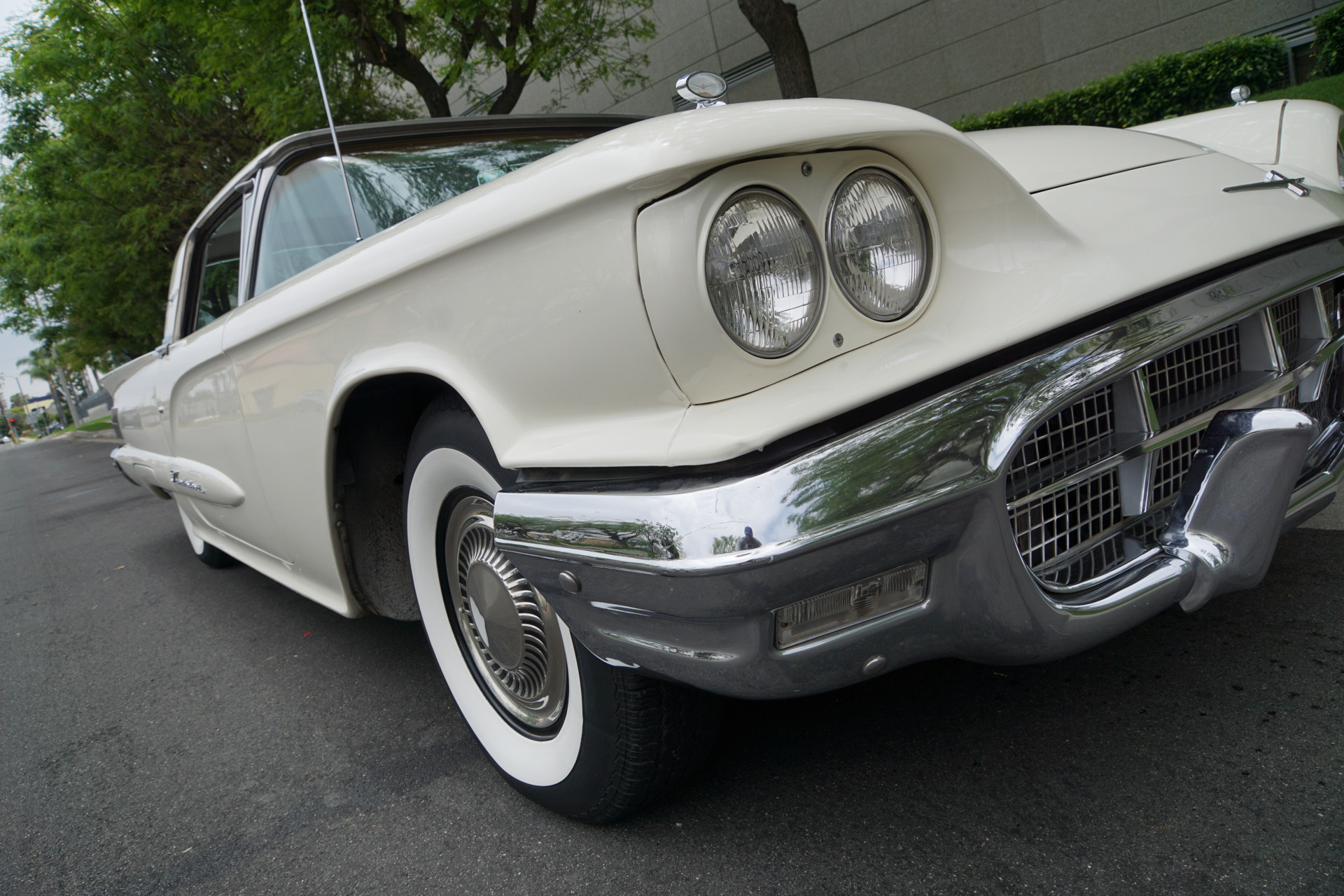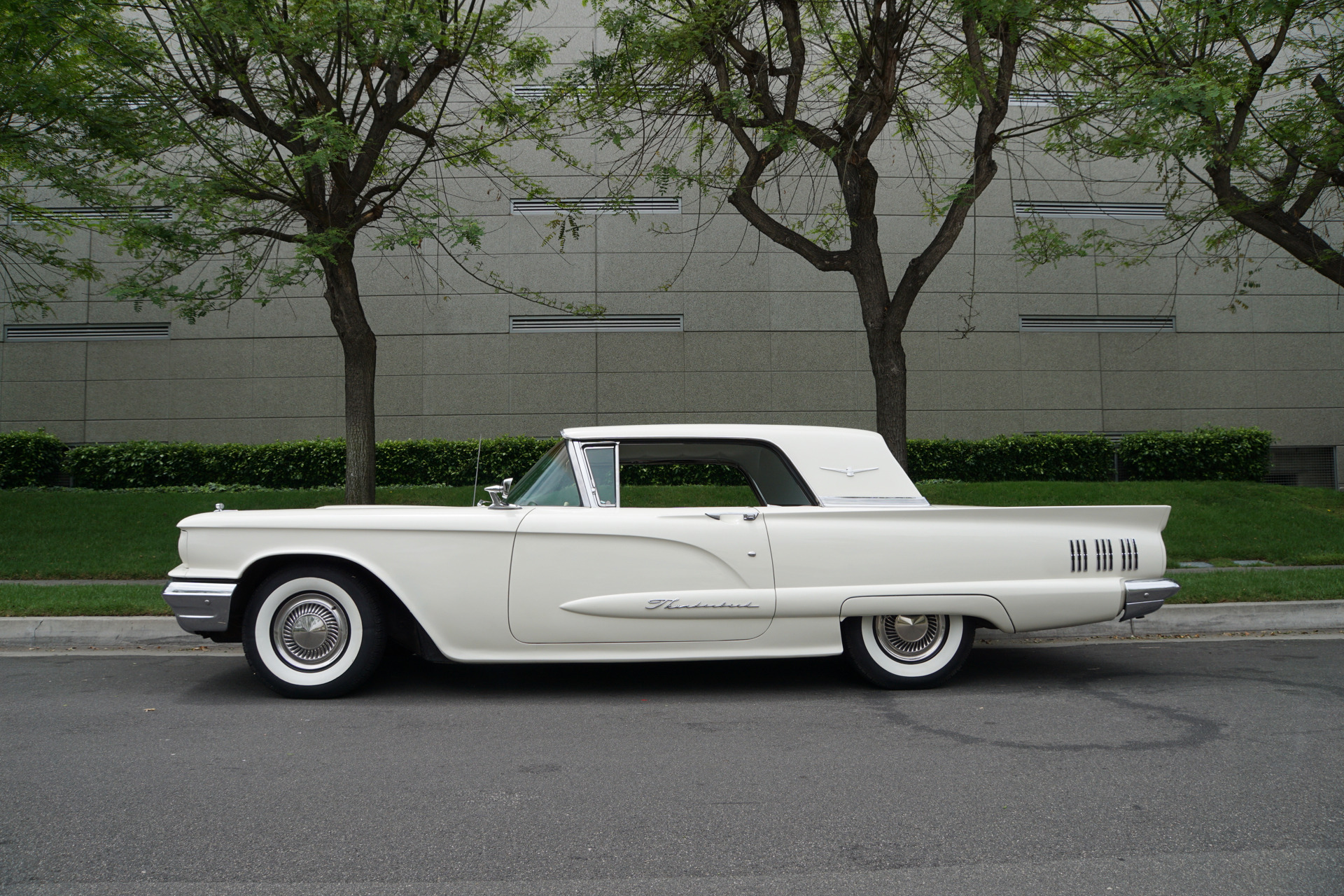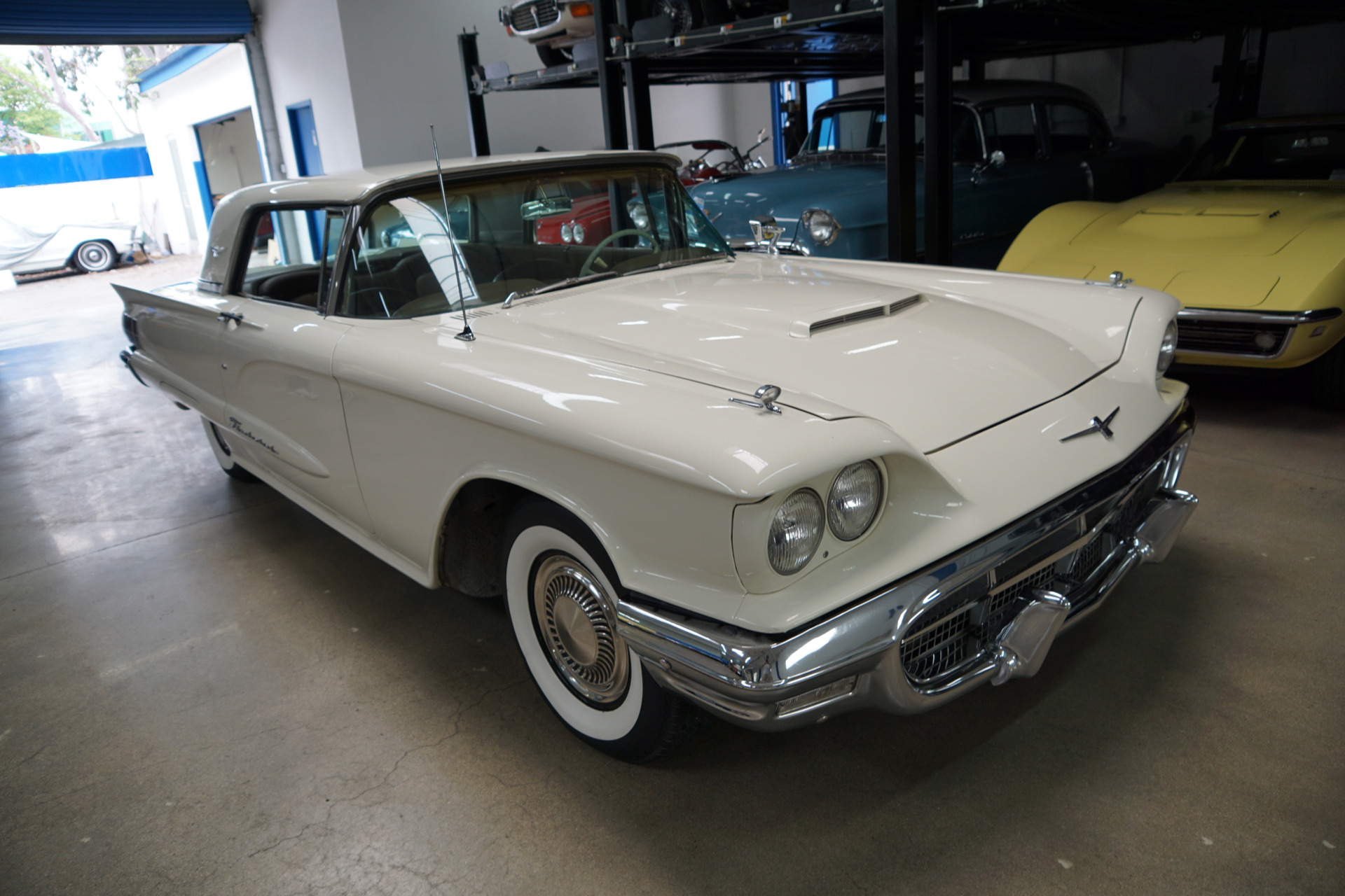 West Coast Classics presents an exceptional and highly desirable example of this second generation (1958-60) of Thunderbirds, a beautiful high quality older restoration example of this 1960 Ford Thunderbird 2 door Hardtop with a 352 c.i. 300HP 4BBL V8 engine matched to it's original 'Cruise-O-Matic' transmission in completely rust free condition in it's original factory 'Corinthian White' color paint with it's original two-tone 'Beige & Tan' vinyl interior and with factory options including bucket seats, rare working factory 'Select-Aire' air conditioning, power steering, power brakes, power windows, original AM radio, heater & defroster, Lifeguard cushioned sun visors and instrument panel, seat belts, tinted glass, electric clock, automatic dome light, courtesy light, glove box & trunk light, full wheel covers, rear skirts and wide White wall tires!