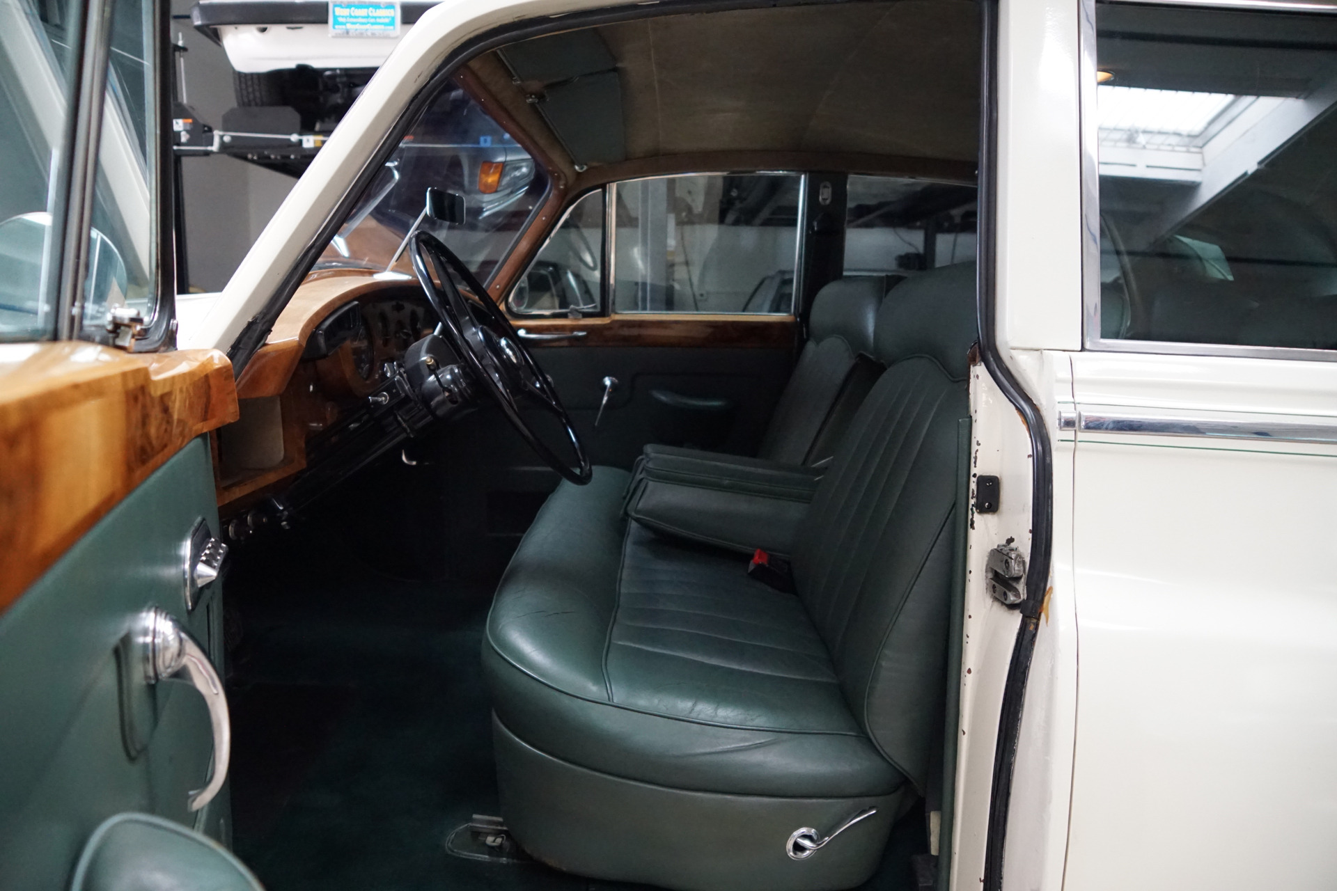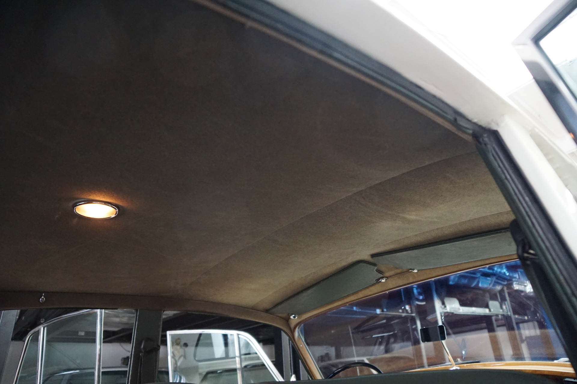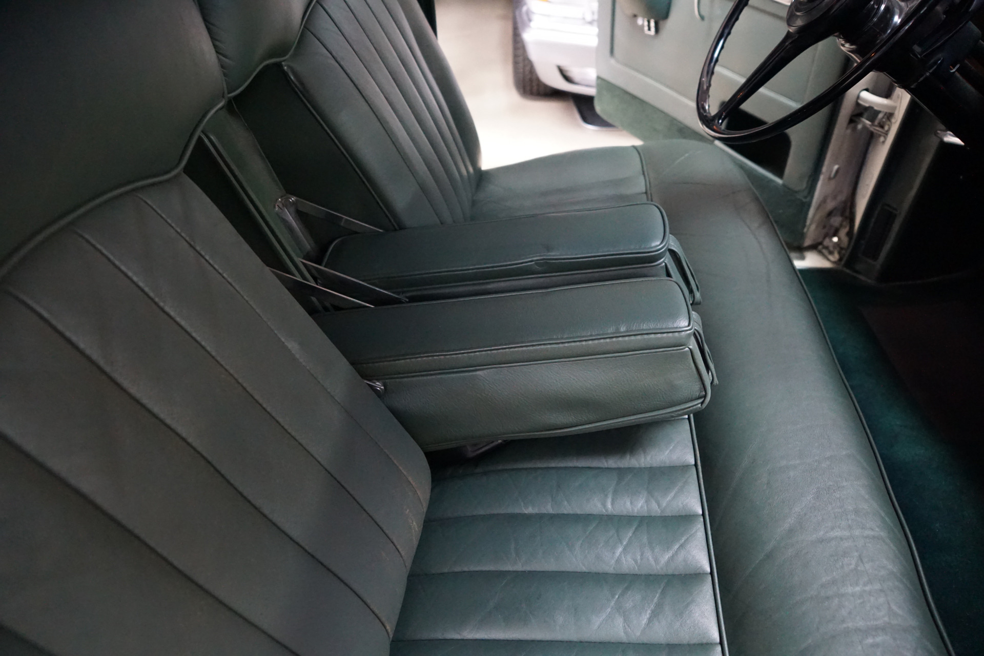 This particular example is finished in an 'Antique White' color complete with hand painted 'Dark Green' pin stripes matched to a full 'Connolly Dark Green' leather interior and carpeting. The car has it's original Mohair headliner and Connolly leather which was exclusively used in Rolls Royce and Bentley's and came from unfenced cows which produced unblemished hides and is incredibly durable and long lasting. This car was repainted some years ago and please note does now have some minor signs of wear with a few minor paint chips and scratches noticeable upon close inspection. All the chrome work, including the original and now very rare Bentley grille and the front and rear bumpers, is in very good condition and the car has it's original spare wheel and original jack still located in their rightful place of storage in the trunk compartment. The leather interior and carpet shows very well with only very minor signs of patina and the original wood is all excellent.