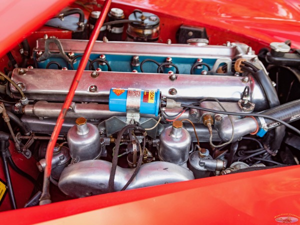 The XK150 S 3.4L XK engine with orange paint used on S models with straight port cylinder heads was fitted with three carburetors.