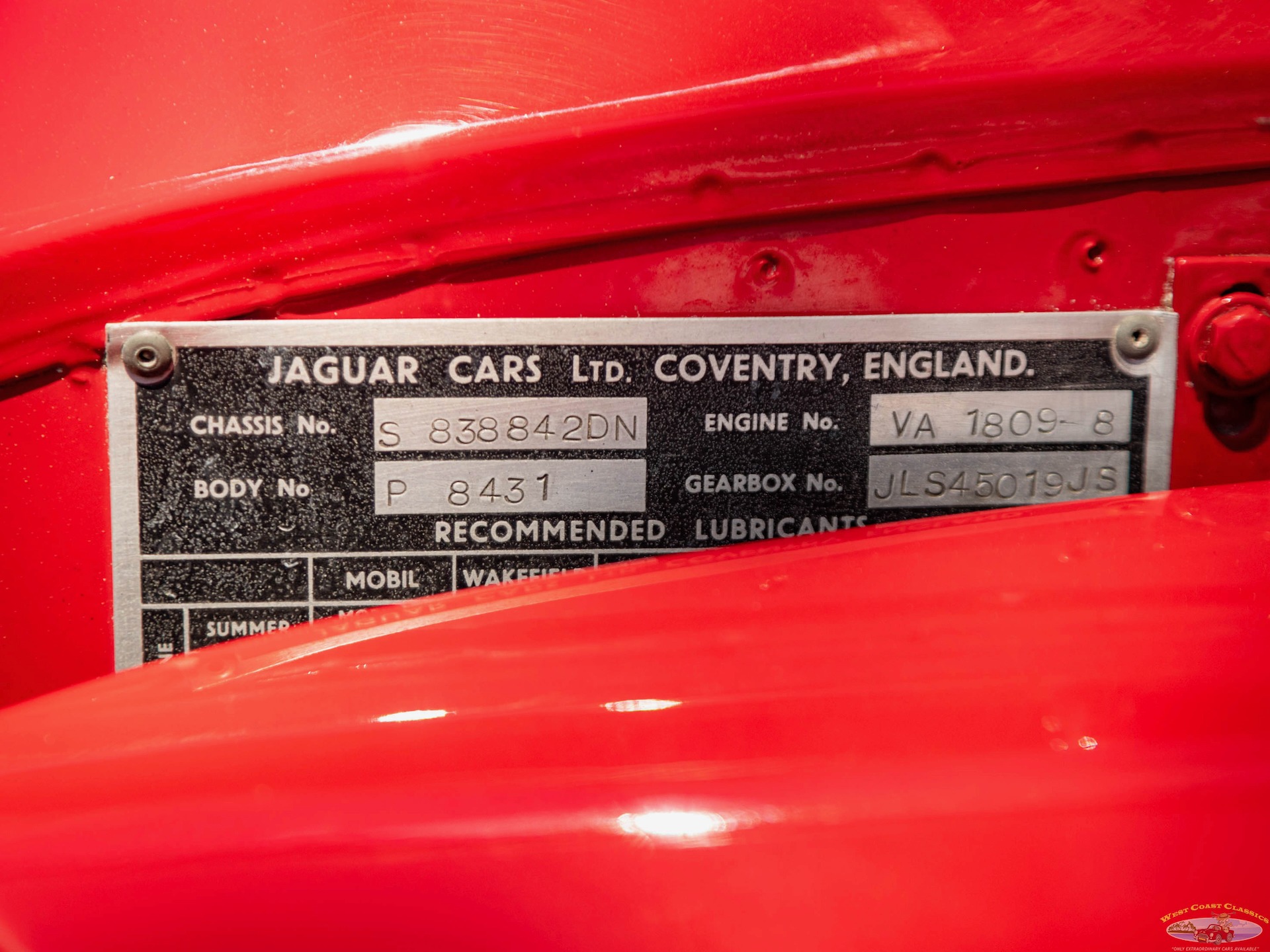 The lucky new owner will no doubt be eligible for nearly any major classic car rally or event he or she chooses. The Jaguar Heritage Trust Certificate confirms all numbers and paint codes and is included with the purchase. An excellent and highly driveable example with both the upgraded 5 speed manual transmission with O/D, four wheel disc brakes, dual exhausts and the rare 3.8 dual SU carbs matching #'s engine; a superb example of a true sporting legend, this exceptional, low mileage Jaguar simply begs to be driven.
