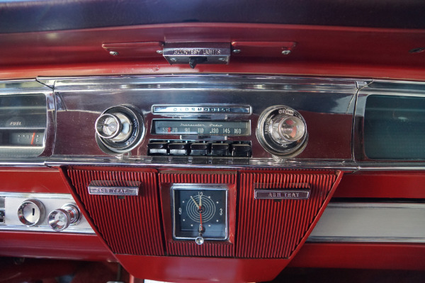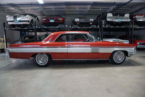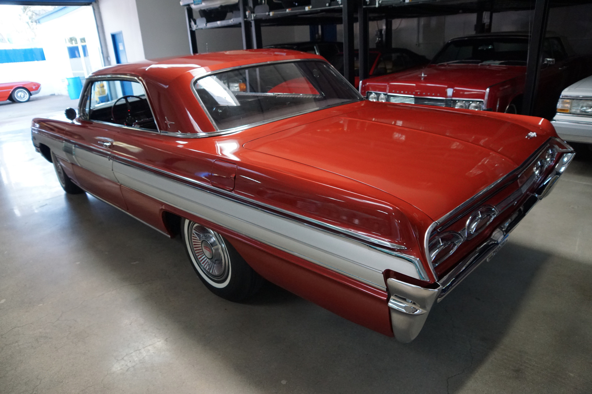 The Starfire was Oldsmobile's entry into the personal luxury market built on the Super Eighty-Eight's 123-inch wheelbase frame. The list of standard equipment included a more powerful V8, Hydra-matic drive, sports console with shifter, tachometer, courtesy lamp package, two-speed wipers, power brakes, power steering, brushed aluminum trim, dual exhausts and leather trim. Oldsmobile introduced the new Starfire in mid-1961. It was a high performance, high style, luxury automobile that was true to the company's rich performance history and offered a host of distinctive features. The Starfire returned for 1962 to include a hardtop variant. Priced around $4,000, the Starfire Hardtop Coupe was equipped with all the features found in the Super Eight-Eight plus brushed aluminum side panels, a sporty cockpit featuring bucket seats, leather upholstery, floor console and power-operated front seats. Power was from a 394 cubic-inch V-8 engine that offered 345 horsepower and 440 pound-feet of torque, courtesy of a Rochester four-barrel carburetor, 10.5:1 compression, a revised camshaft profile, an efficient combustion chamber design and a free-flowing dual exhaust system. This particular model comes complete with power drivers seat, factory tinted glass, console tachometer and reverb rear speaker.