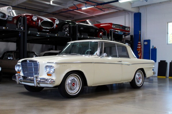 West Coast Classics are proud to present a very well presented and great daily driving example of this very rare and striking original southern California 1962 Studebaker Regal Lark 2 Door Hardtop 289 4 BBL 'Power Pack' 225HP V8 with a 3 spd automatic transmission with its original California 'Black License' plates and which recently underwent a complete mechanical and cosmetic restoration over the last three years including a fully rebuilt engine, transmission service, all new brakes, dual exhaust & 4 new Whitewall tires. The floor boards, trunk and all the typical rust-prone areas are solid and rust-free.