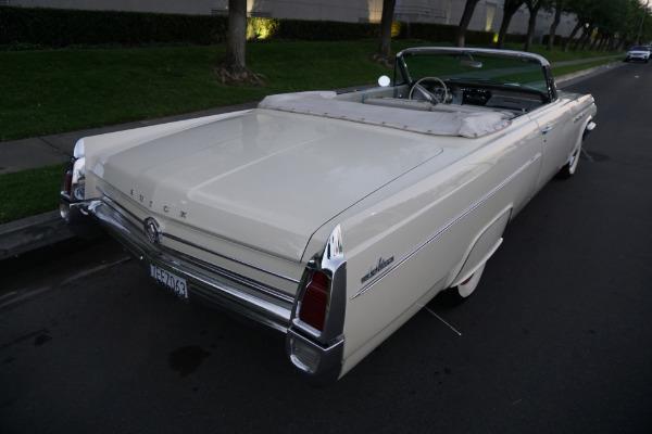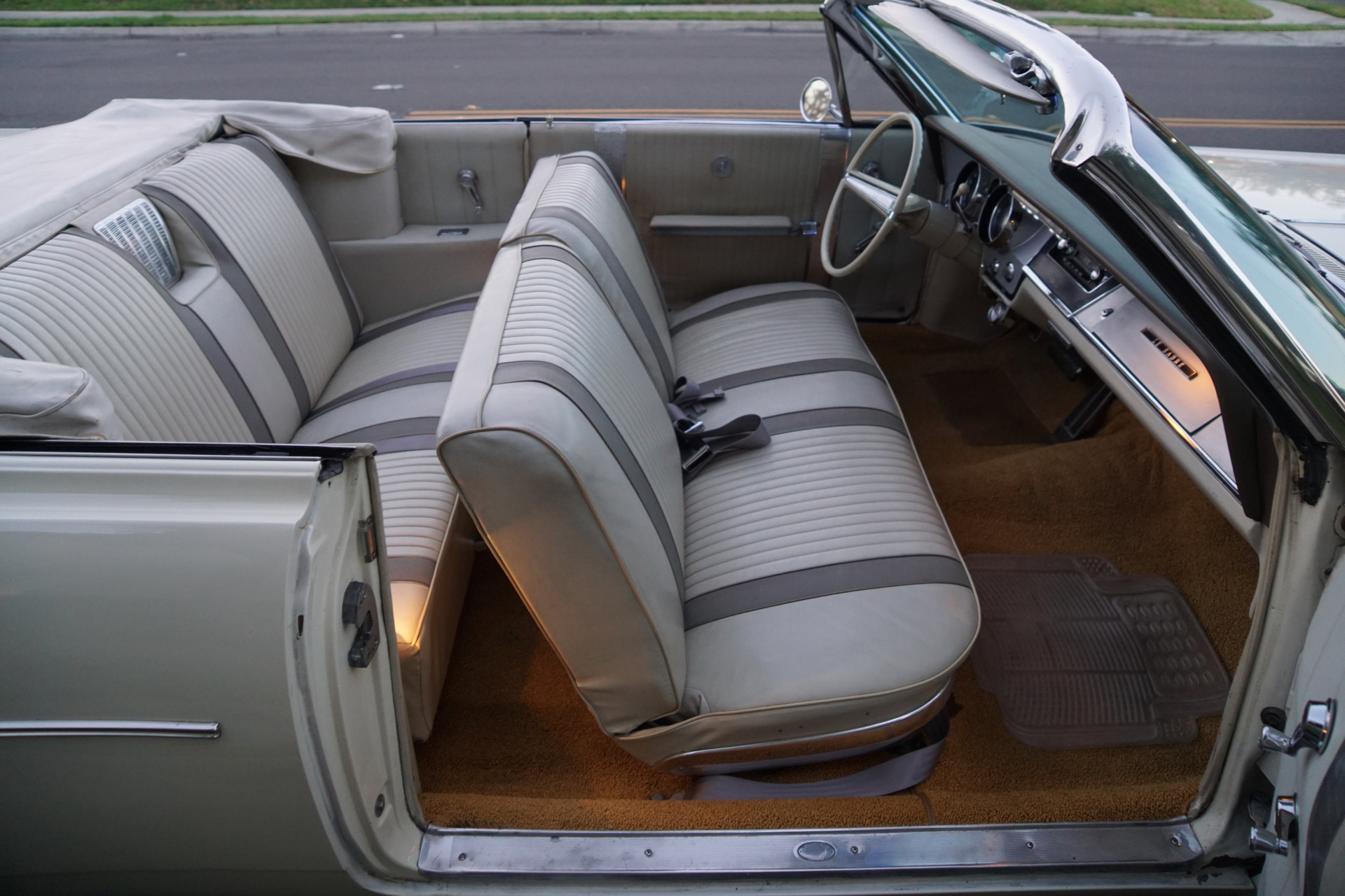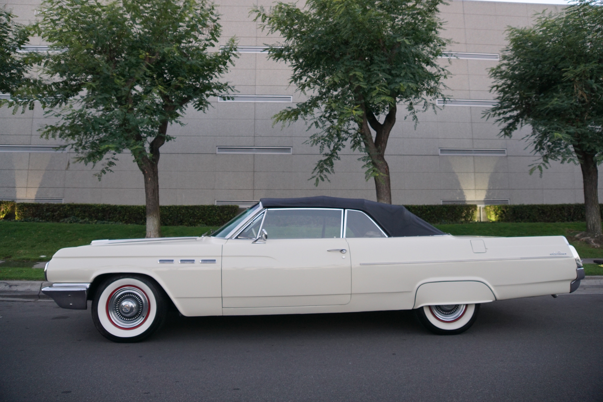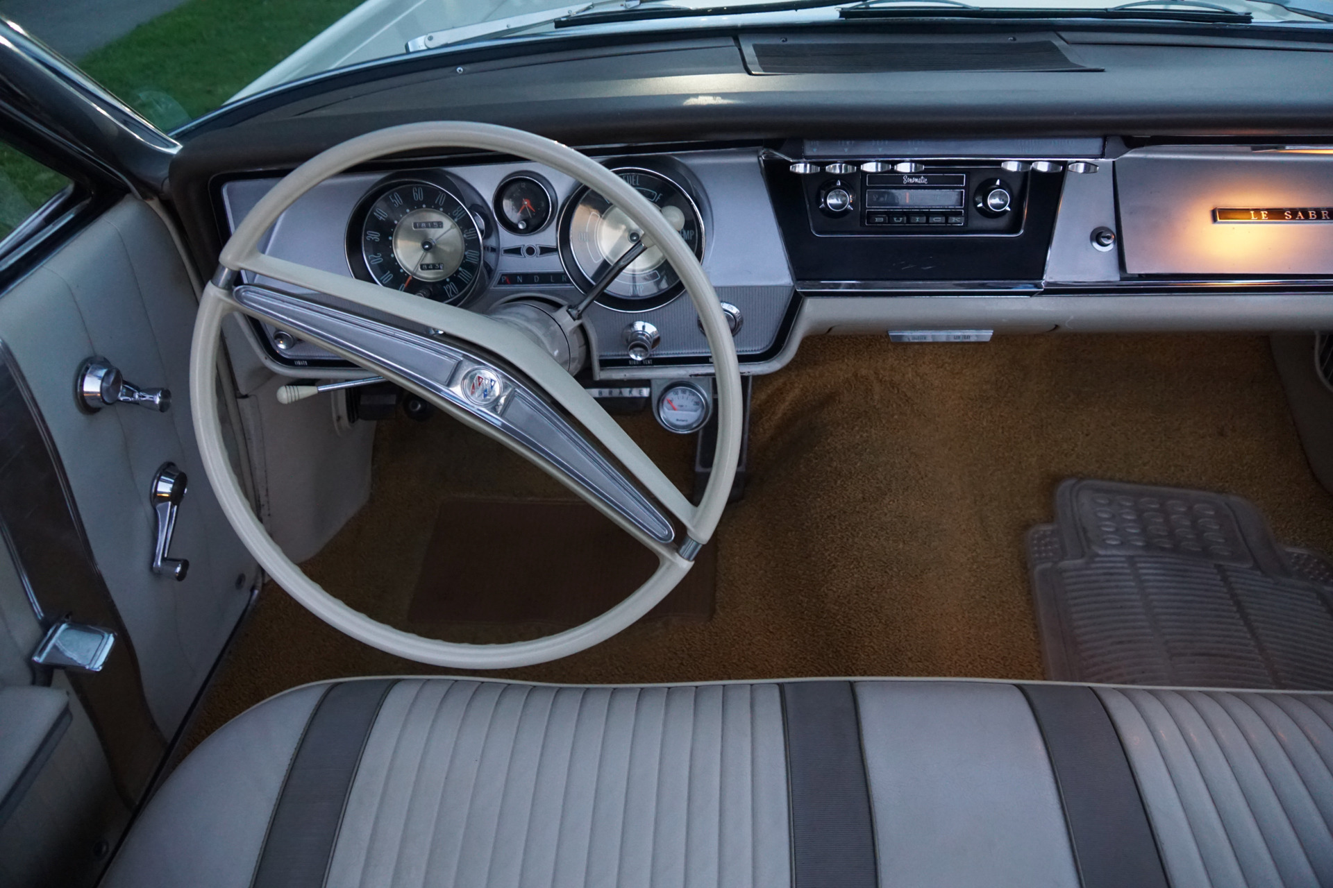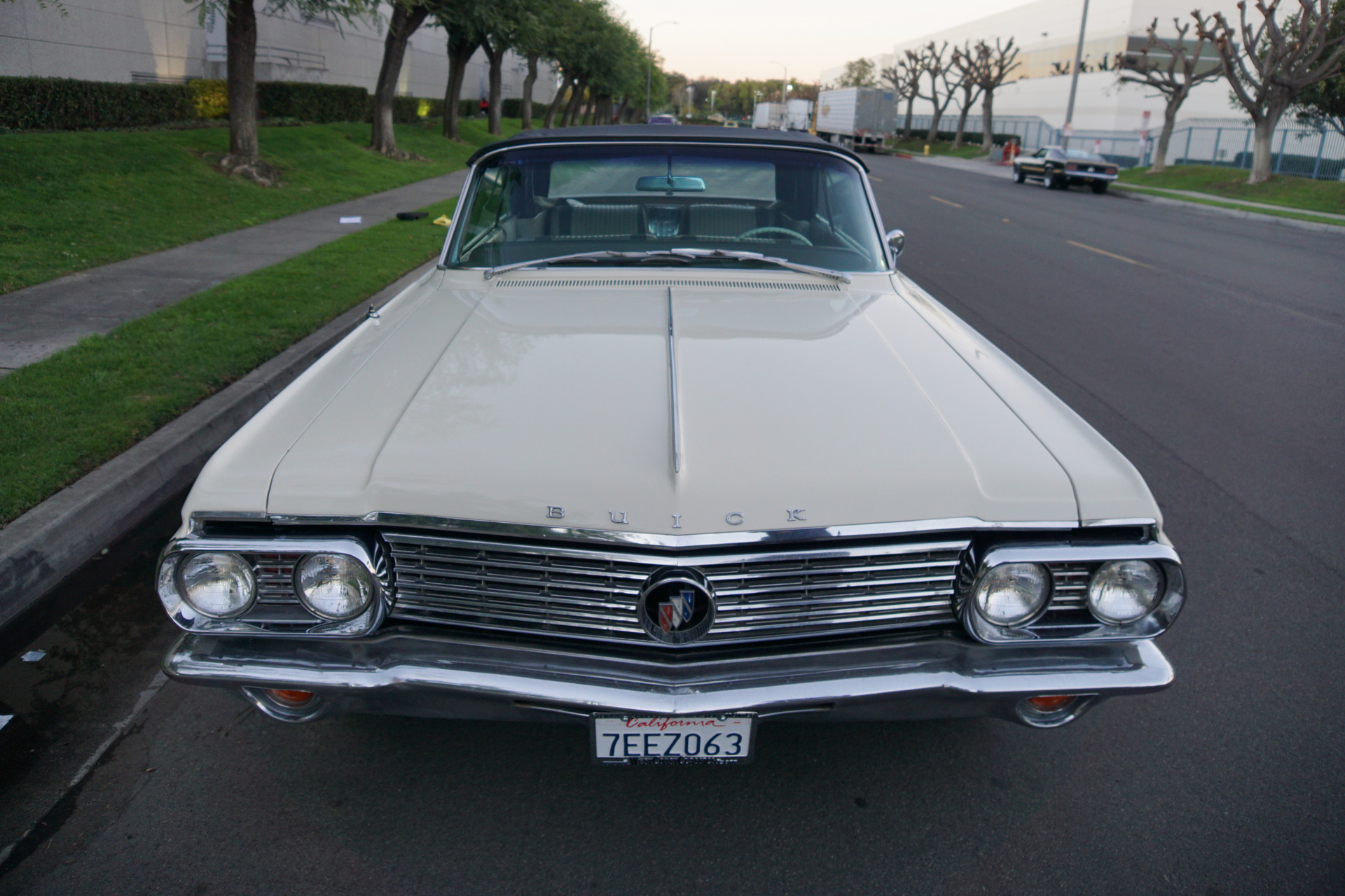This particular 1963 Buick Le Sabre Convertible boasts the dessirable Wildcat 401/445 engine and is in very fine daily driver condition throughout. The car has an older repaint in it's original 'Desert Sand' color paint. The original bucket seats 'Sandlewood' vinyl interior is in virtually completely original condition throughout and the original 401 c.i. 4 barrel V8 engine is extremely strong and powerful - must be driven to be fully appreciated - a truly remarkable daily driver that will give any modern day sports car a run for it's money! The transmission shifts smoothly through the gears and the car has four good tires, a fairly new convertible top & hydraulics and the car has it's original spare wheel and jack still in the trunk!