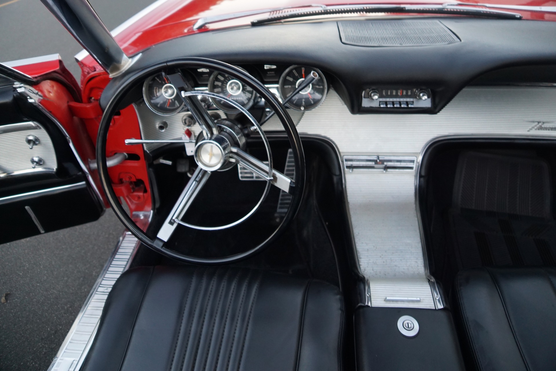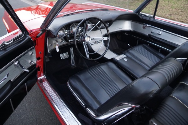 The Thunderbird was redesigned in 1961 with sleeker styling from its previous 'Squarebird' design that gave the bird a renown 'bullet-lie' appearance with an all new bodyshell featuring a severely pointed front end and the car enjoyed a smoother ride with much improved handling and soundproofing. The interior design featured a contoured dash that curved at its outward ends to blend in with the door panels and the model boasted the first 'Swing-away' steering wheel. A new engine, the 390 c.i. 6.4L V8 was standard and mated to a three speed automatic transmission. A vinyl roofed Landau option with simulated S bars was added to the line up in 1962 as was the legendary Sports Roadster for convertible models. The Sports Roadster had a special fiberglass tonneau cover for the rear seats which gave the car the appearance of being a two seater roadster like the original Thunderbirds from 1955-57. Newly optioned for '62 was an upgraded version of the 390 c.i. V8 named the 'M' code after the designated M used as the engine code in the VIN number of the very few and rare cars equipped with this upgrade. The 'M code version of the 390 c.i. V8 was equipped with no less than three 2 barrel Holley carburetors and produced 340HP. These 'M' code V8 Thunderbirds are exceptionally rare with some reports showing only some 200 in total being built during its production years of 1962-3 and obviously very few are left remaining on the roads today!