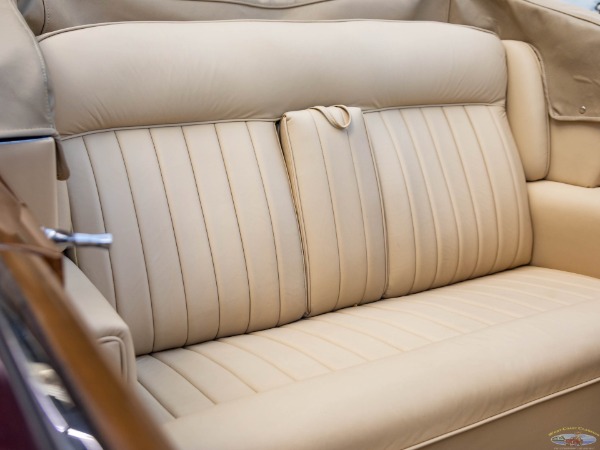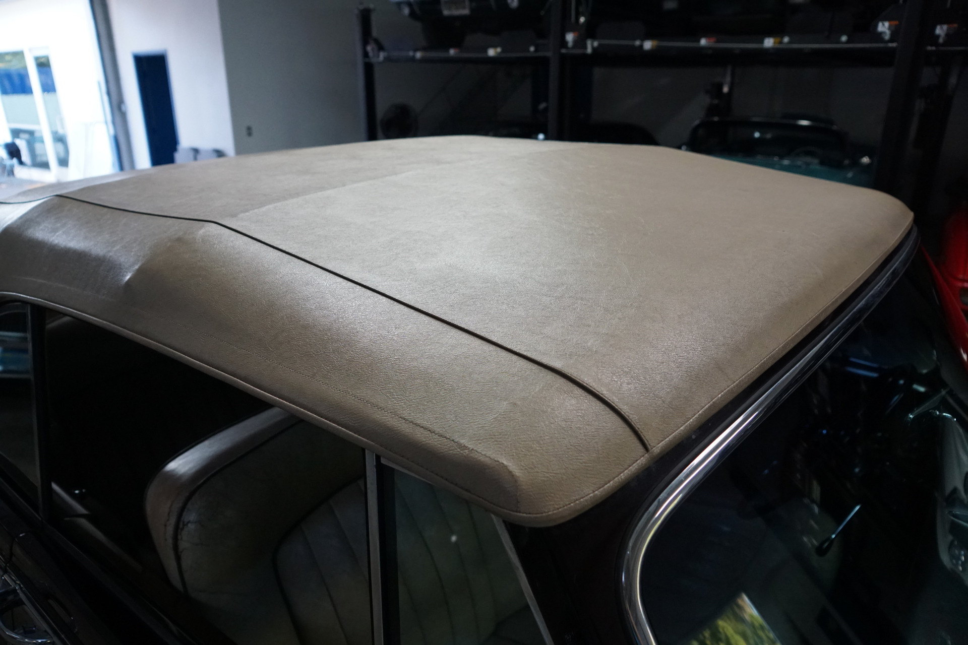 It has rare options of the altimeter and tachometer, air conditioning, 'Sundym' reflective tinted glass, White sided tubeless tires, power brakes and power windows. Finished in an exceptionally striking color of 'Regal Burgundy' with a newly upholstered 'Tan' color Connolly hides interior. The original seats are truly still as comfortable as the day they were new, firm and supportive and recently reupholstered. The carpeting and the car's original convertible top and mohair headliner have also been restored with no expense spared and the car show superb maintenance and care from its three long time owners.