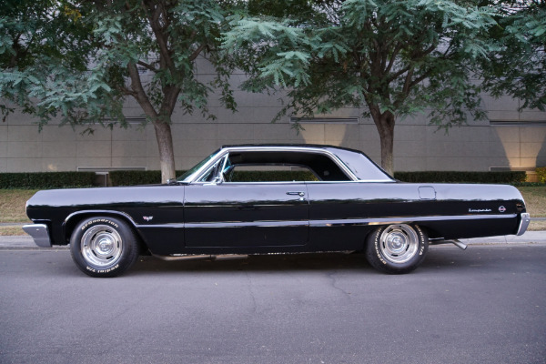 West Coast Classics are proud to present an absolutely exceptional and extremely rare and recently frame off restored example of this highly desirable original southern California 1964 Chevrolet Impala factory SS 2 Door Hardtop (41447) with a date correct 327 V8 matched to a 'Powerglide' 2 speed automatic transmission and professionally finished in the most striking 'Tuxedo Black' color paint matched to it's original 'Black' SS bucket seats vinyl interior (trim code 815) with center console & floor shifter and loaded with factory options including air conditioning, power brakes, power steering, dual exhausts, AM/FM radio, electric clock, cruise control & tinted glass!