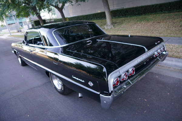 The SS model was the top of the line and most luxurious and sporty model and only available as a two door convertible or coupe and came equipped with superior rear axle location with four, rather than three, links, making it one of the best handling muscle cars of its day and available only on the top of the line Impala. In 1964 the SS became a separate line up from the rest with a separate designated VIN number. The list of standard equipment on the '64 SS included leather grained vinyl upholstery with individual front bucket seats and swirl pattern dashboard and body molding inserts. There was also a locking center console, a built-in rear seat radio speaker grille, dual dome and floor courtesy lamps with automatic door switches, full wheel covers of specific Super Sport design and red SS emblems all over the car. Additional standard equipment included thick foam cushion seats, bright aluminum front seat end panels and a bright instrument panel insert with nameplate molding. It also included an electric clock, parking brake warning light and Impala center emblem on the steering wheel. Special padded arm rests were included for front and rear seats.