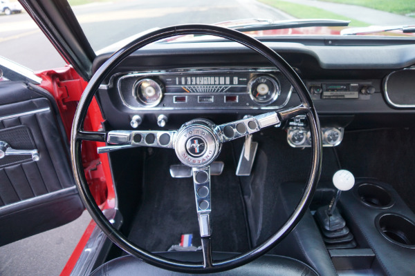 West Coast Classics are proud to present a 1965 Ford Mustang Custom 2 Door 4 speed manual Coupe upgraded with a 351 Windsor V8 engine with aluminum heads, 4 speed manual transmission with Hurst shifter, Torq thrust wheels, chrome valve covers, aluminum radiator, front disc brakes, chrome air cleaner, chrome shock tower mounts, dual trumpet exhausts, custom gauges.
