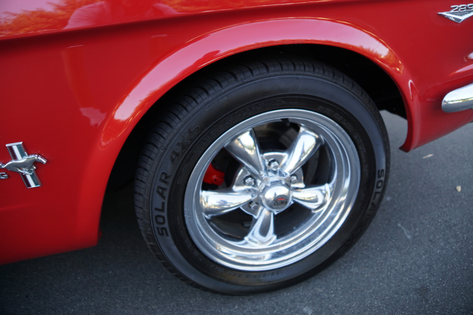 The V8 fires up readily with a terrific sound out of the dual exhaust. And you have complete control over the power and muscle thanks to the four-speed manual transmission. The upgraded REV alloy wheels also allow for new modern performance 'Yokohama' tires, and there's front disc brakes. So this upgraded pony car offers power and control. This has the look of a first-year Mustang with the power you really always wanted. That makes for a terrific total package.