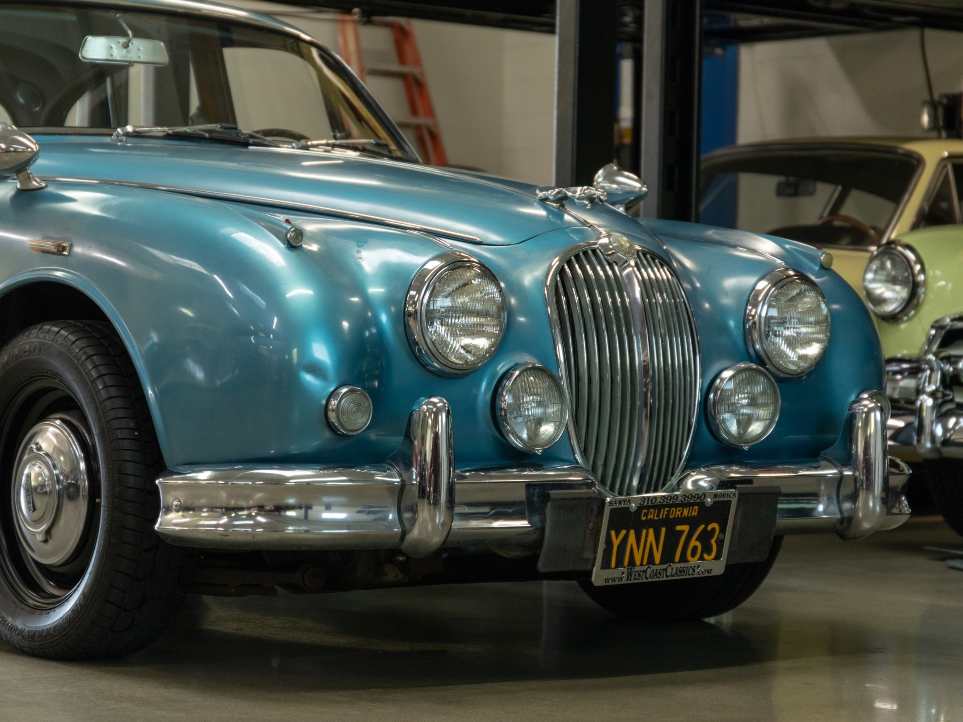 The Jaguar Mark 2 (II) is a sports sedan which was built from the years 1959 to 1967 by Jaguar in Coventry, England as a successor to the Jaguar 2.4L and 3.4L models which were manufactured between 1957 and 1959. These earlier models later became known as the Jaguar Mark I following the release of the Mark II in 1959. The Mark II is a beautiful, fast and legendary sports saloon, or sedan as referred to in the U.S. and it came with a 120HP 2.4 L engine, 210HP 3.4 L engine or a 220HP 3.8 L Jaguar XK engine similar to the Series I XKE or E-Type having the same block, crank, connecting rods and pistons but different inlet manifold and carbs, with only two SU's instead of three SU's as on the E-Type in Europe and therefore 30HP less. The head of the six-cylinder engine in the Mark II had curved ports compared to the straight ports of the E-Type configuration and both the 3.4 and 3.8L cars were fitted with twin SU HD6 carbs. Nevertheless the performance of these small, sharp, tight sedans was nothing less than legendary with the Mark 2 gaining a reputation as a capable get away car amongst criminals and law enforcement alike with the 3.8 L model being particularly fast with its 220 HP engine driving the car from 0-60 mph in under 8.5 seconds and with a top speed of 125 mph, making it faster than 80% of all other contemporary two seater sports cars and with the car still having enough room for five adults! They were employed by the British Police to patrol the British motorways (Freeways!) The Mark 2's body lines, derived from the Mark 1, proved sufficiently popular over time to provide an inspiration for the Jaguar S-Type introduced in 1999. The original S-Type has always proved less fashionable or desirable and consequently less valuable than the Mark II and therefore less have survived or been restored.