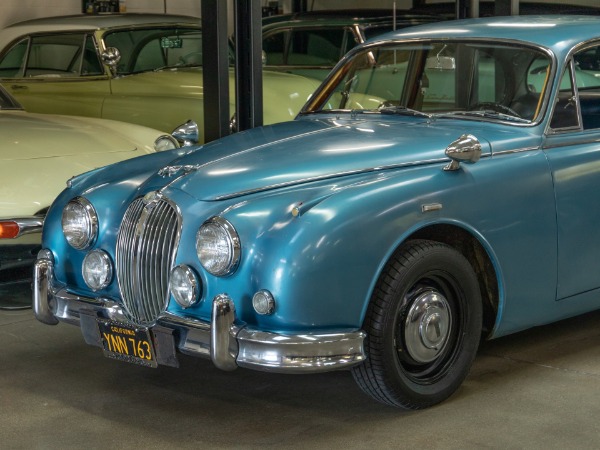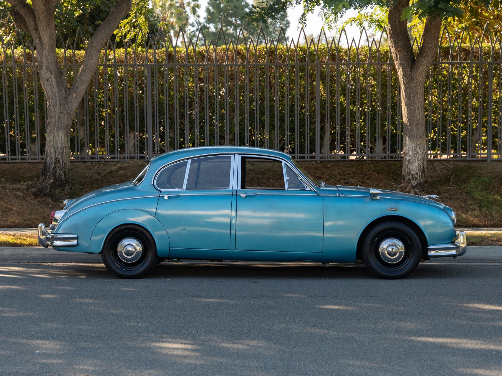Finished in 'Silver Blue' with a matching Dark Blue interior, this surviving 1965 Jaguar Mark II matching # 3.4 Liter Saloon comes with many options, including: Laycock de Normanville factory overdrive, 4-wheel disc brakes, Lucas fog lights, AM/FM radio, its owners manual, service manual, tools.