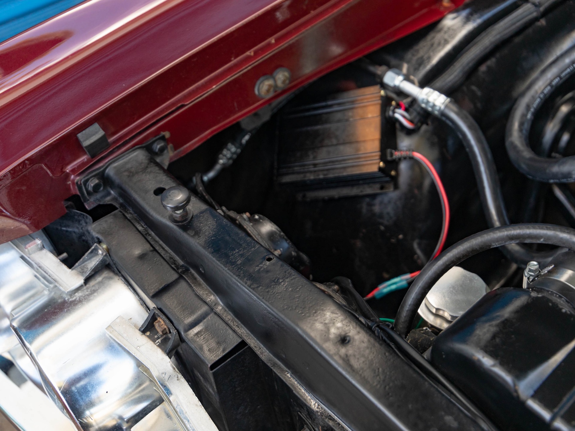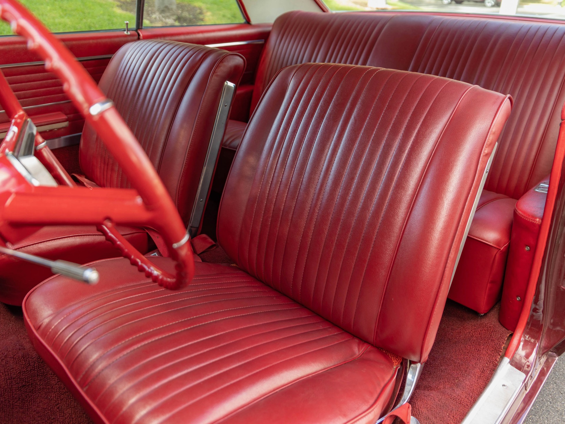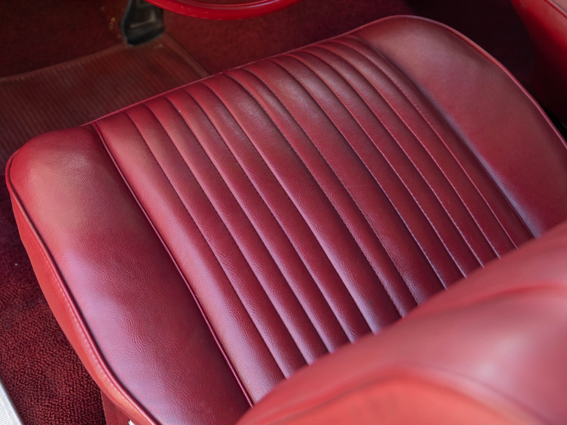 Finished in it's original factory 'Burgundy Mist' (color code N) paint over a 'Provincial White' (code C) hardtop and with it's original factory 'Red' (trim 955) color vinyl seats and interior with the floor boards, trunk and all the typical rust-prone areas solid and rust-free and the car has no signs of any accidents.