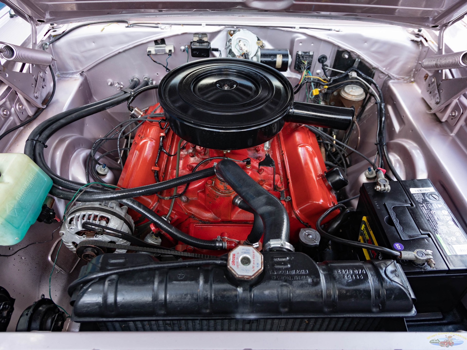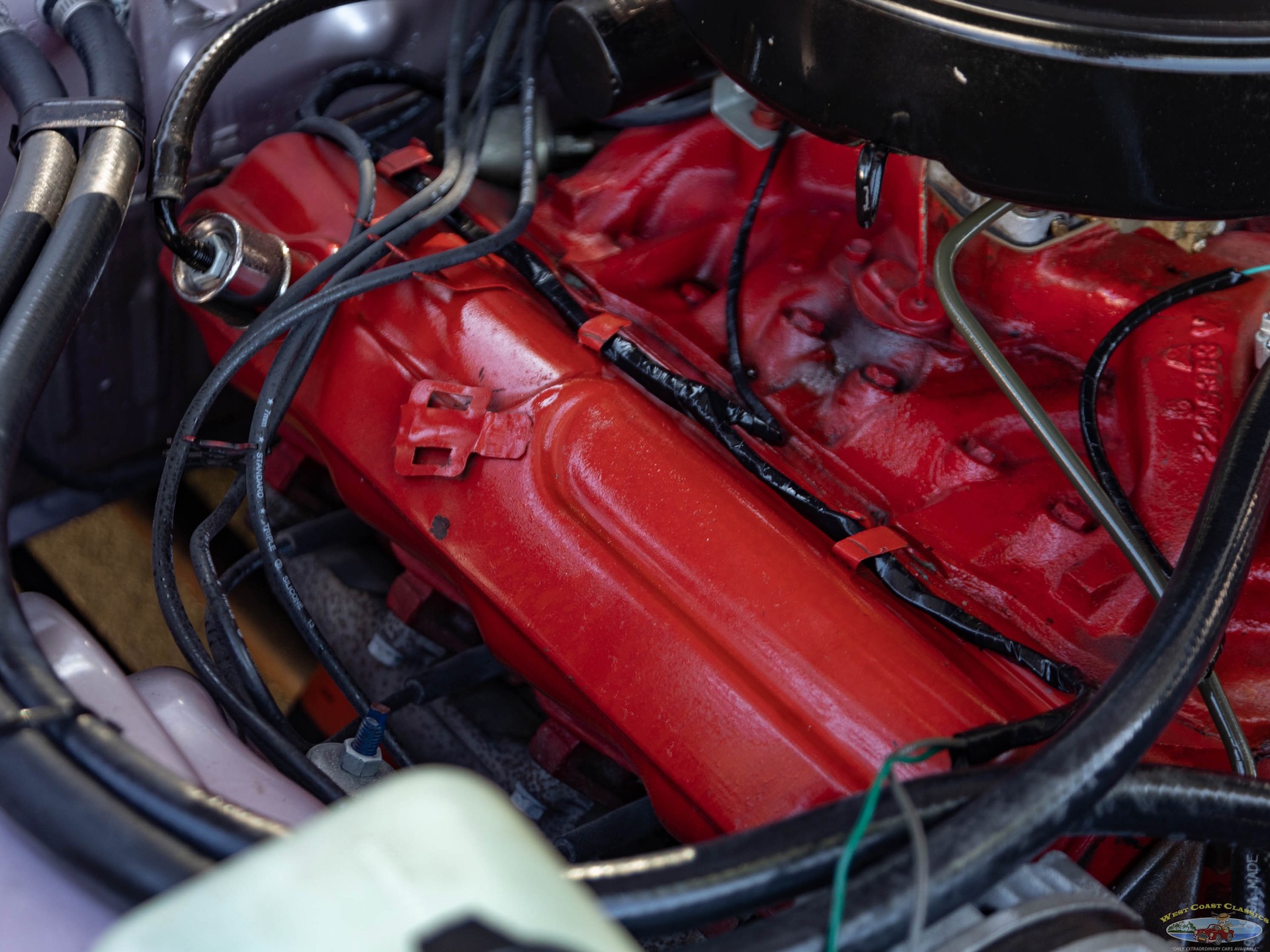 An obviously always garage kept example with the original floor boards, trunk and all the typical rust-prone areas completely solid and rust-free. There are no signs that the car has had any accidents of any kind - obviously an always cherished car since new! The car looks very impressive and reportedly recently underwent a complete restoration in its original factory color 'Mauve Poly' (Color code 66-1) paint with its original 'White' (Trim code P4W) color bucket seat interior with Black carpeting. The car has all it's original logos and came factory equipped with the three-speed manual transmission. The dashboard, the headliner, the carpets and all the seats and all the chromework are in exceptional condition and the car has factory correct wheels and tires.