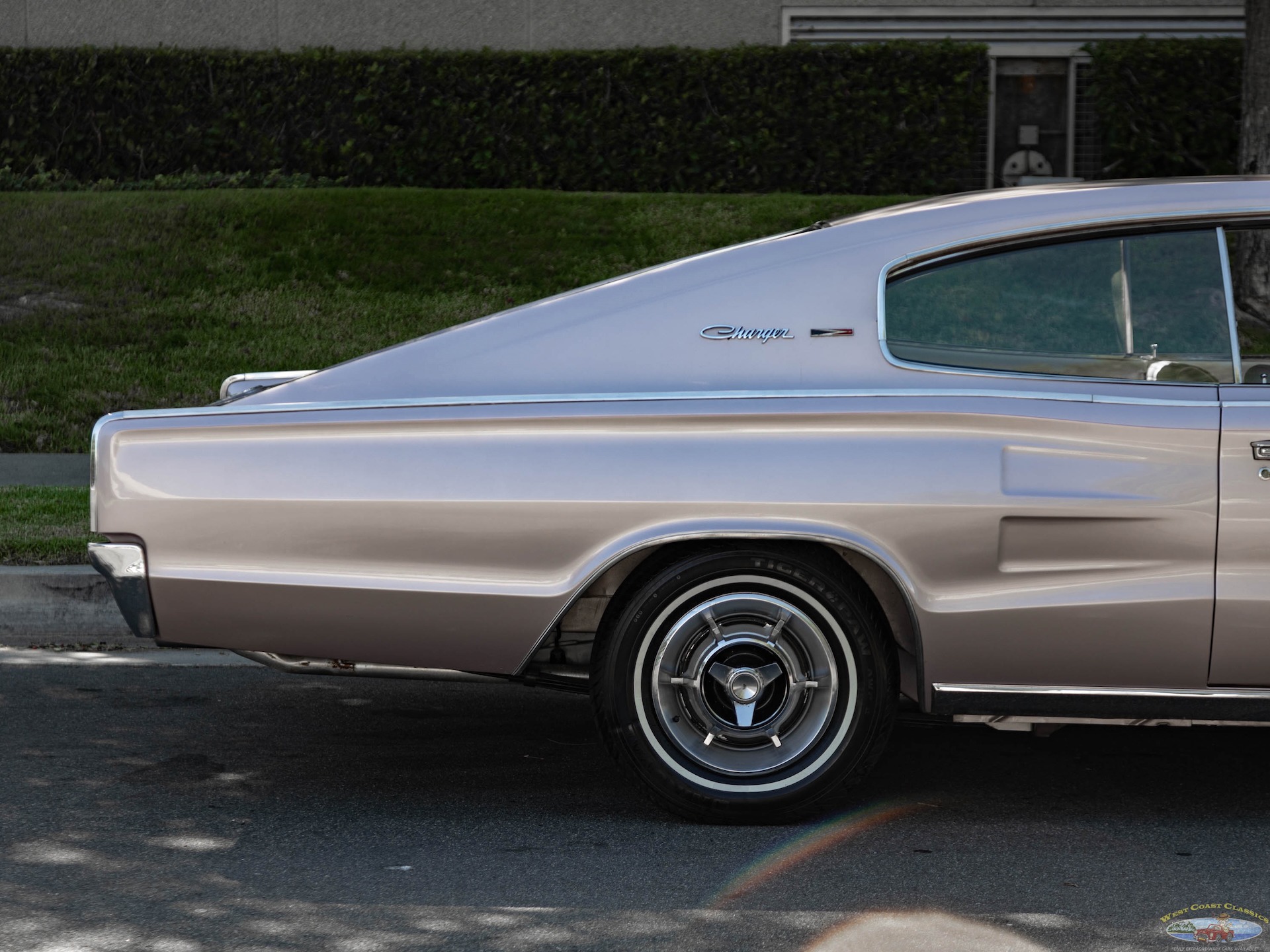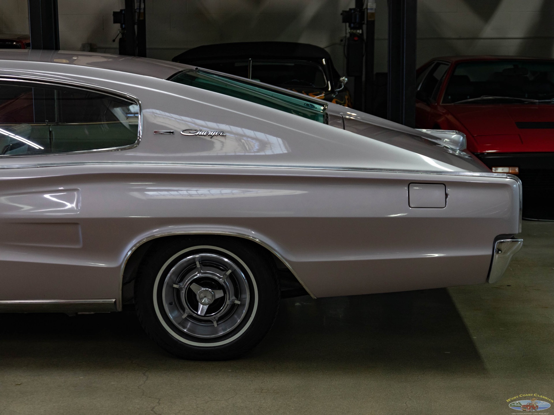 West Coast Classics are proud to present an absolutely exceptional example of this obviously always beautifully well kept, garaged, cherished and recently restored rust free 1966 Dodge Charger 318 V8 4 2 Door Fastback Hardtop with a 3 Speed manual transmission and with 4 bucket seats with the rear seats folding flat for extra storage, retractable headlamps and power steering!