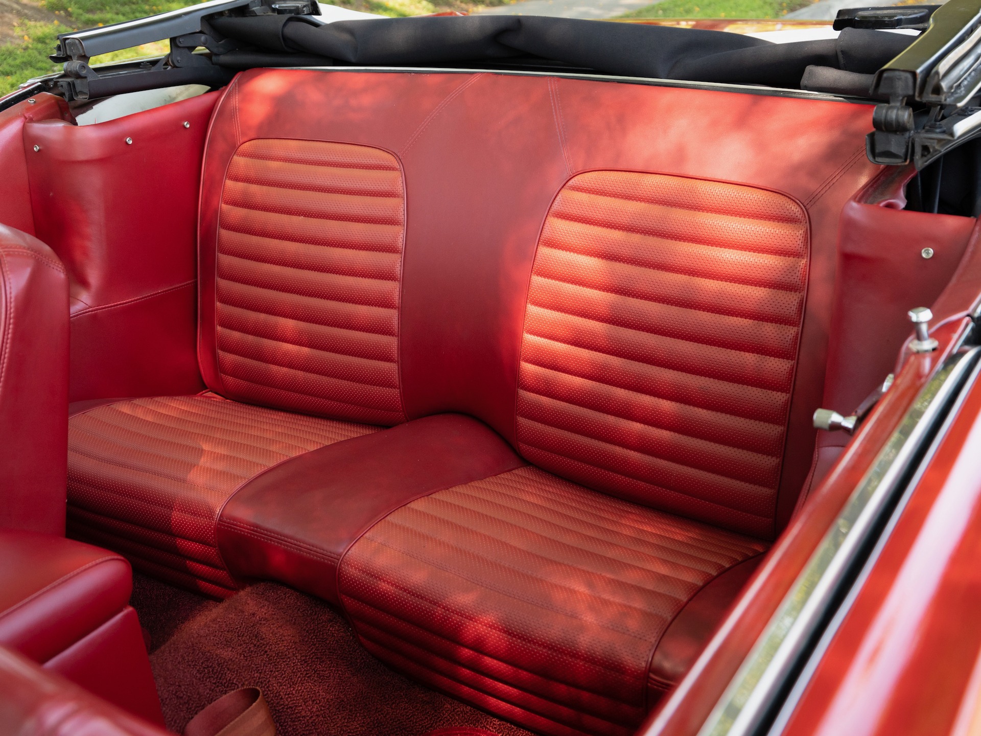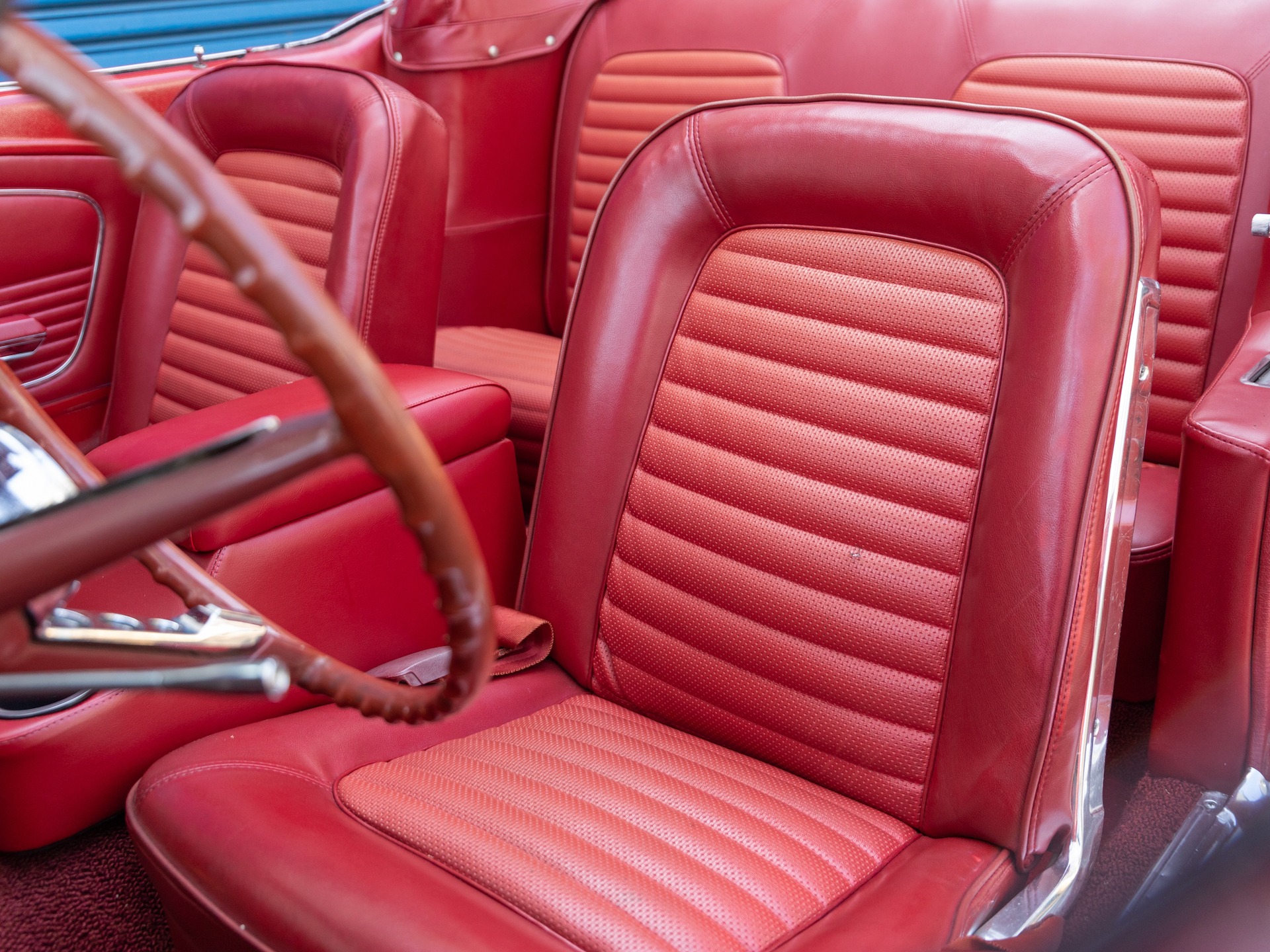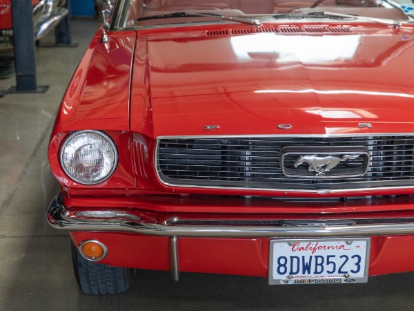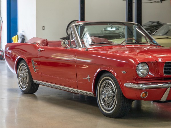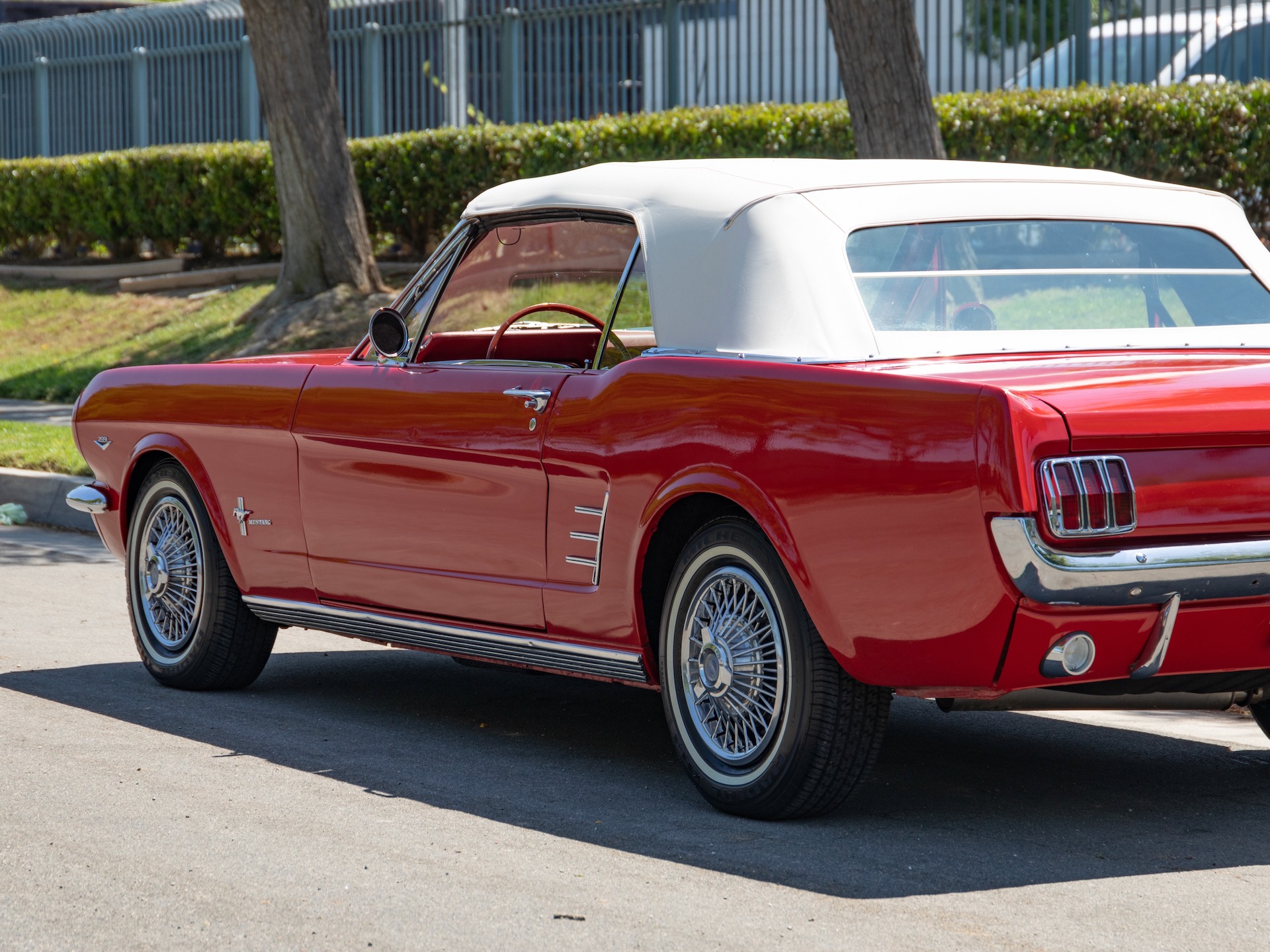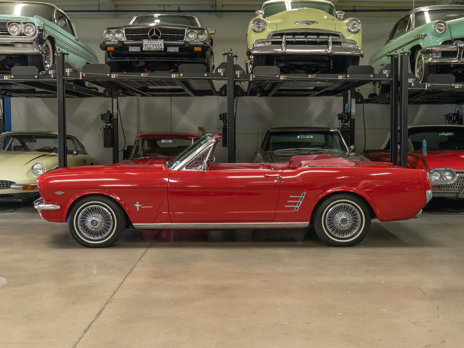 West Coast Classics are proud to present a great daily driving and striking example of this 1966 Ford Mustang 'C' code 289 V8 Convertible with custom upgrades including a rebuilt fuel injected 289 V8 engine with an automatic transmission in original 'Candyapple Red' factory color paint with a very striking reupholstered original 'Red vinyl & Red Rosette' vinyl trim interior and a new 'White' power soft top and with the desirable additions of after market air conditioning and power front disc brakes.