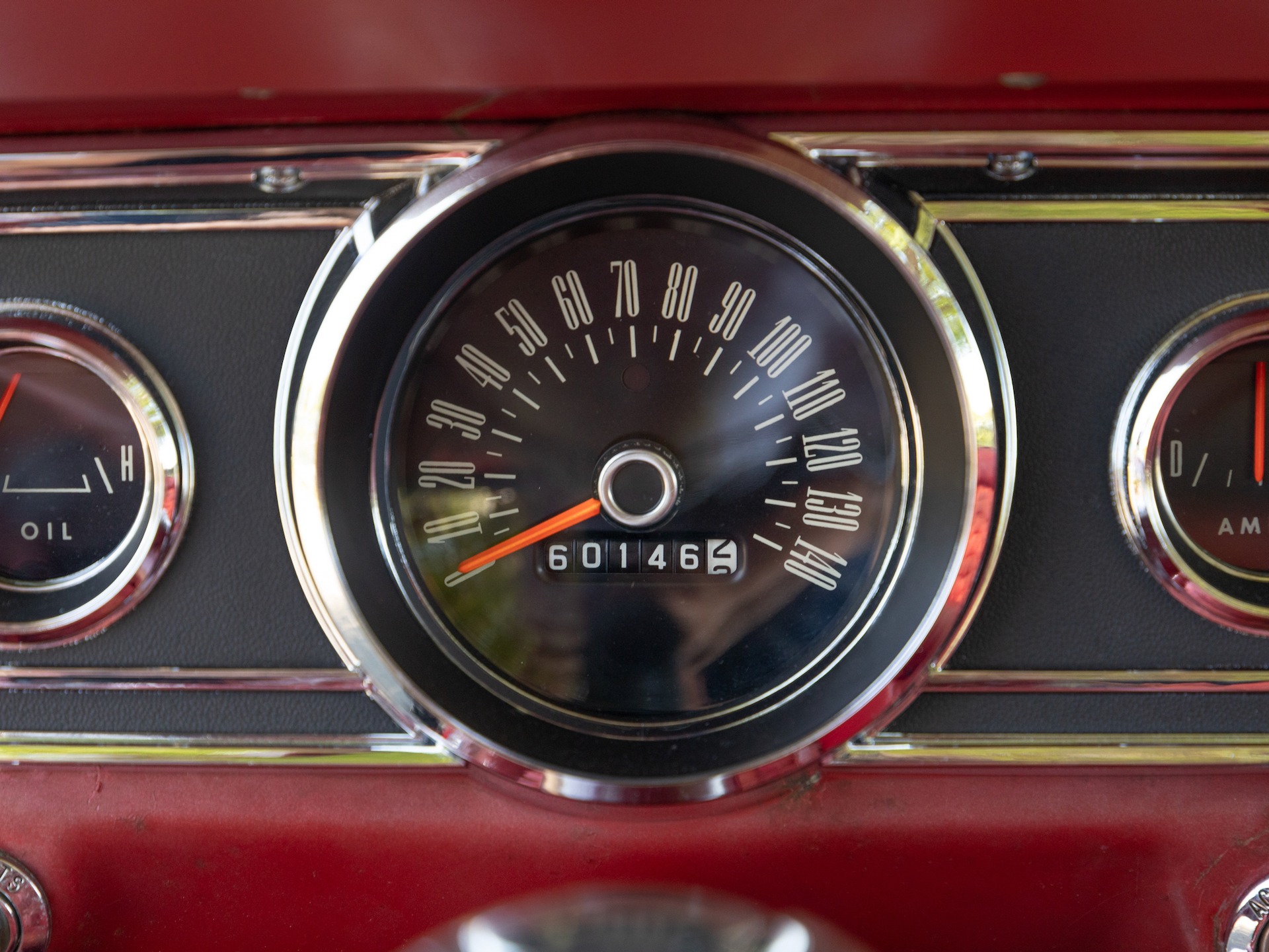 Ford's biggest success of the sixties and the originator of the 'Pony car' concept was essentially a sporty compact car but with a now legendary long hood and short deck proportions, built on Falcon and Fairlane chassis and drive-train components, the Ford Mustang was introduced in April 1964 as '65 models and within a year became the fastest selling car of all time; with these early production cars now carrying special favor! The upgraded V8 from the Falcon six cylinder engine was the 260 c.i. V8 produced on the same assembly line with other 1964 Fords, the early models were titled as 1965 models although they were actually from the 1964 production era. After September 1964 the 260 V8 was dropped in favor of the larger 289 V8 like this particular car.