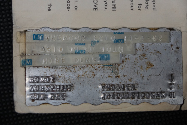 The car will be sold with a copy of the original selling dealer invoice showing the car's original options and also the actual original owners Protection plan & warranty booklet with the original factory Protecto-plate. Matching #'s L79 327/350HP engine 7100272 V0826HT pad; correct 3892657 casting # with VIN # stamped on the engine pad. M21 Muncie Close Ratio 4 speed manual transmission. Correct matching # AN code (7 14 666) 3.55:1 ratio Positraction rear end. The car will also be sold with a thick file documenting the cars history and with comprehensive service records.Original factory options include:4 spd Cl Ratio Transmission $184.35