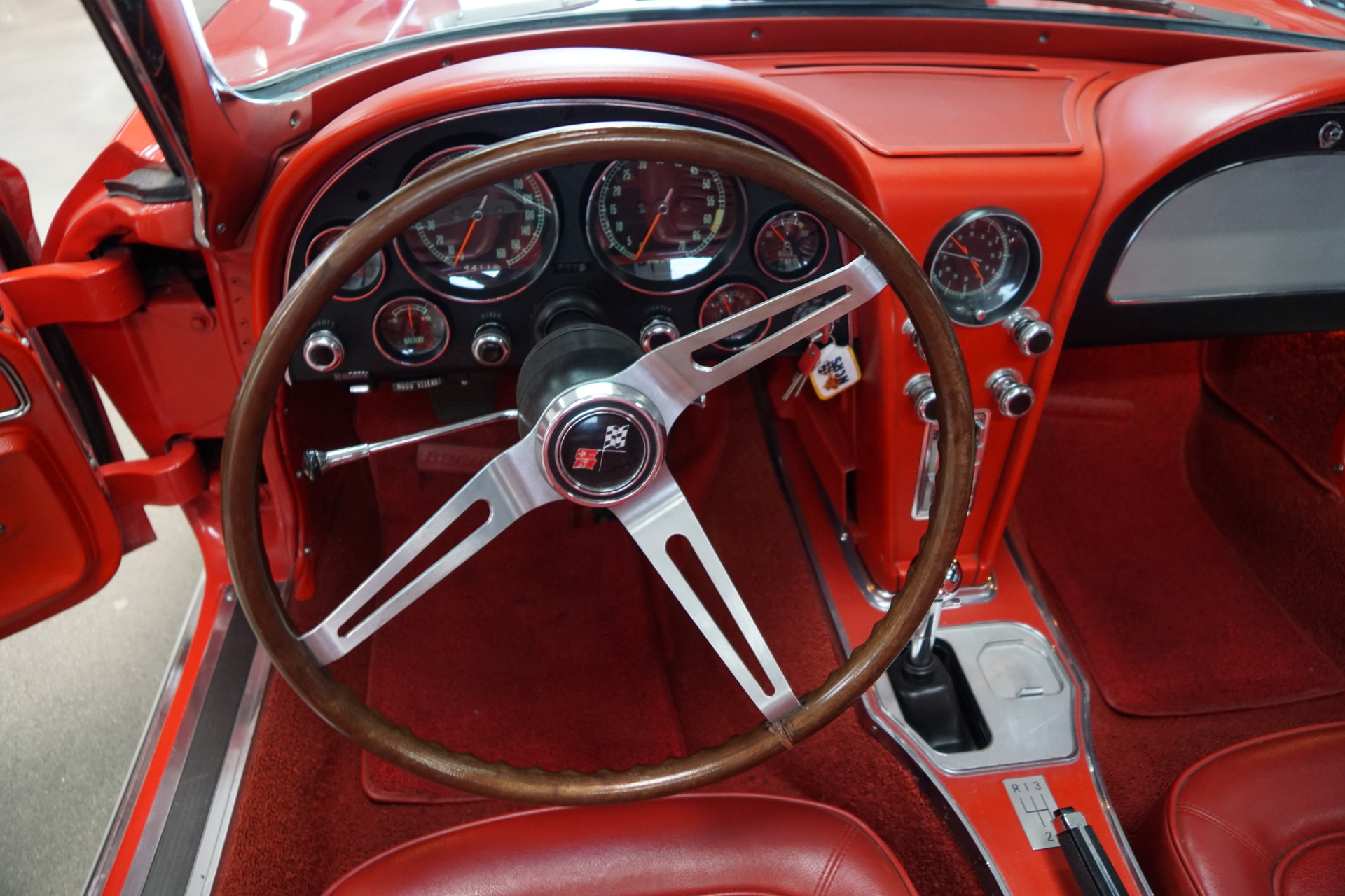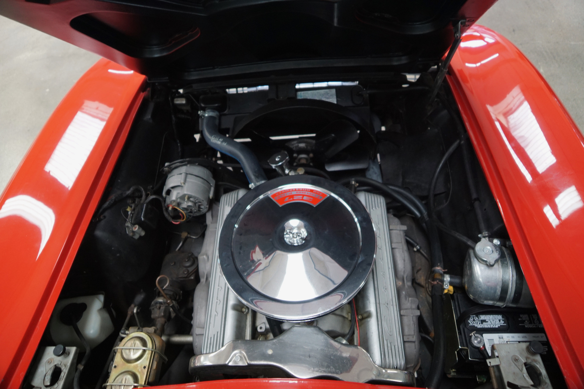 The car was purchased by it's original owner at 'Luby Chevrolet', the Chevrolet dealership of Denver, Colorado on 11-1-1966, a Lakewood, CO resident and reportedly the car eventually made its way into the hands of the noted and renown Corvette collector Paul Pierce of Louisville, KY. Pierce sold the car to the also renown 'Pro Team Corvette' of Napoleon, OH sometime in 2012 from where it was sold to it's next collector/owner of Scottsdale, AZ. The car was obviously purchased by Paul Pierce, noted for his Bloomington Gold Corvette's, because of the car's pedigree. It is a very early model built during the second week of production of the final 1967 year. It is # 272 of 22,940 1967 Corvettes and it is 1 of only 2,241 in 'Rally Red'. Chevrolet apparently did not track interior colors but very few Red bodies had matching Red interiors so this is definitely one of the first, if not the first, Red-on-Red '67's built. It is also unique having been built at the AO Smith plant in Livonia, MI on 8/23/1966. The C2 Corvettes (1963-67) were so popular that Chevy outsourced some of the bodies to Smith. They are considered by enthusiasts as more collectible than a body made in St Louis. The car was finally assembled on 9/7/1966 at the Corvette plant in St Louis and it was delivered to 'Luby Chevrolet' in Denver on 11/1/1966.