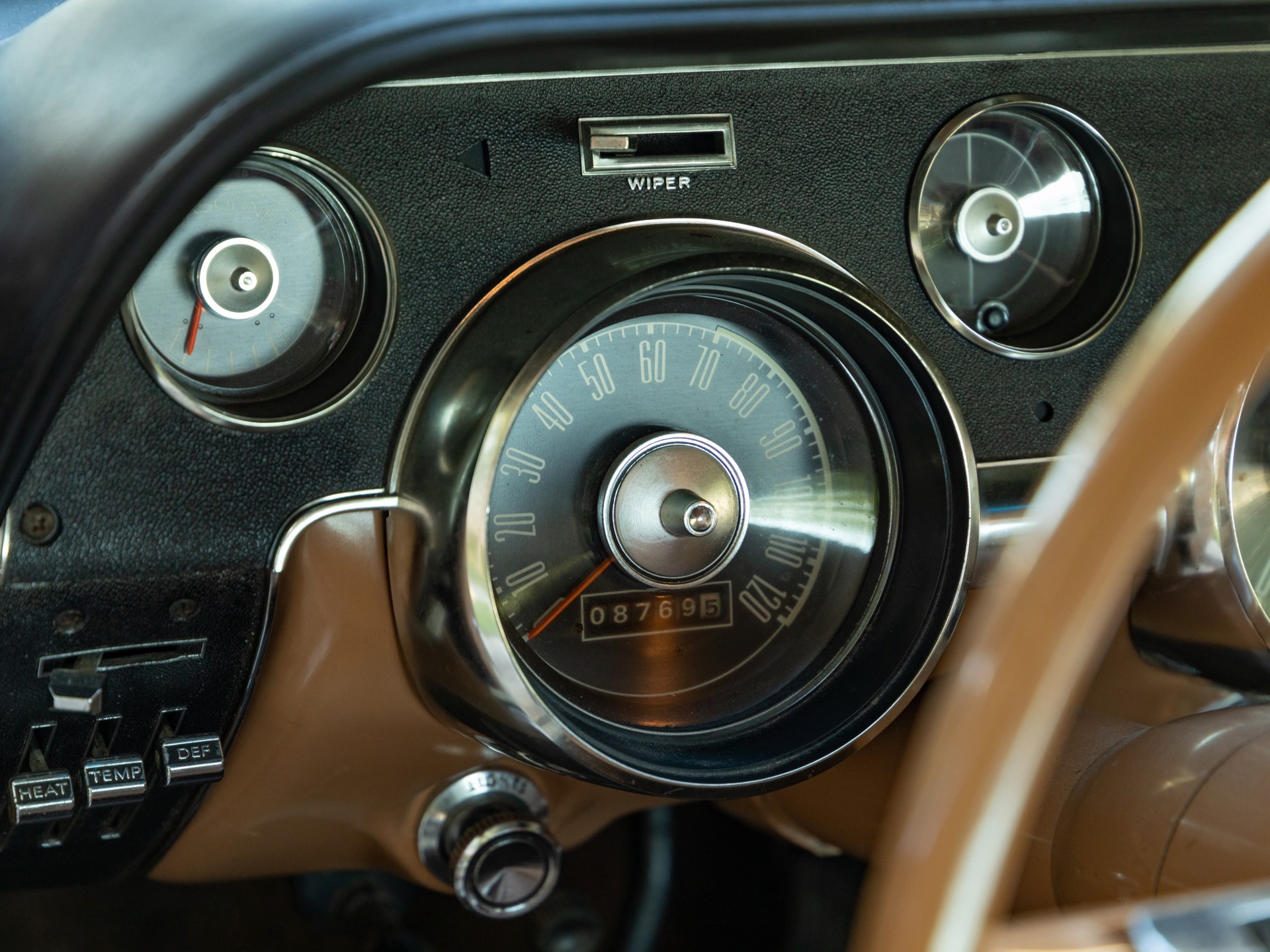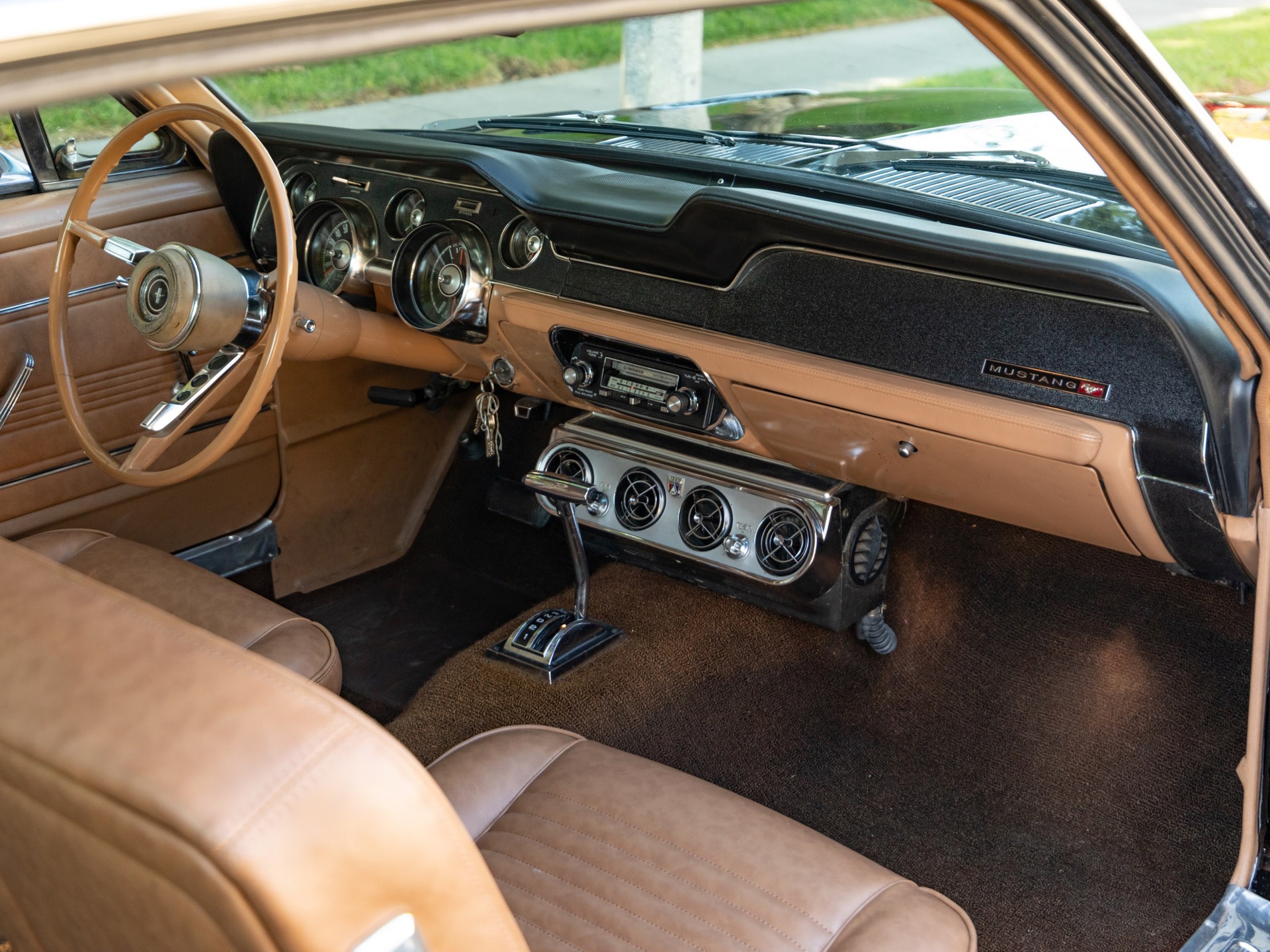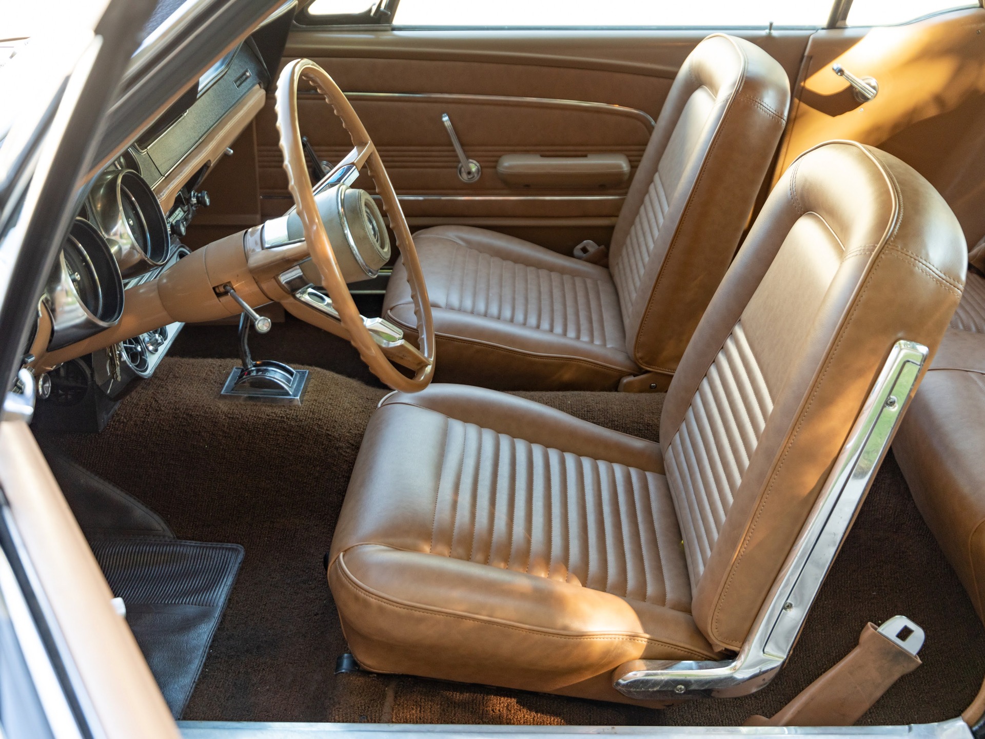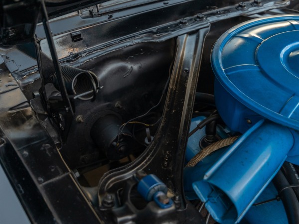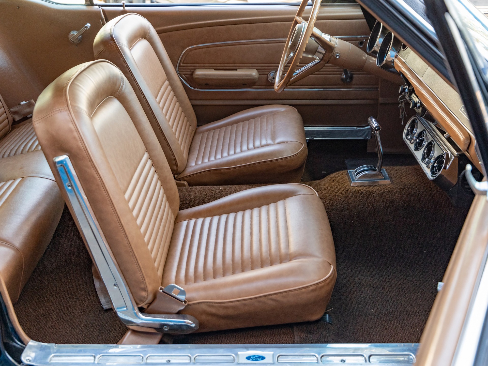 The car has been repainted in a striking 'Black' paint and has a refinished Black vinyl roof and a newly repholstered 'Saddle' buckets seats interior and had been serviced in recent years at the renown 'Mustangs Etc' of Van Nuys, CA with mechanical work completed including; rebuilt engine with new timing chain, all new front and rear brakes and wheel cylinders, bearings, hoses and rear axle lines, new heater core, carburetor kit, battery, .