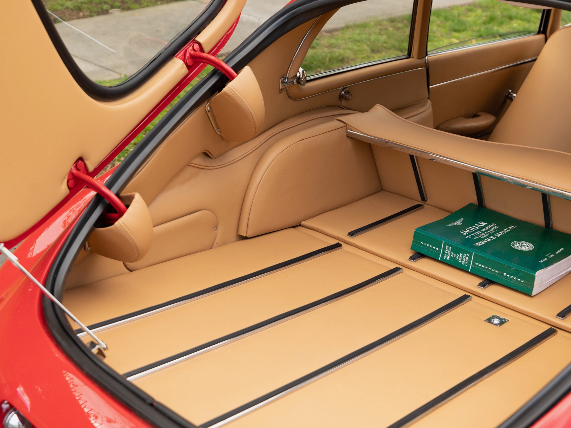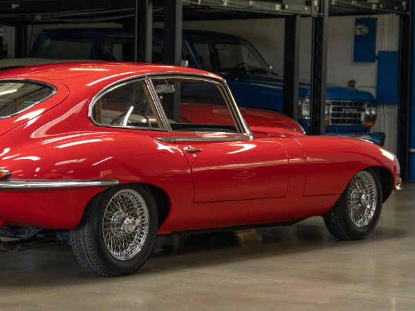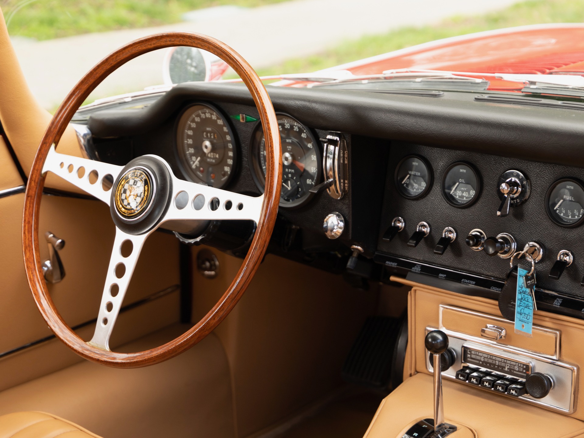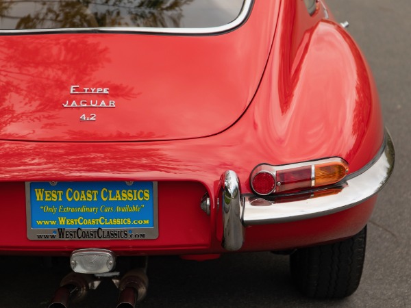 This is an extraordinarily rare and completely rust free and professionally restored to a standard equal to when it was originally manufactured and built on 2/17/1966 and dispatched on 3/8/1966 for California over 56 years ago, matching #'s 4.2 engine 1967 Jaguar E-Type XKE Series 1 2+2 Coupe! This is a truly marvelous example of this coveted first series of E-Type Jaguars, with the legendary glass covered headlights, small 'mouth' opening at the front, 4.2L liter engine with the triple SU carburetors, aircraft style toggle switches and rear tail and signal lamps positioned handsomely above the chrome rear bumper!So here it is, a professionally restored with no expense spared and meticulous attention to detail 1967 Jaguar XKE E-Type Series 1 2+2 Coupe with the optional automatic transmission coupe with it's original matching #'s 6 cylinder 4.2L/265HP engine, heads and transmission and with four original Jaguar chrome knock off spoked wire wheels, a wooden steering wheel, original jack, mallet and spare chrome wire wheel! The car had a full professional repaint in 'Carmen Red' and a full 'Suffolk & Turley' factory specification correct restored interior trim in 'Biscuit' with correct grain hides and the restoration was made to be as original as correct and possible with correct screws, set screws, brass vs steel, copper vs cadmium etc parts. The car boasts 'Willwood' bolt on front disc brakes for safety and an aluminum radiator with large fan.The car had an already originally very straight rust and accident free body which received a full no expense spared restoration in 2013-14 with only very few trouble free miles since being restored. Restoration work included body and paint down to bare metal in its original 'Carmen Red' color, the original matching #'s engine was rebuilt to factory specs with a complete head rebuild, new pistons, crank and lower end, the engine was line honed and the rotating assembly balanced. The rear end assembly was also completely rebuilt and the car has new and factory correct newly upholstered seats with new correct factory wool carpeting, it has a rebuilt brake system with 'Willwood High Performance' front disc brakes, all the chrome was replated, new hoses, new rubber seals, new U joints, new suspension and steering bushings, rebuilt differential, flush transmission and differential.The car has an aluminum radiator with a thermostatic electric fan, electronic ignition, an upgraded oil pump and oil filter assembly, fuel pump, alternator and a stainless steel exhaust header.All the options are working as they should including the choke warning lamp, turn signals, brake lamps, warning indicator lamps and horn. The heater and defroster operate trouble free and the engine runs reliably at +60 PSI oil pressure and 70 degrees C whilst driving. The floor boards and all the typical rust-prone areas are completely solid and rust-free! The car has no signs of any accidents of any kind and has a razor straight body. It's 'Carmen Red' color paint is virtually show quality having been stored in the garage since its restoration in 2014 and the car's interior is as new.THERE WERE ONLY 3,616 SERIES 1 2+2 FHC BUILT & THE LOW PRODUCTION NUMBERS ON THESE CARS MEAN THAT THEY ARE ACTUALLY QUITE SIMPLY AMONGST THE RAREST OF ALL PRODUCTION E -TYPES! THE TOTAL PRODUCTION NUMBERS FOR THE FHC ARE AS FOLLOWS:SERIES 1 (3.8): 7,670;SERIES 1 (4.2): 5,830 (WITH ONLY 3,616 BEING 2+2);SERIES 1.5: 1,942;SERIES 11: 4,855& SERIES 111: 0!Please also note that the FHC's (Fixed Head Coupe) are way rarer than the 33,996 OTS (Open Two Seaters) built.This is therefore an extremely rare opportunity for the Jaguar or British classic sports car enthusiast who is looking to buy a completely and with no expense spared professionally and correctly restored and turn-key ready example of a stunning 1967 Jaguar XKE Series 1 4.2L 2 +2 coupe with chrome wire wheels and its original matching #'s 4.2L 6 cylinder engine!SO BID WITH CONFIDENCE KNOWING THAT THIS IS THE LOWEST PRODUCTION SERIES OF ANY SERIES 1 E-TYPE BUILT BY JAGUAR & THAT VERY FEW REMAIN ANYWHERE! THE TOTAL PRODUCTION NUMBERS FOR THE E-TYPE XKE OF ALL THE SERIES BUILT ARE AS FOLLOWS:SERIES 1 (3.8): 7,670 FHC, 7,828 OTS = 15,498 TOTAL;SERIES 1 (4.2): 5,830 FHC, 6,749 OTS, 3,616 2+2 = 16,195 TOTAL;SERIES 1.5: 1,942 FHC, 2,801 OTS, 1,983 2+2 = 6,726 TOTAL;SERIES 11: 4,855 FHC, 8,628 OTS, 5,326 2+2 = 18,809 TOTAL;& SERIES 111: 0 FHC, 7,990 OTS & 7,297 2+2 = 15,287 TOTAL!The car drives as nice as they come with no known mechanical issues whatsoever. This particular car must be seen and driven to be fully appreciated - a seriously striking example which turns heads wherever she goes showing pride of ownership throughout the years! The engine is extremely strong and responsive with excellent oil pressure and no noticeable oil leaks and which sounds absolutely magnificent, the transmission shifts smoothly through the gears and the engine temperature always remains cool.This is an extremely rare opportunity to own a great daily driving and fully professionally restored and rust free example of a 1967 Jaguar XKE Series I 4.2L 2+2 Coupe with its original matching #'s engine in exceptionally fine condition throughout being offered as a great collectible classic car for any British classic car enthusiast or European classic car lover!