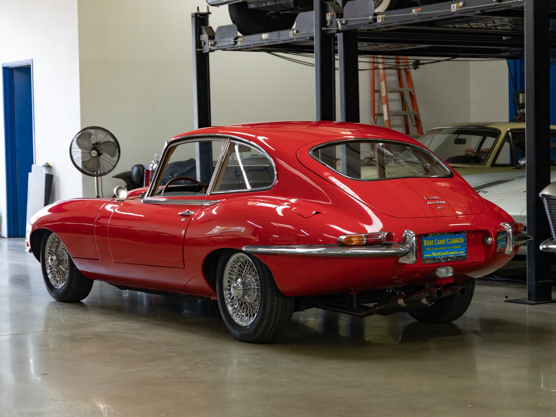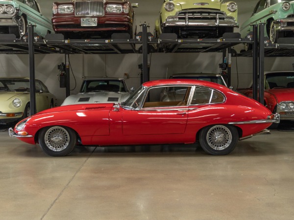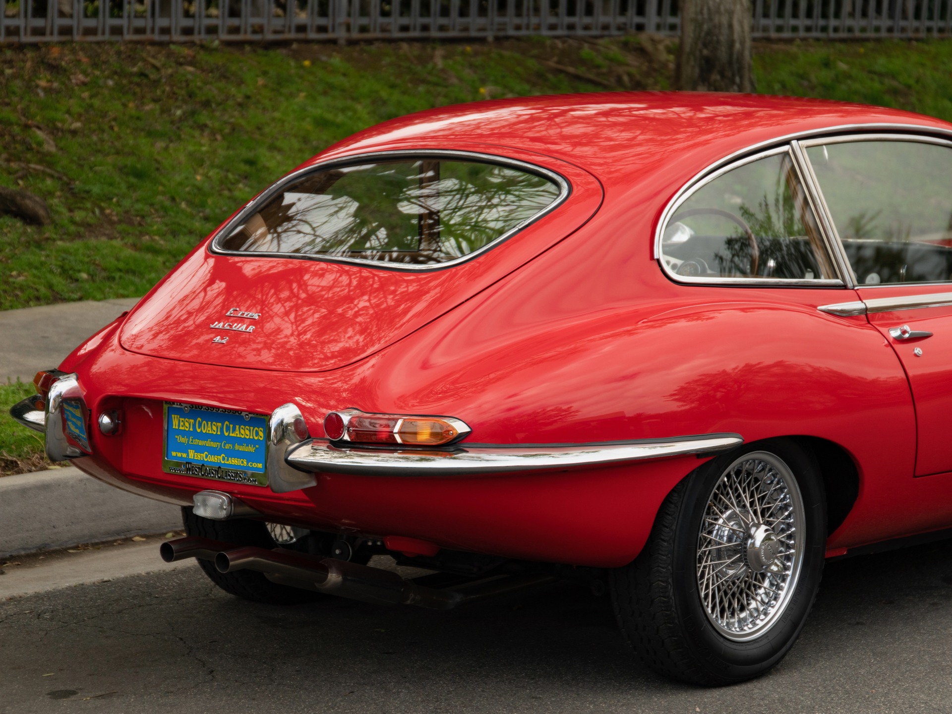 West Coast Classics are proud to present an absolutely exceptional example of this 1967 Jaguar XKE E-Type Series I 2+2 Coupe with it's original matching # 6 cylinder 4.2L/246HP engine matched to an automatic transmission and finished in it's striking 'Carmen Red' color paint with a beautiful 'Biscuit' leather interior and with five chrome 'knock-off' wire wheels, jack, knock-off mallet, handbooks & wooden steering wheel! The car will be sold with all its original owners manuals, manufacturers warranty, periodic maintenance vouchers, Sales & Service, & original Jaguar XKE 2+2 brochure featuring the exact car!
