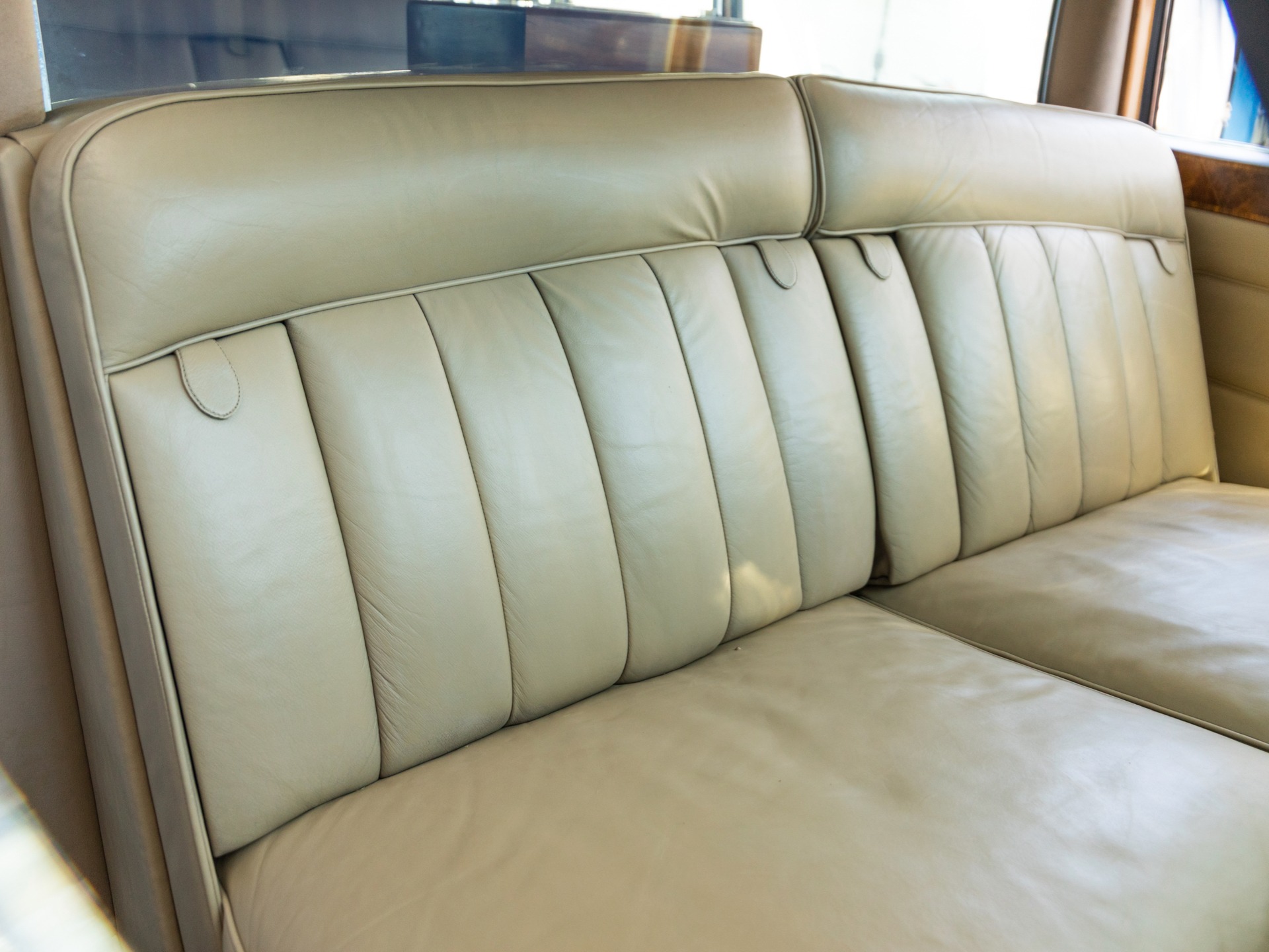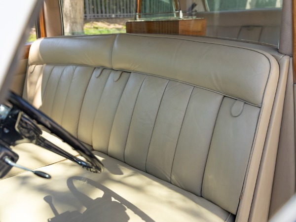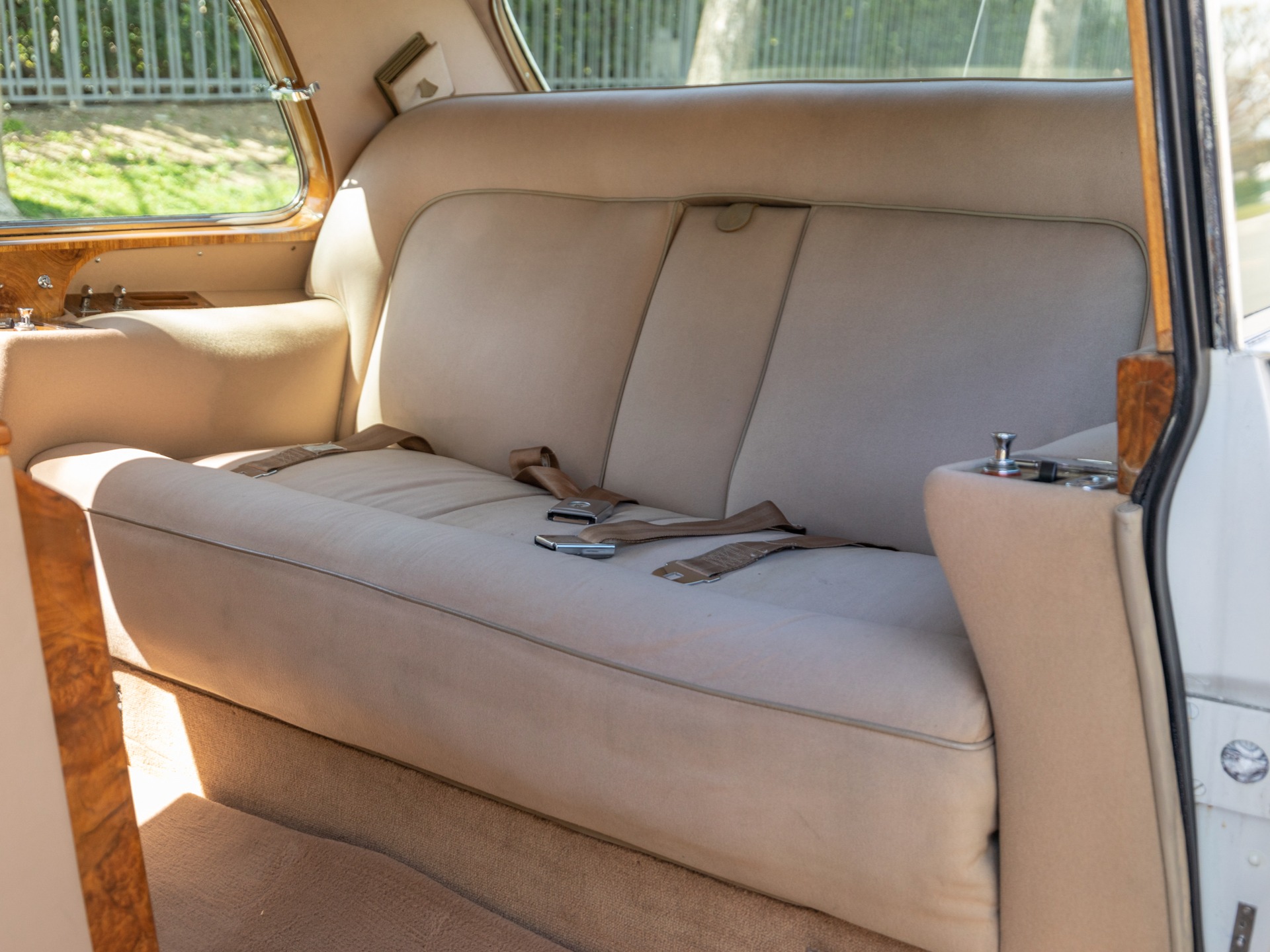 At the front, in the drivers compartment, an elaborate burl wood dashboard draws the eyes and hands with an enticing array of RR-branded Smiths gauges and polished metal switchgear. Note also the twin arm rests on each side, as well as a small control panel for factory air conditioning - still a fairly rare and extremely pricey option at the time this car was constructed.