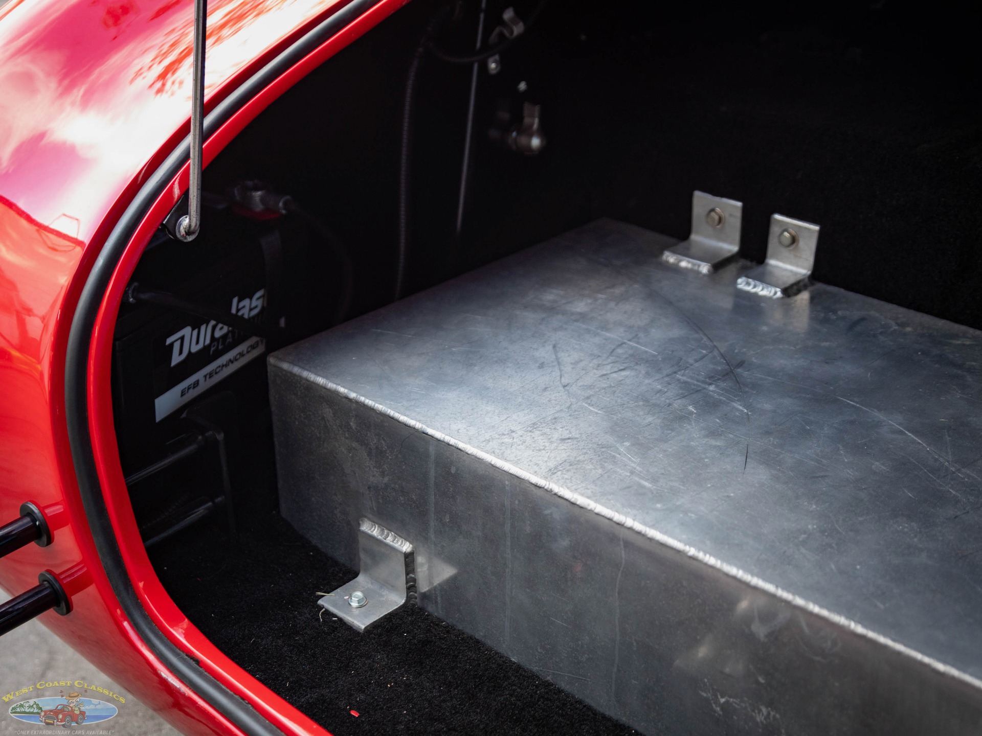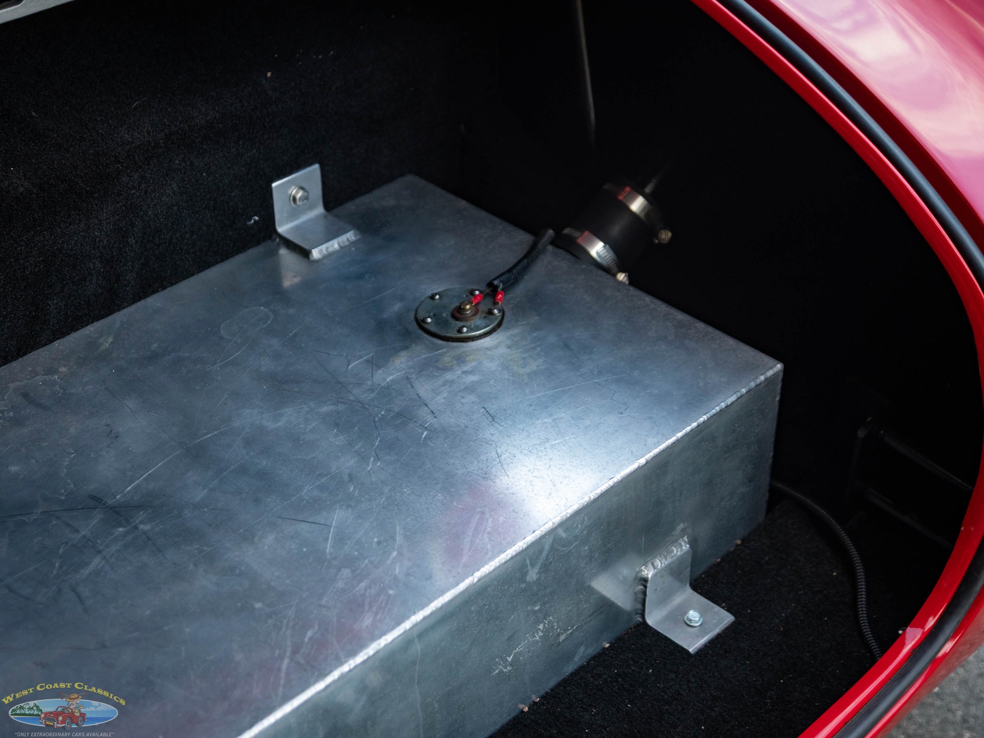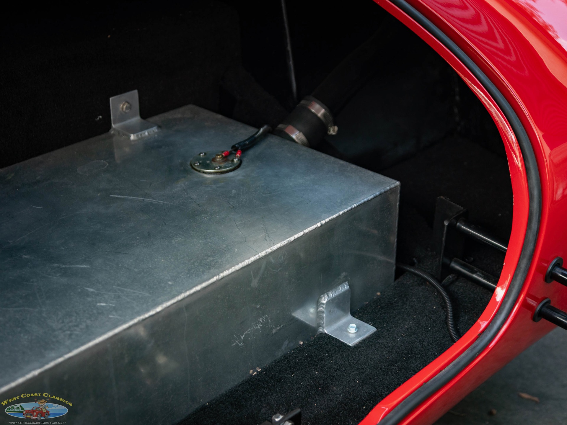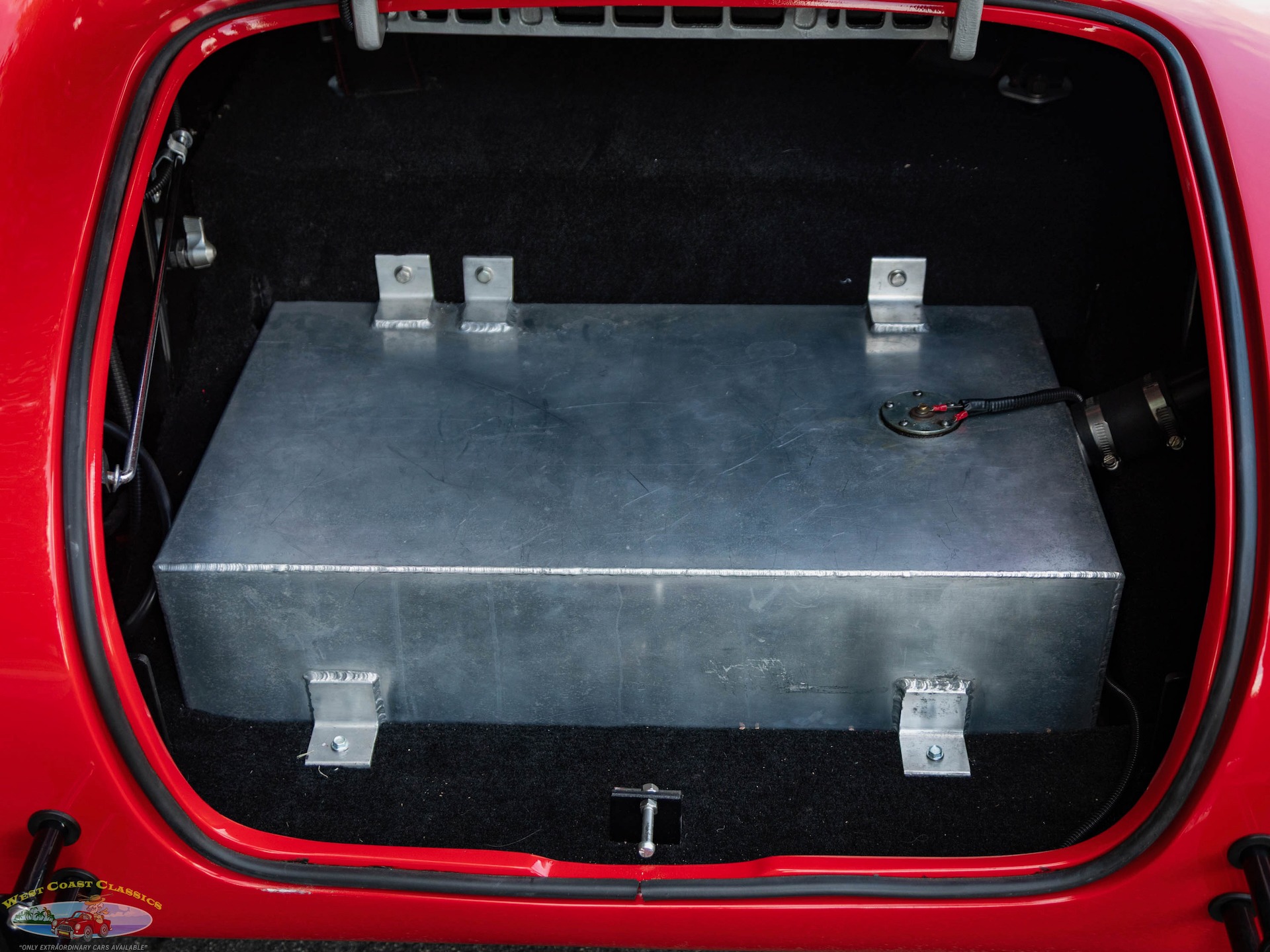 The fiberglass body is finished in Red and equipped with tinted sun visors, a hood scoop, wind wings, black-finished quick jack bumperettes, a LeMans-style fuel filler cap,a roll hoop, black quick jack bumperettes, and side-exit exhaust pipes, and the cabin is outfitted with low-back bucket seats, and a wood-rimmed steering wheel. Acquired by the selling dealer in 2025, this Unique Motorcars Cobra replica is now offered with a clean Arizona title describing the vehicle as a 1967 Shelby Cobra Roadster.