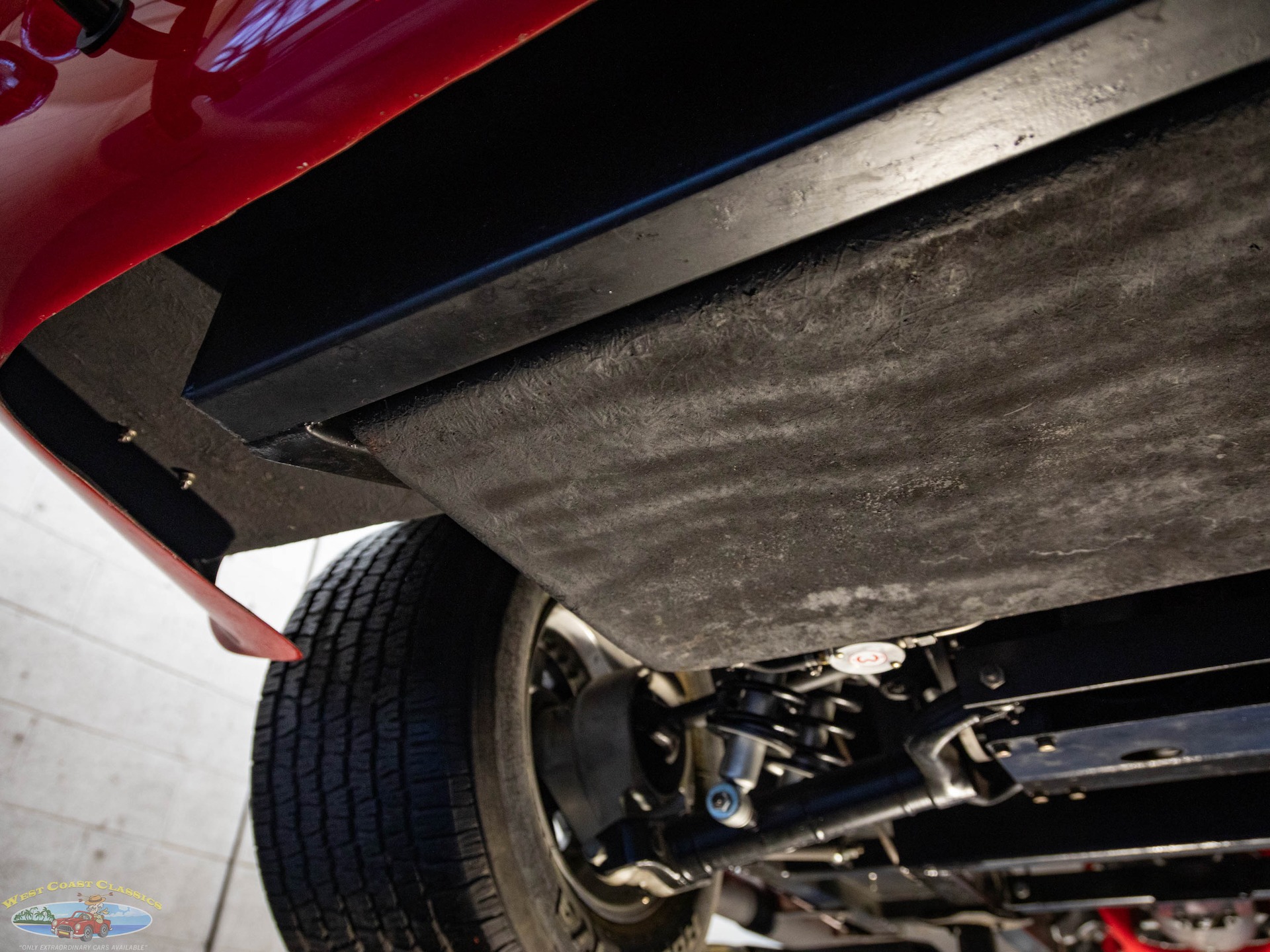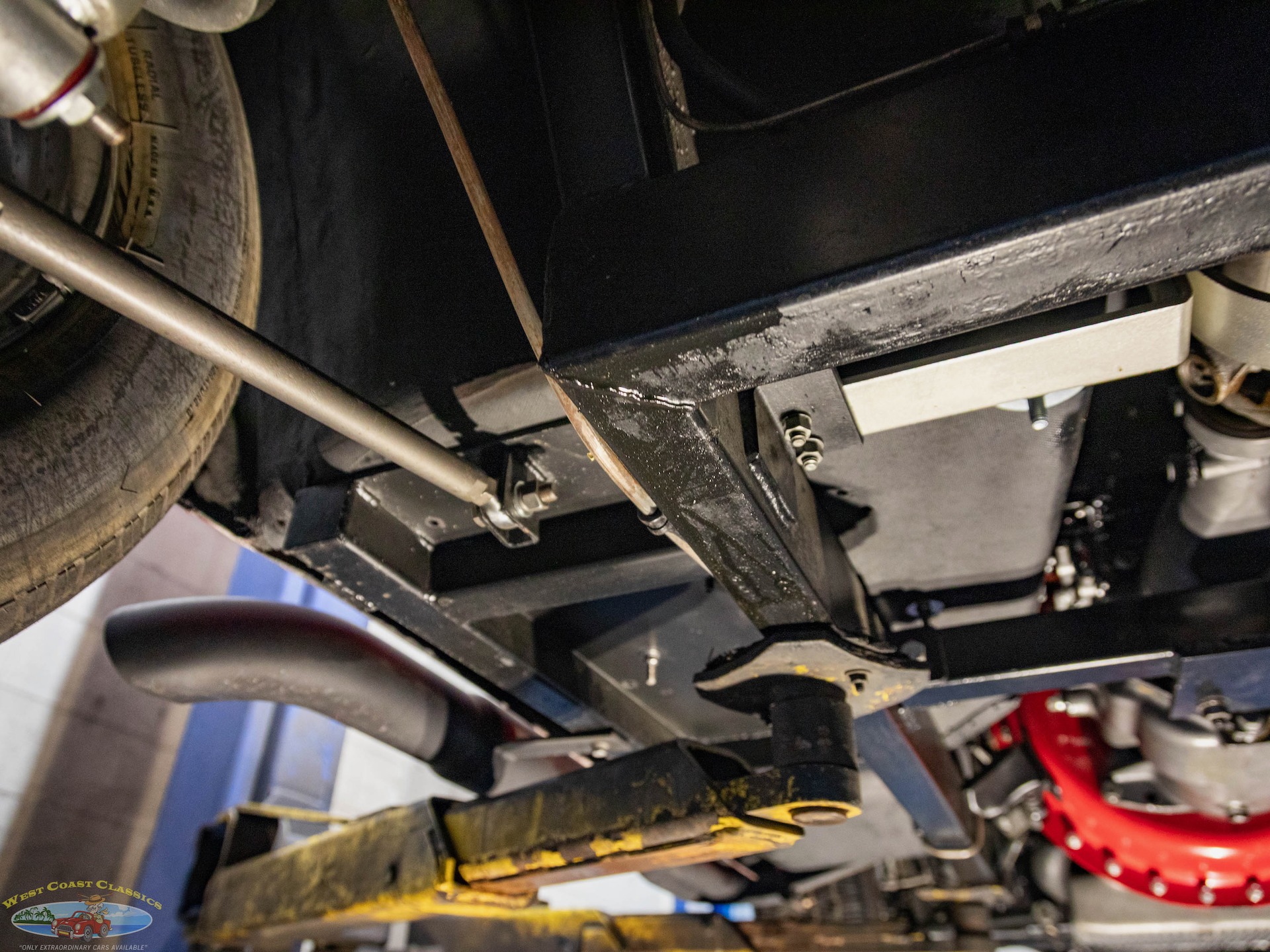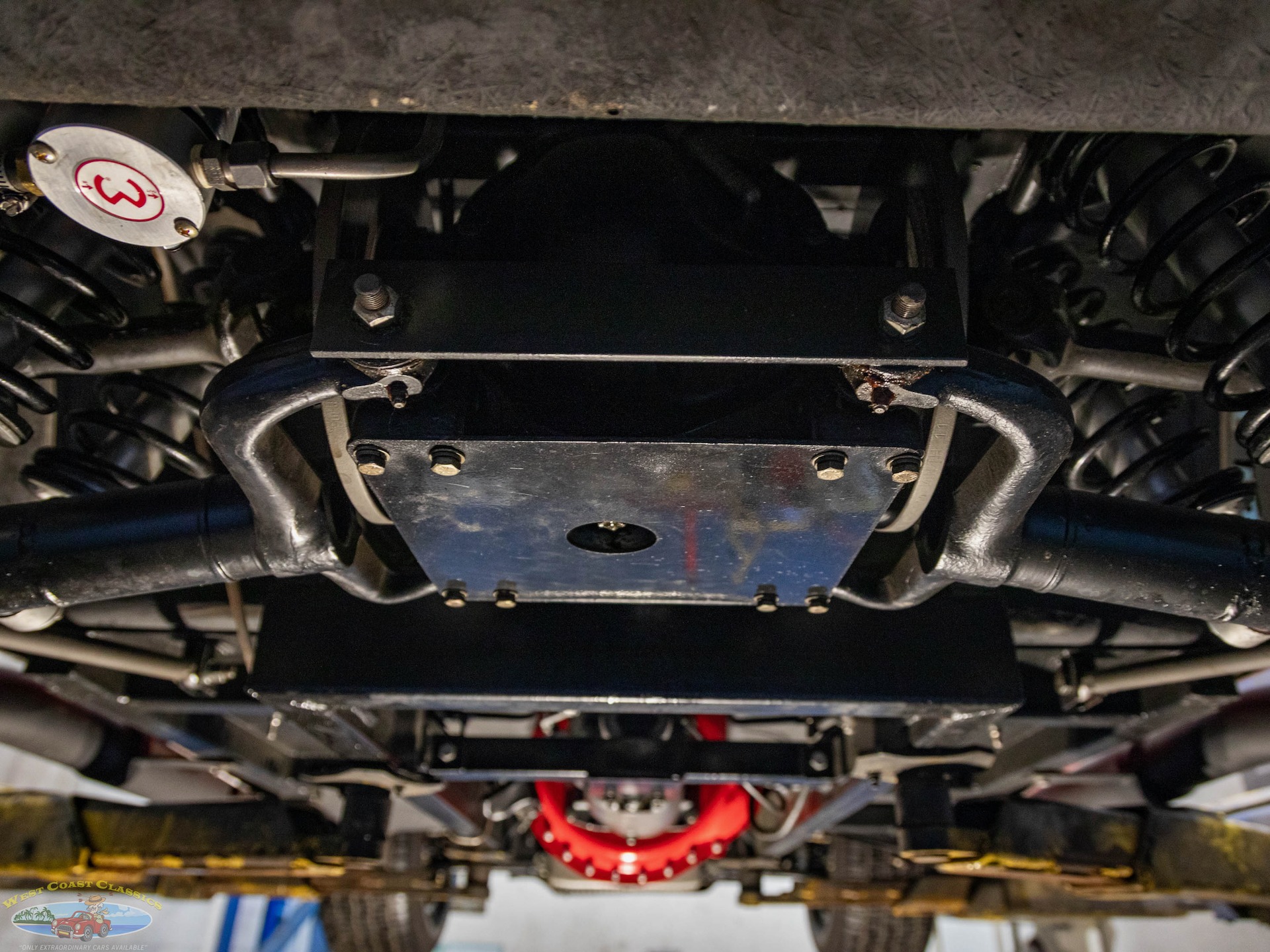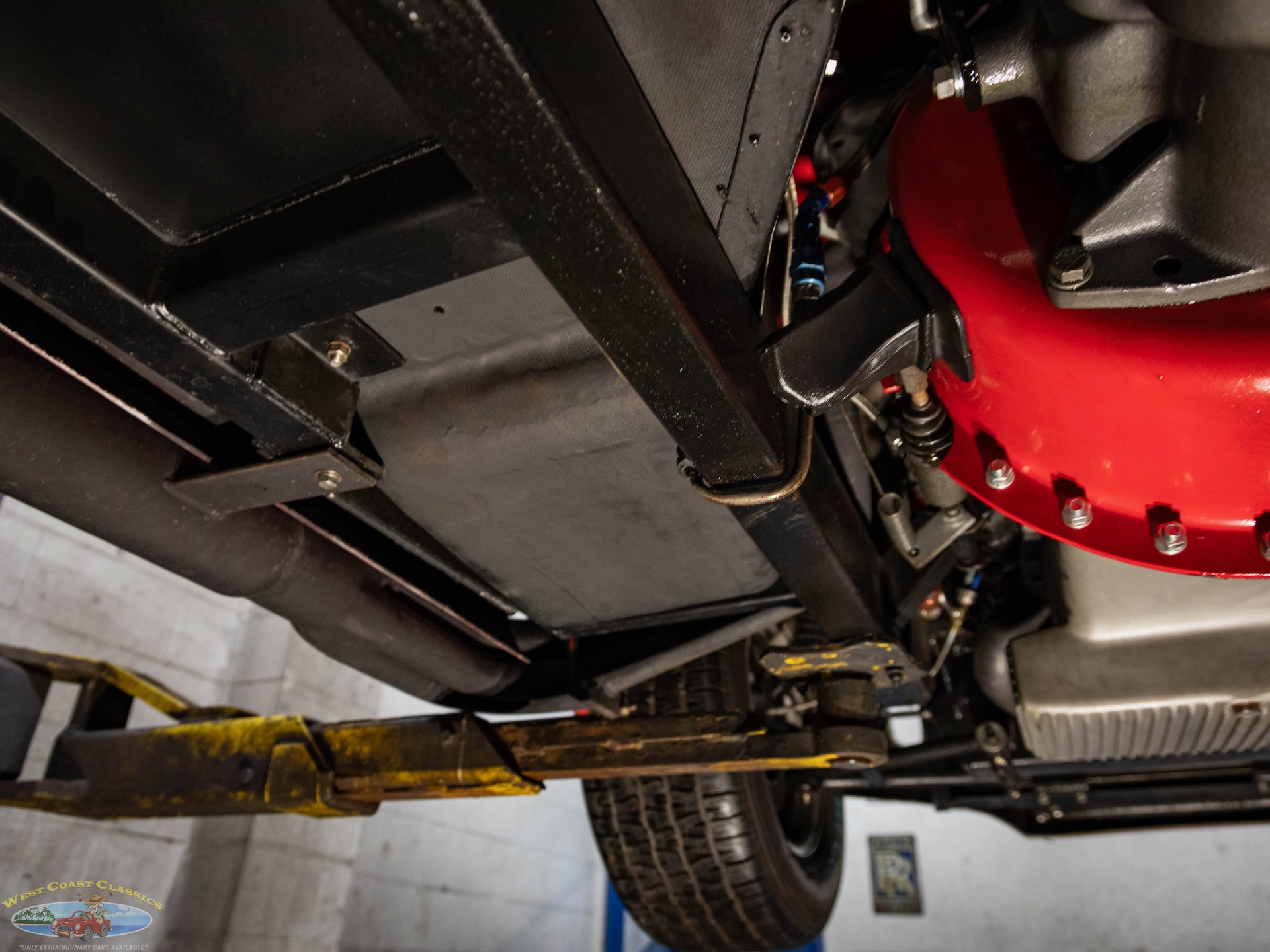 The Toploader four-speed manual transmission is equipped with a Lakewood bell housing, and the Jaguar-sourced rear end is equipped with a limited-slip differential and 3.54:1 gears.