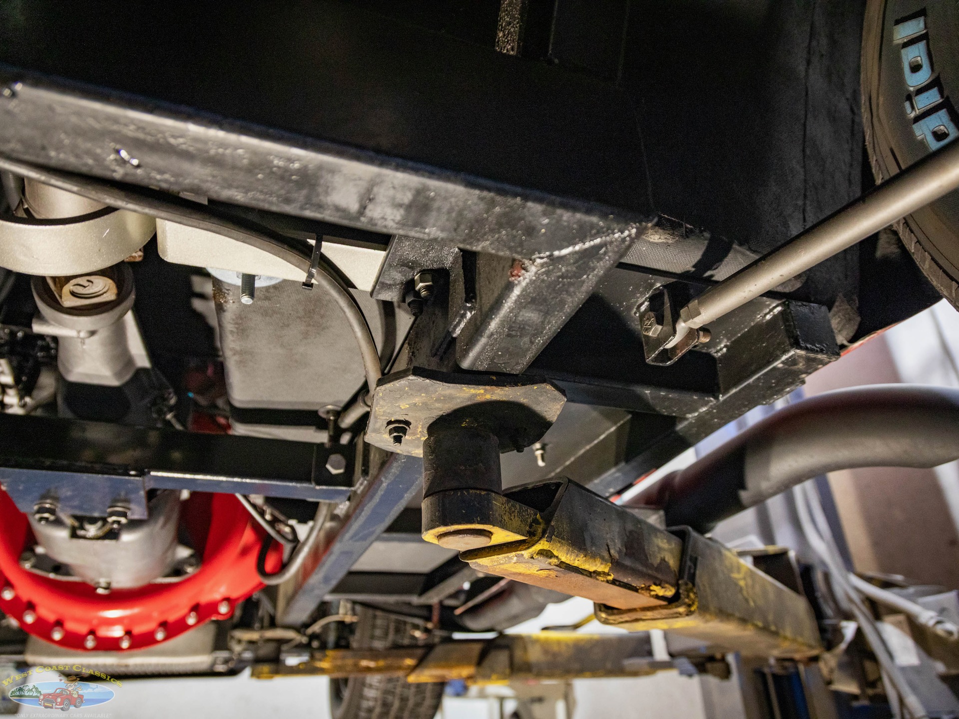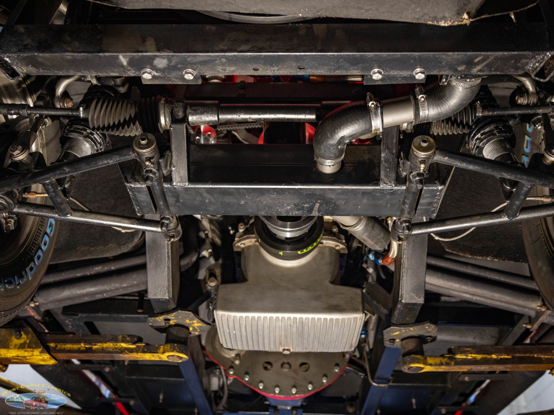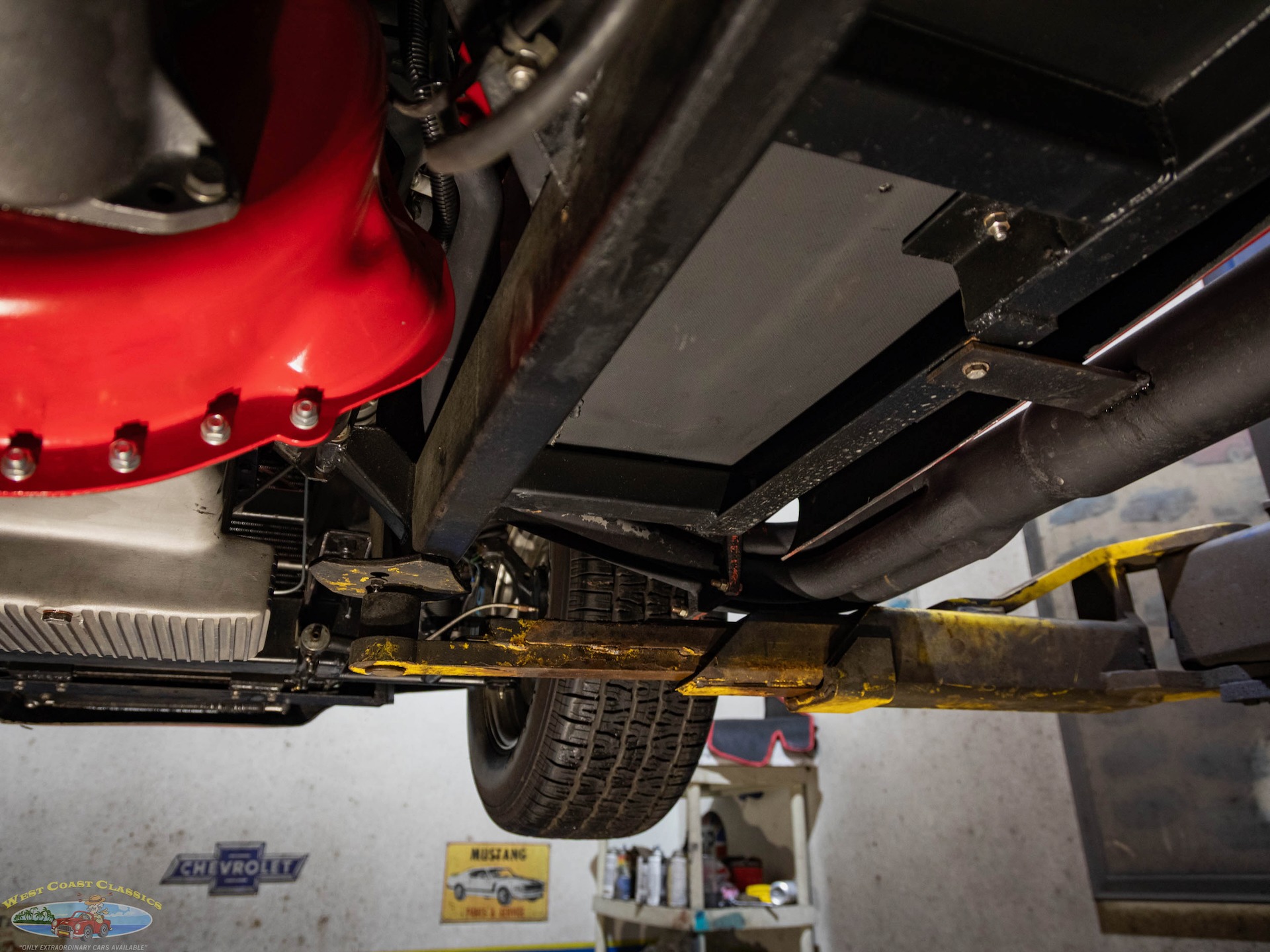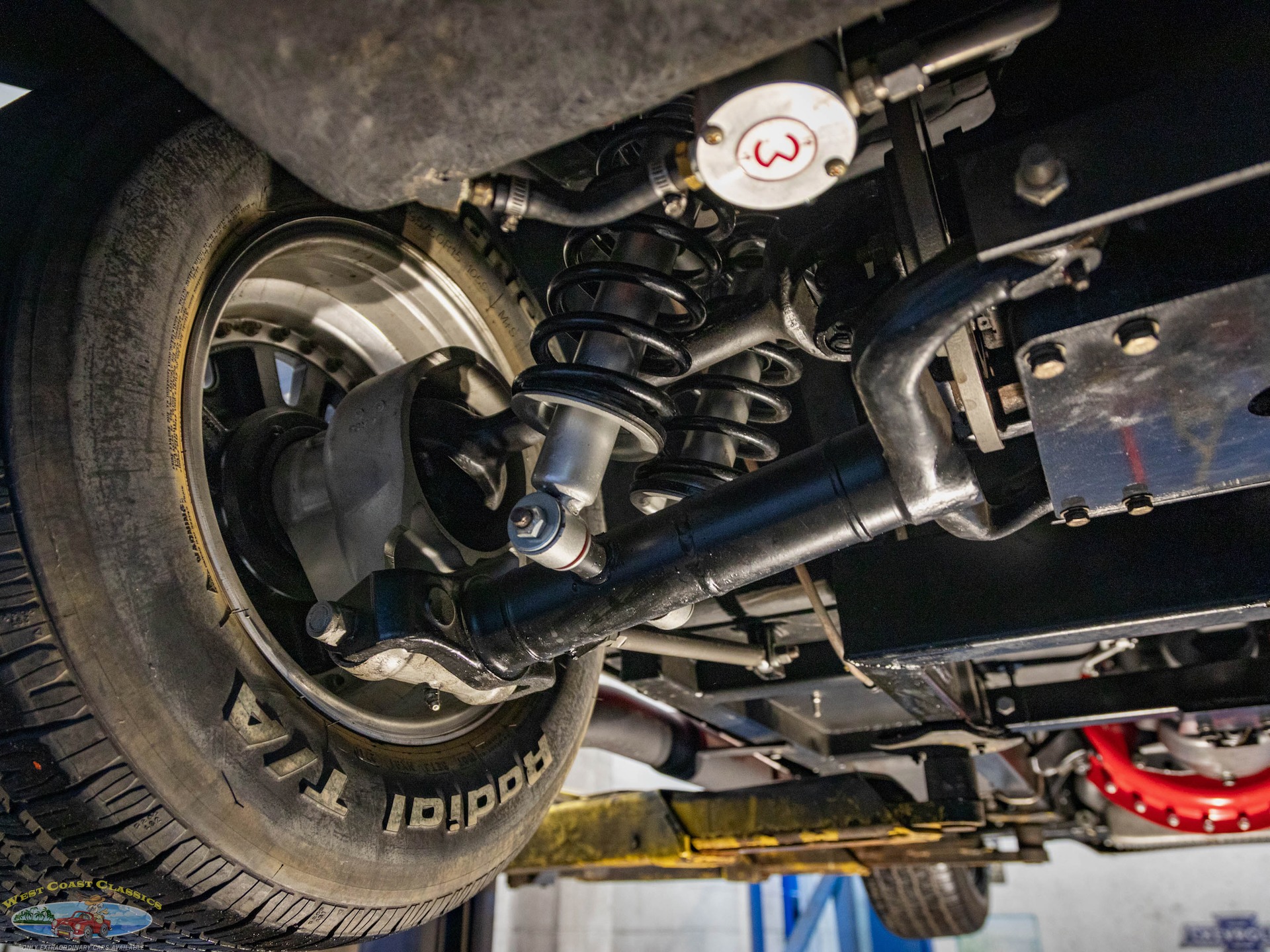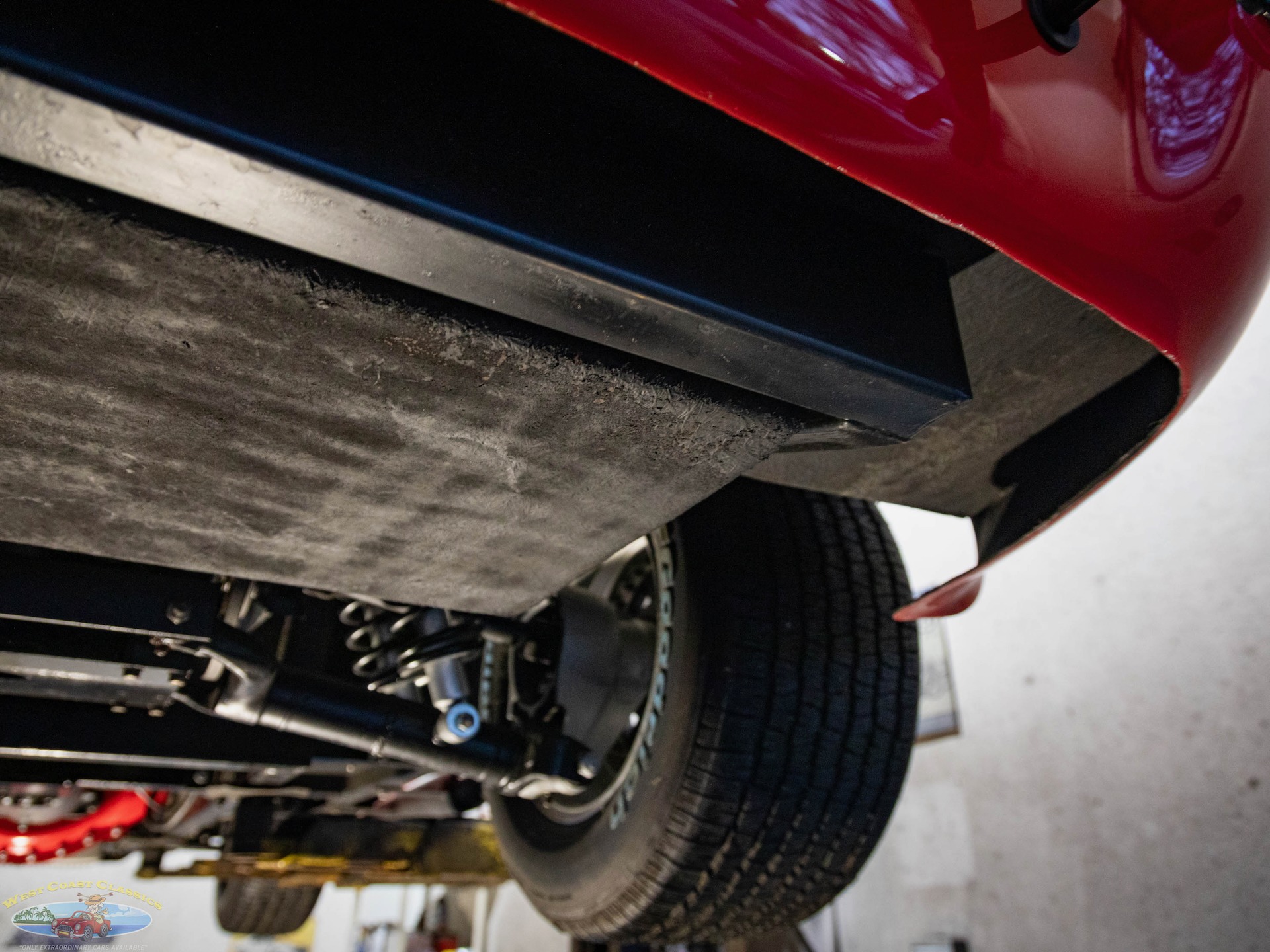 The Toploader four-speed manual transmission is equipped with a Lakewood bell housing, and the Jaguar-sourced rear end is equipped with a limited-slip differential and 3.54:1 gears.