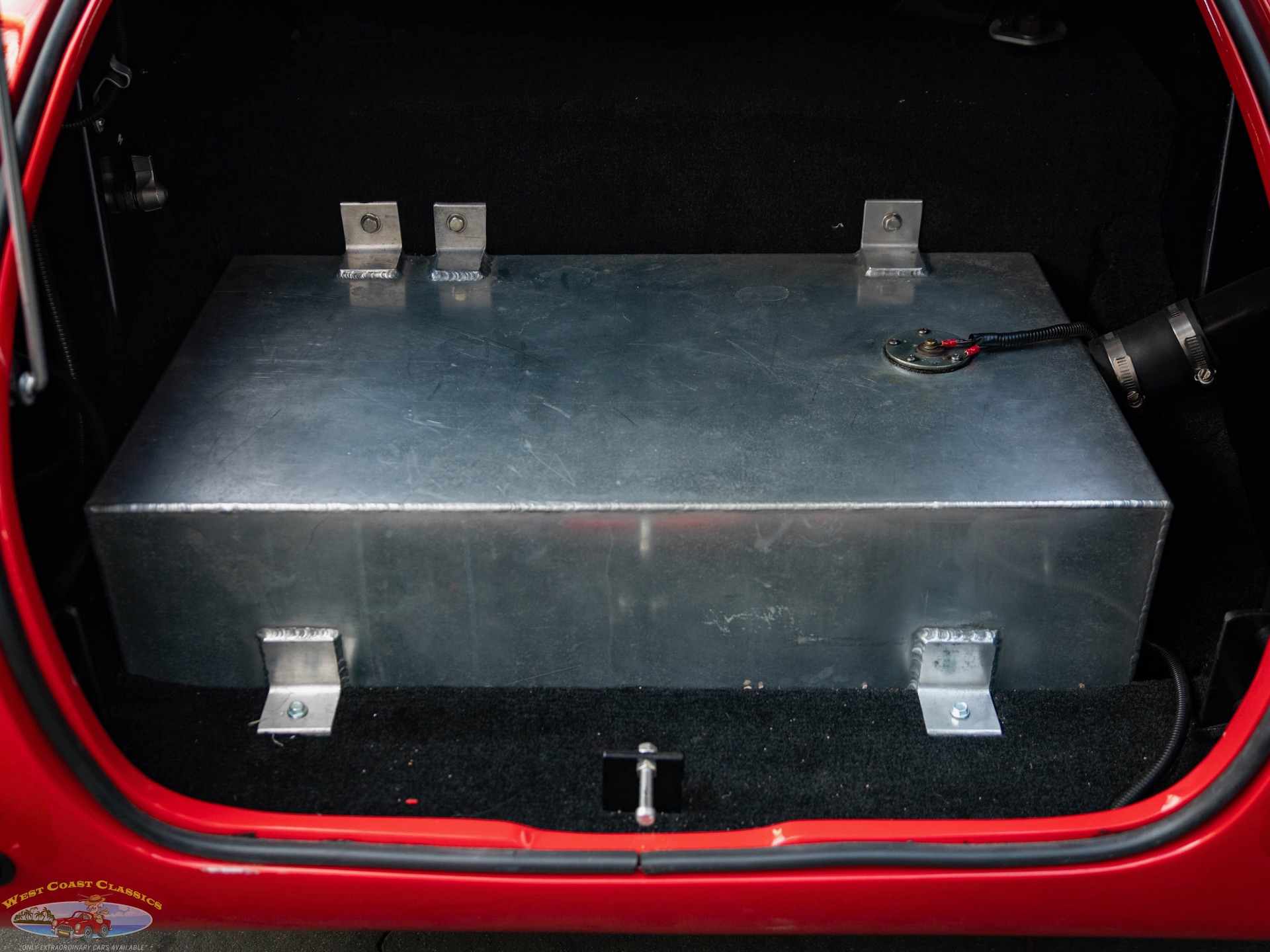 The car is powered by a 392ci V8 linked to a Toploader four-speed manual transmission and a Jaguar-sourced independent rear axle with a limited-slip differential, and the car rides on adjustable coilovers and 15 Compomotive wheels that are mounted over four-wheel disc brakes.