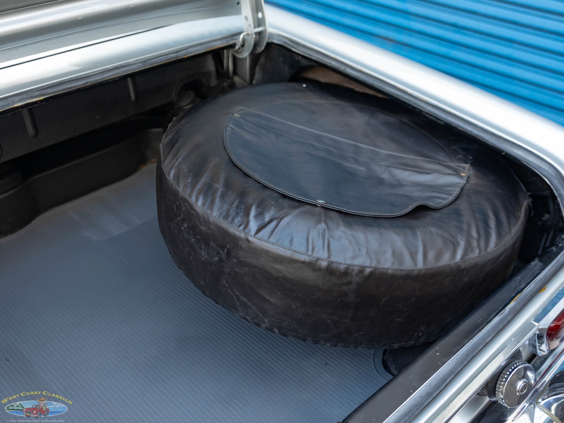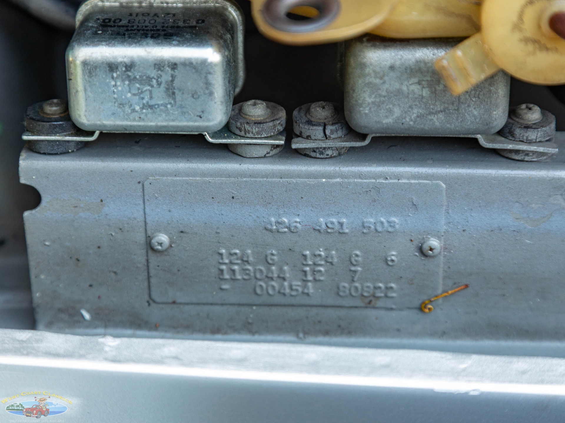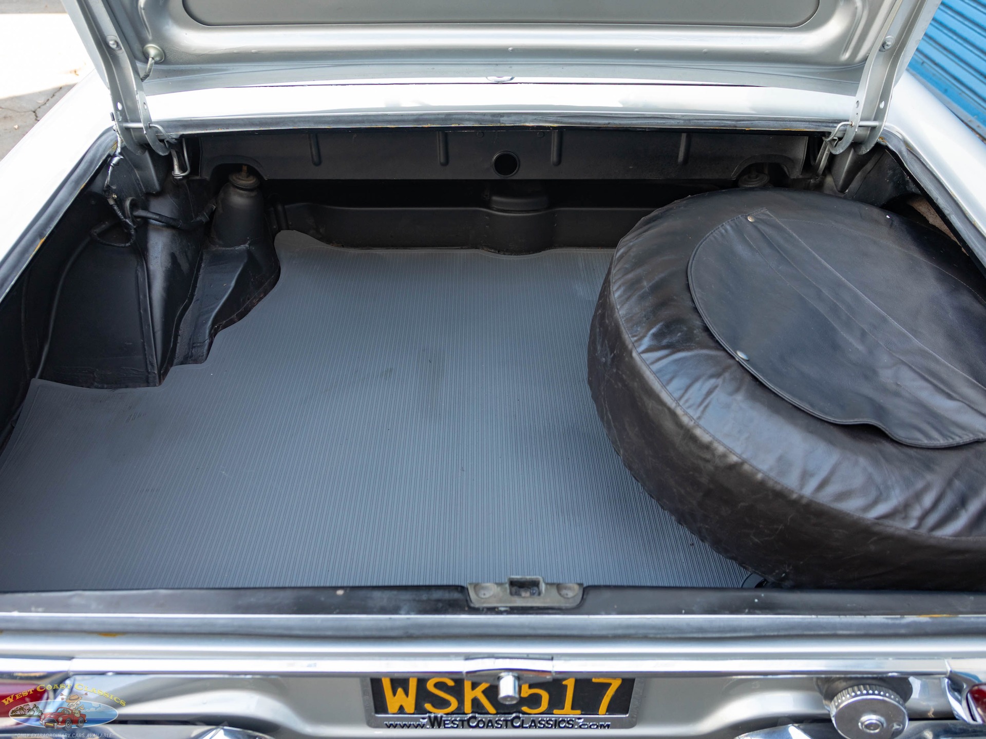 The car is well equipped with factory clock, power steering, power brakes and air conditioning. The engine cranks easily and drives beautifully. It runs cool, has great oil pressure and does not smoke or leak oil. The transmission shifts smoothly through all the gears and the brakes and suspension are superb. The exhaust system sounds great and the car handles beautifully. All the electrics, the lights and the gauges work properly. The trunk has its original spare wheel and a mat with correct wheel cover.