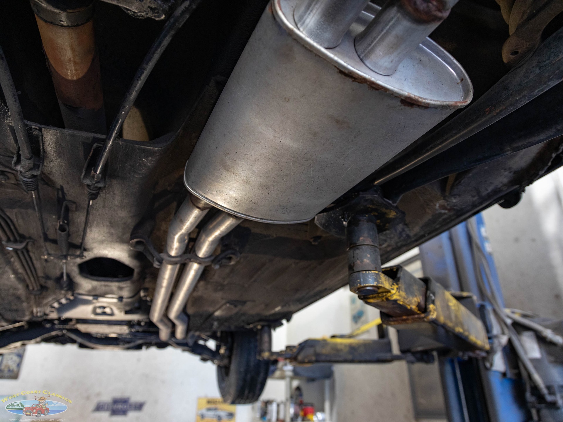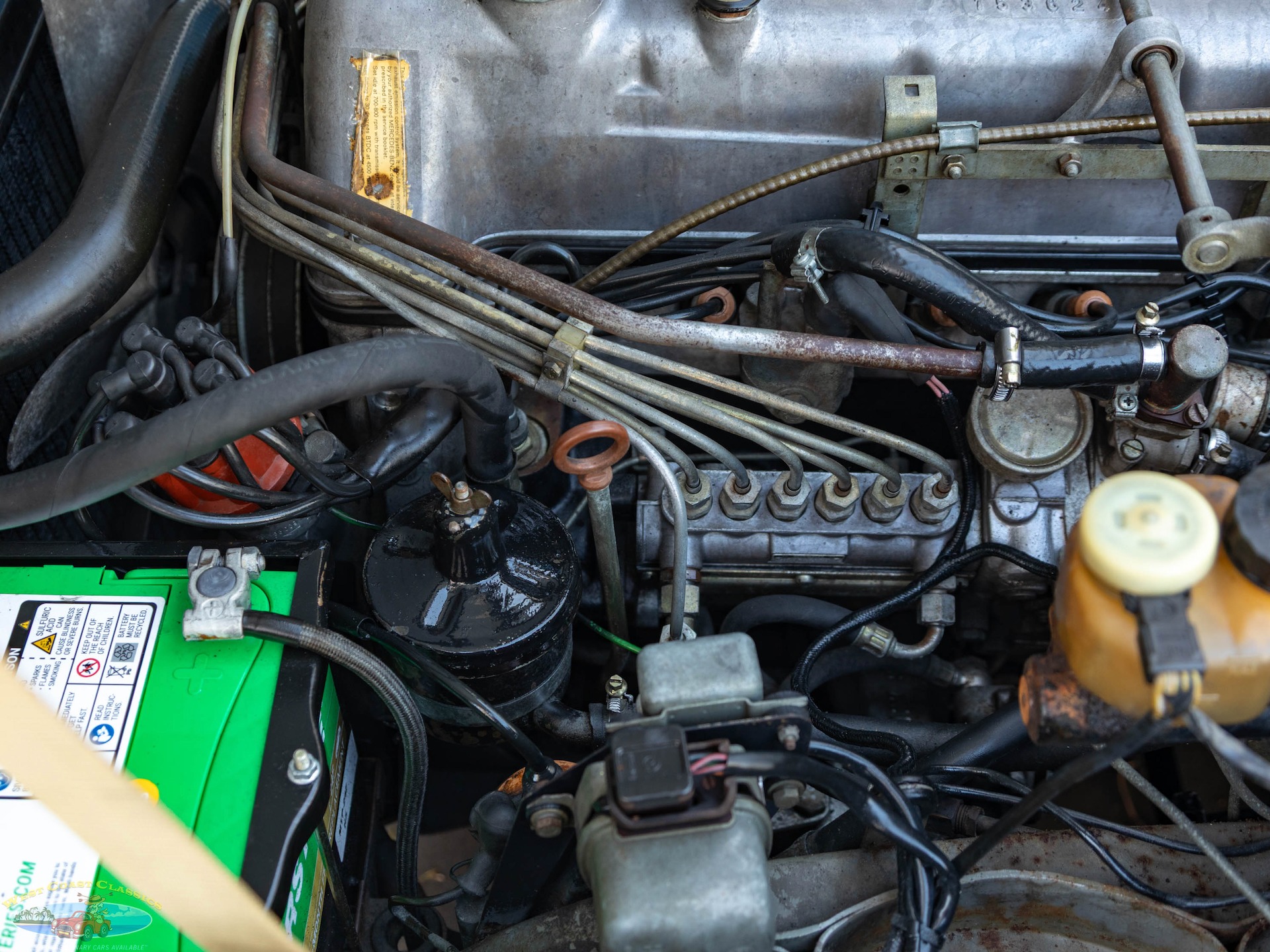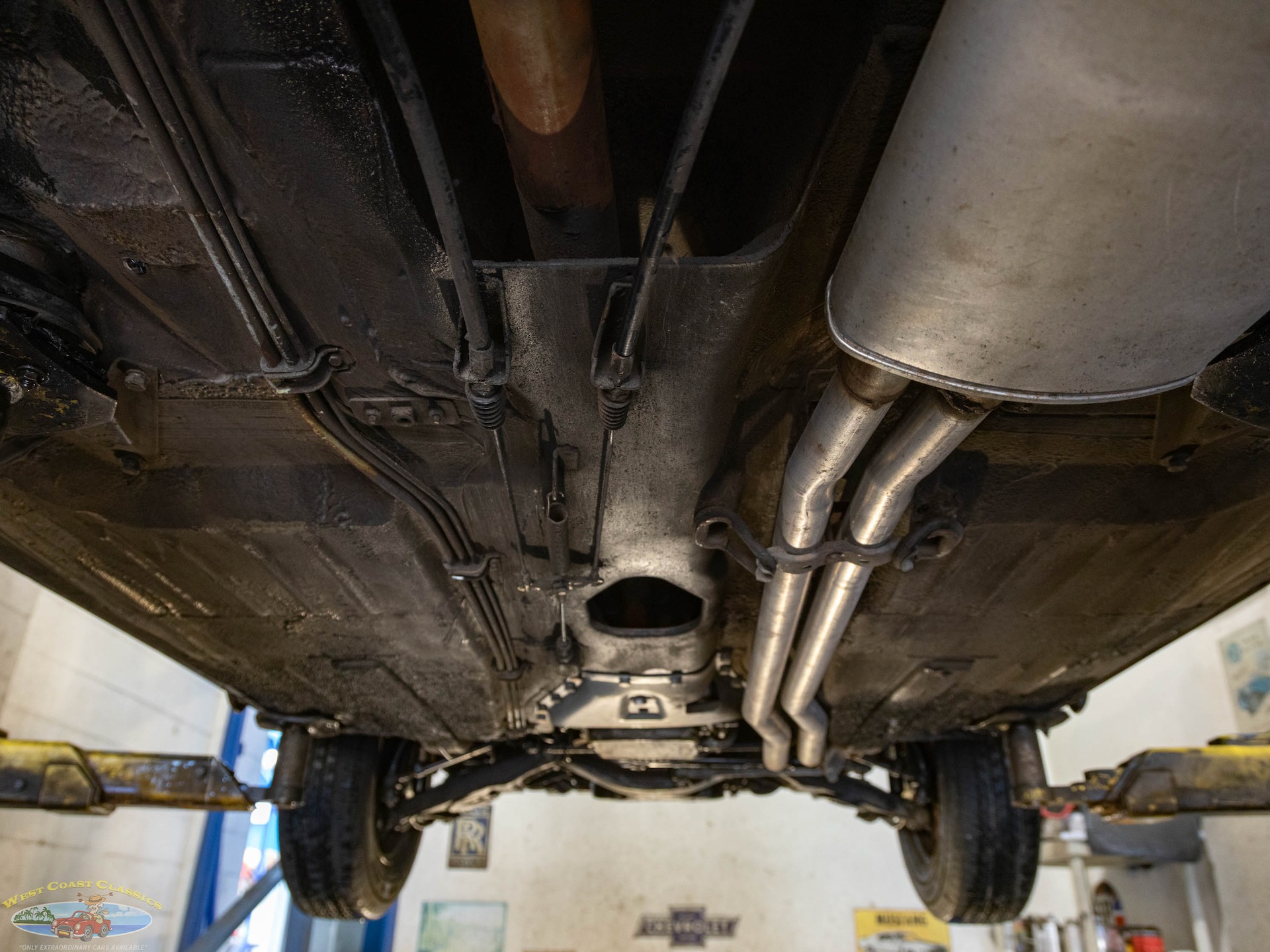 The car is well equipped with factory clock, power steering, power brakes and air conditioning. The engine cranks easily and drives beautifully. It runs cool, has great oil pressure and does not smoke or leak oil. The transmission shifts smoothly through all the gears and the brakes and suspension are superb. The exhaust system sounds great and the car handles beautifully. All the electrics, the lights and the gauges work properly. The trunk has its original spare wheel and a mat with correct wheel cover.