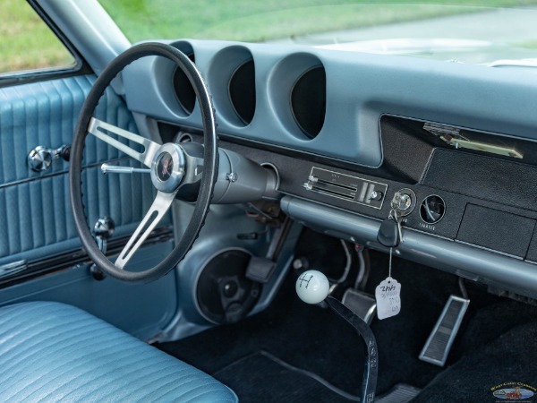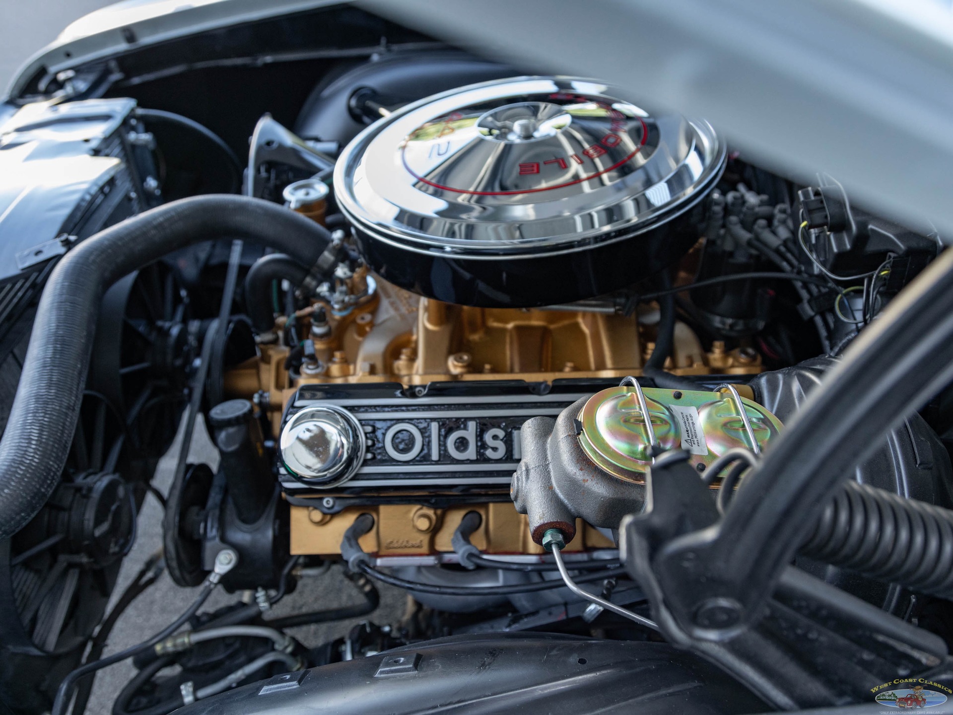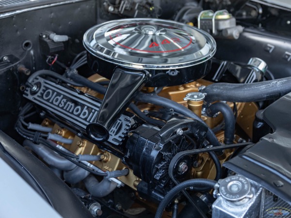 In 2005 it was selected by the Overhaulin' production staff for their show and went through a stunning transformation. In the hands of Chip Foose and his crew, the Oldsmobile was extensively, yet sympathetically restored, with a few choice modern upgrades and the typical Foose attention to detail with the original 400 block being retained but upgraded and stroked to 455 cubic inches, whilst still mated to the four-speed manual transmission, as originally equipped. It gained Edelbrock heads and intake, a competition cam, and more, and was detailed in the correct Oldsmobile Gold engine paint. The interior was restored to its original Blue vinyl but kept mostly stock. Disc brakes are fitted at all corners, and an upgraded suspension with high-performance sway bars keep the body under control.