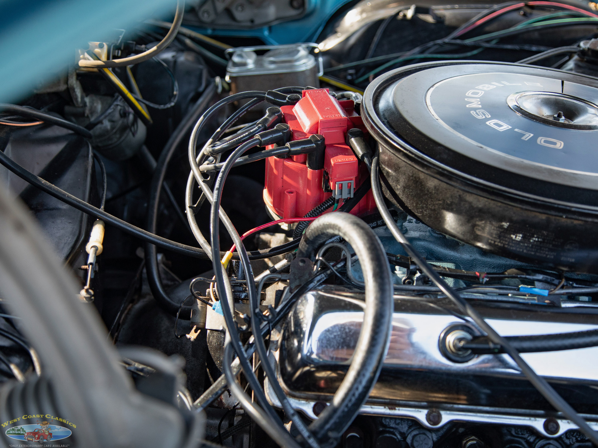 The original 455cid 375HP 4 barrel V8 engine with still correct factory colors is extremely strong and powerful and this particular car drives very well with the automatic transmission shifting smoothly throughout all the gears and the temperature always remaining cool!