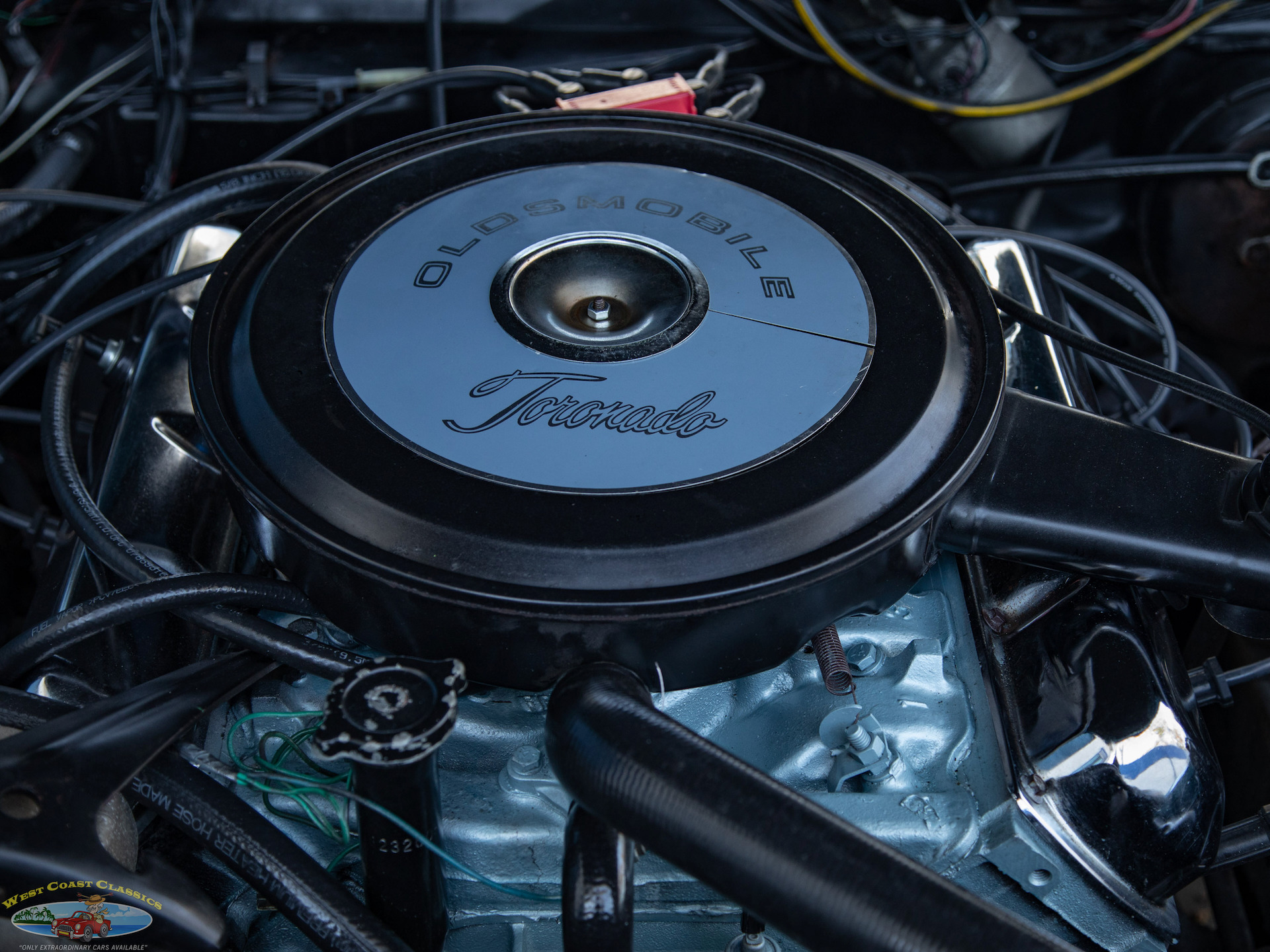 Oldsmobile created the news of the year in 1966 with the introduction of the Toronado, a bold idea combining intriguing exquisite styling with every detail executed by the legendary Bill Mitchell and with sports car performance and which was also the first front wheel drive car (since the mid 30's Cord of which the Toronado would be compared by some) of the modern automotive era. It proved to be one of the most desirable Oldsmobiles ever produced. The Toronado was a full-size luxury sport car with a look unlike any other car on the road at the time, jutting front fenders, hidden headlamps, muscularly flared wheel arches and a cropped tail trailing a smooth fastback roofline makes these first generation models unmistakable even today.